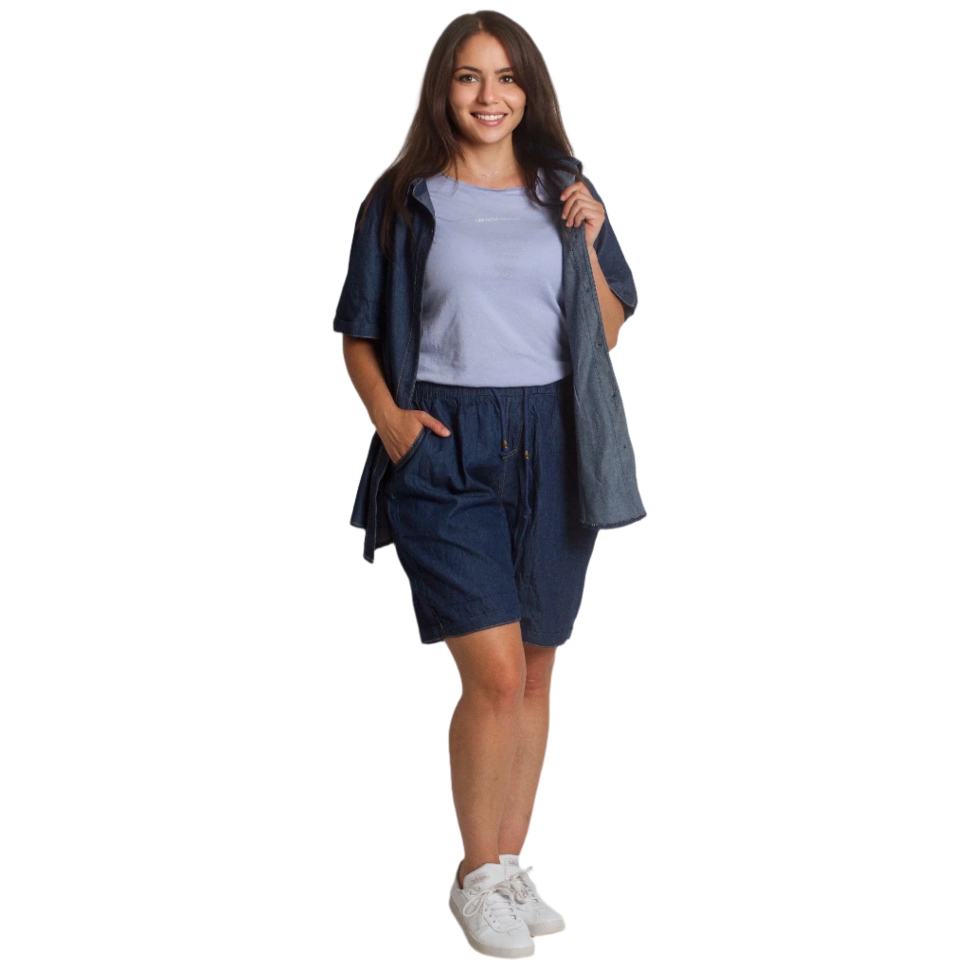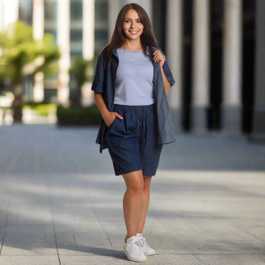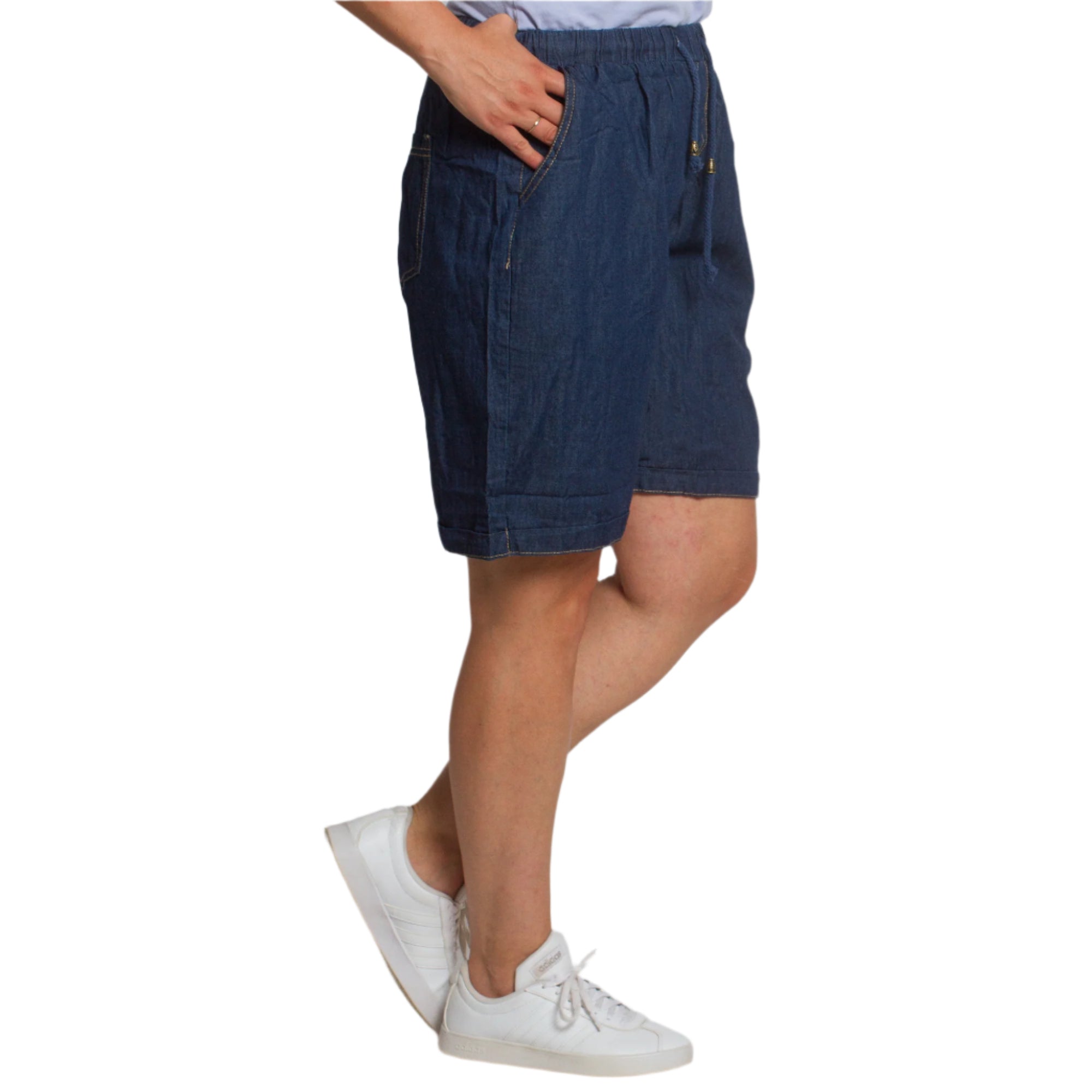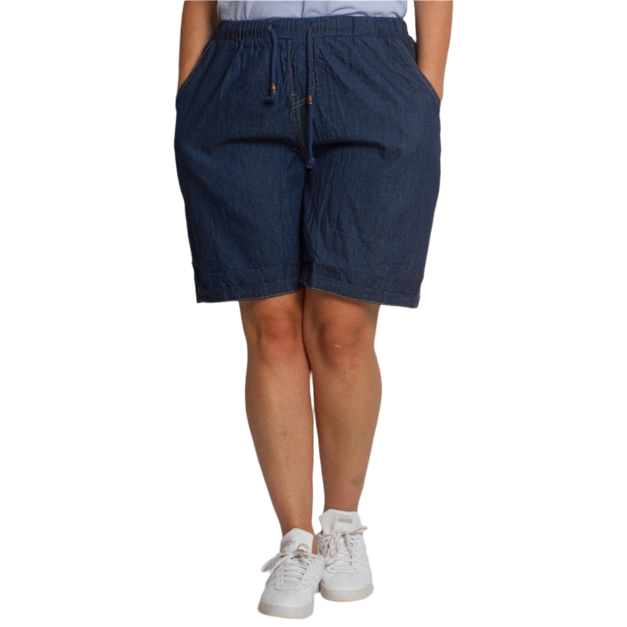 Pantaloni scurți din denim cu buzunare și elastic, mărimi mari