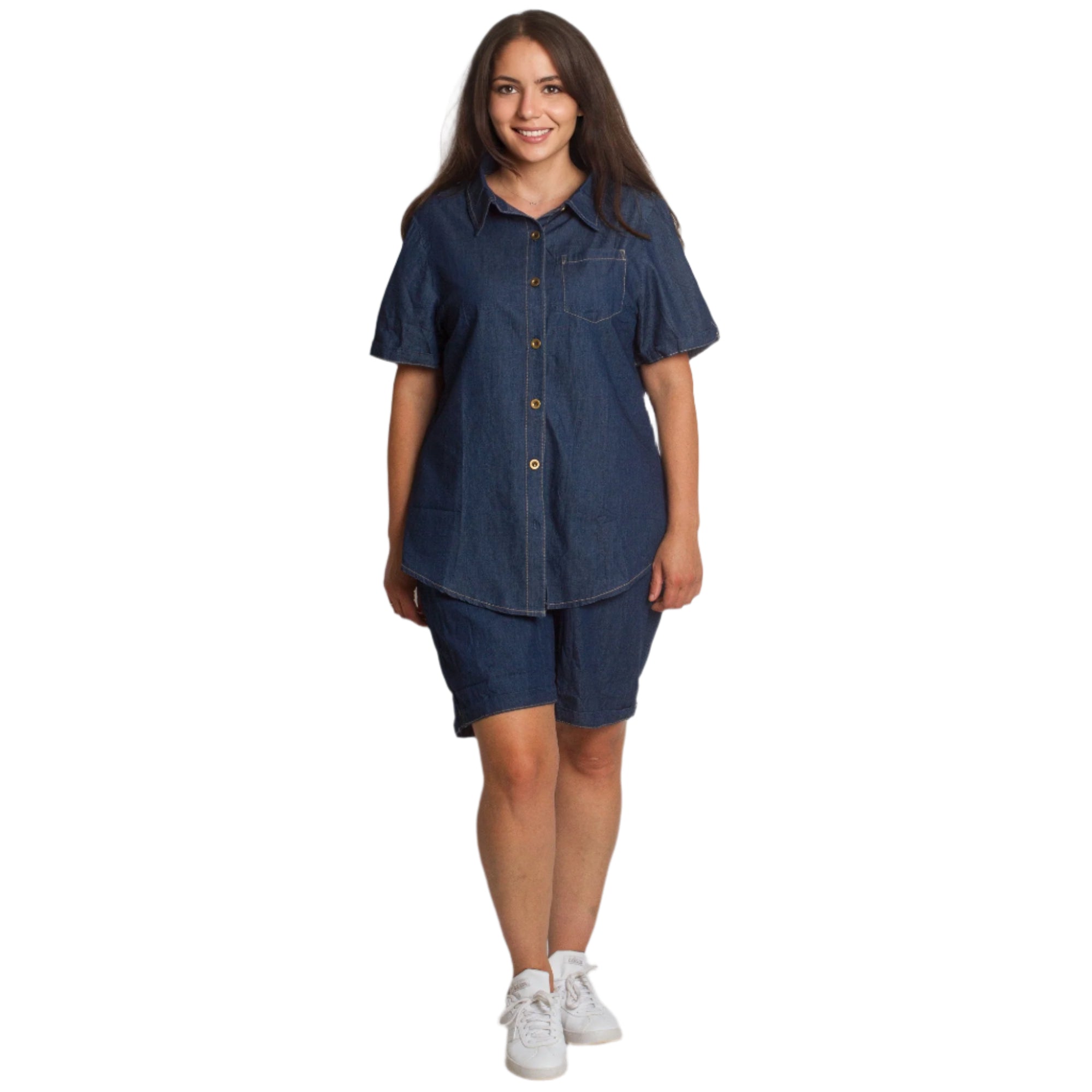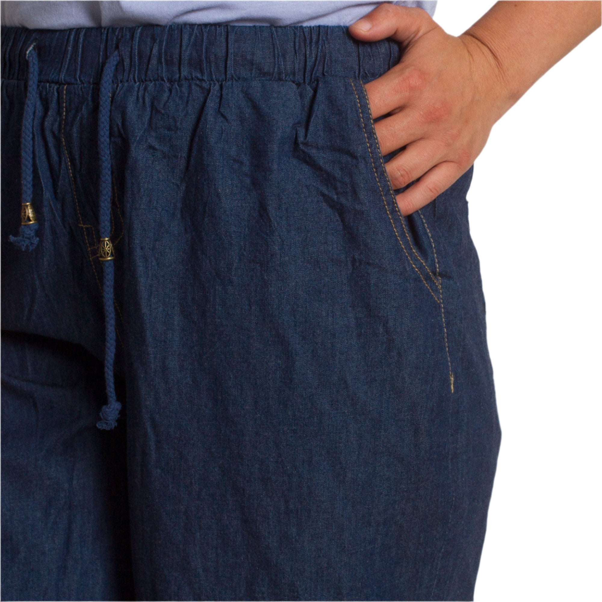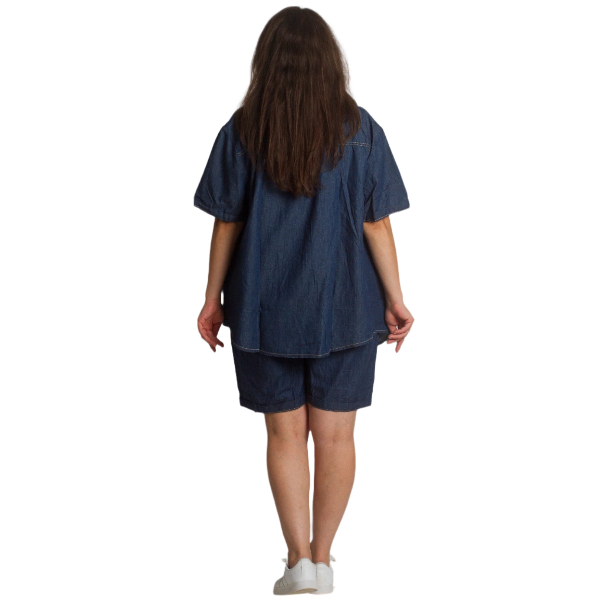 Pantaloni scurți din denim cu buzunare și elastic, mărimi mari