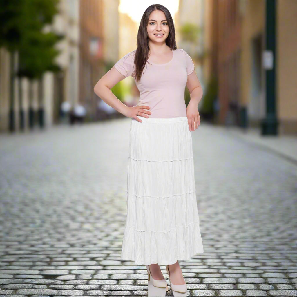 Descoperă completarea perfectă pentru garderoba ta de zi cu zi cu această fustă albă de la Maxi Market, concepută special pentru femeile cu forme voluptuoase. Concepută pentru sezonul primăvară-vară, această fustă este extrem de confortabilă datorită taliei elastice care nu se închid, asigurând o îmbrăcare și o scoatere ușoară. Fabricată din 92% vâscoză și 8% elastan, oferă o elasticitate și o moliciune excelente la atingere. Perfectă pentru orice ocazie de zi cu zi, fusta are lungimea până la gleznă, ceea ce accentuează grația siluetei fără a compromite confortul.