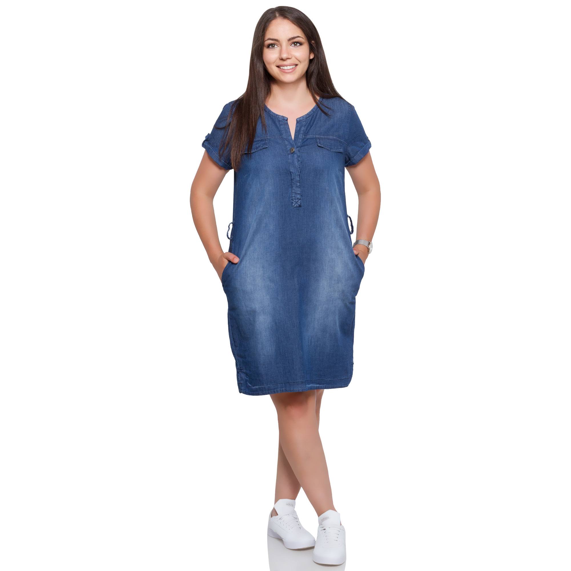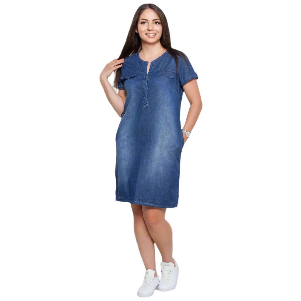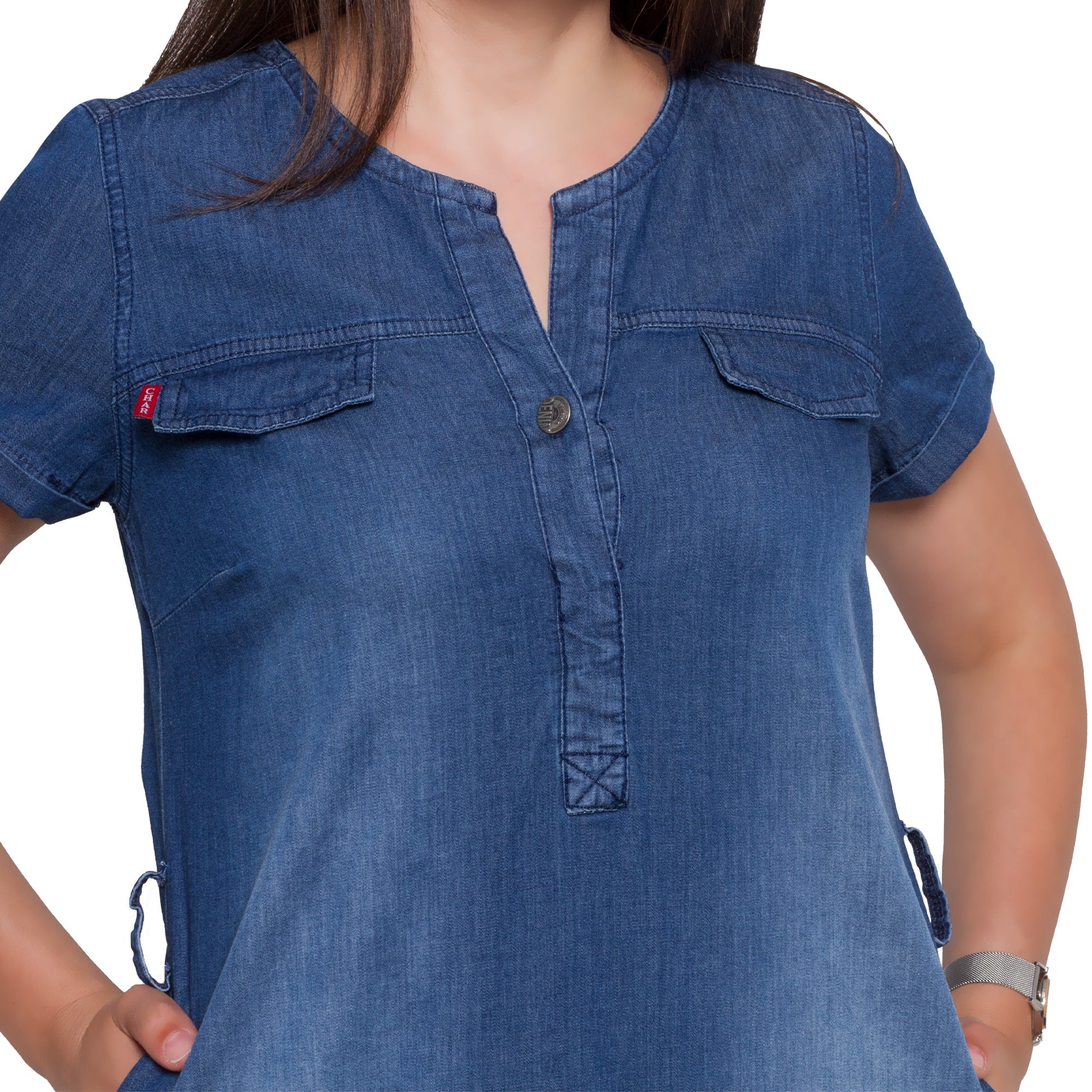 Rochie din denim cu buzunare în mărimi mari - Confort și stil