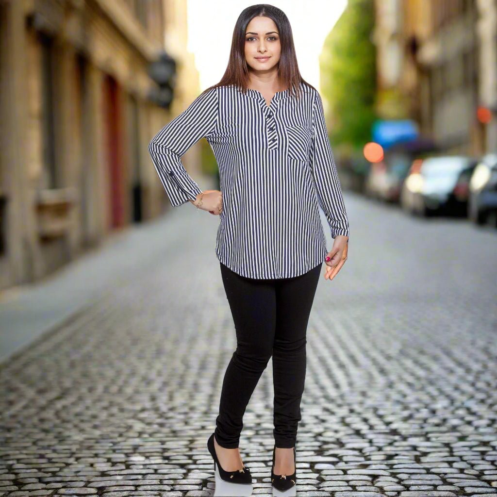 Sofisticată și confortabilă, această cămașă formală de la Maxi Market este alegerea ideală pentru orice doamnă care caută stil și confort. Fabricată din 95% viscoză, 5% elastan, cămașa oferă dungi albastre ușor iridescente care adaugă eleganță ținutei tale. Decolteul în V înmoaie silueta, iar buzunarul adăugat este un accent practic și modern. Perfectă pentru orice eveniment formal, această cămașă este concepută pentru a oferi confort în toate anotimpurile. În plus, cămașa este fabricată în Bulgaria, ceea ce garantează calitate înaltă și stil, în conformitate cu cele mai recente tendințe în modă pentru mărimi mari.