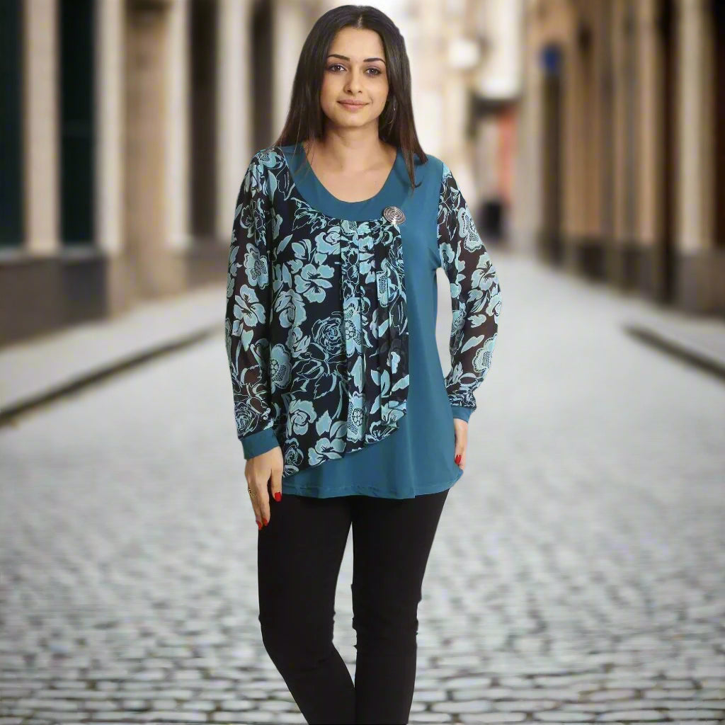 Găsește tunica formală perfectă pentru ocaziile tale speciale la Maxi Market. Această tunică într-o culoare petrol izbitoare este extrem de sofisticată, cu croiala sa lejeră și decolteul rotund, oferind eleganță și confort în orice situație. Modelul floral adaugă o notă de tandrețe și feminitate, făcând această piesă vestimentară ideală pentru orice eveniment formal în toate anotimpurile. Compoziția de 95% vâscoză și 5% elastan garantează confort și elasticitate, permițând tunicii să-ți modeleze în mod natural silueta. Asigură-ți încrederea și stilul cu această tunică unică, care va fi companionul tău fidel pentru evenimentele formale.