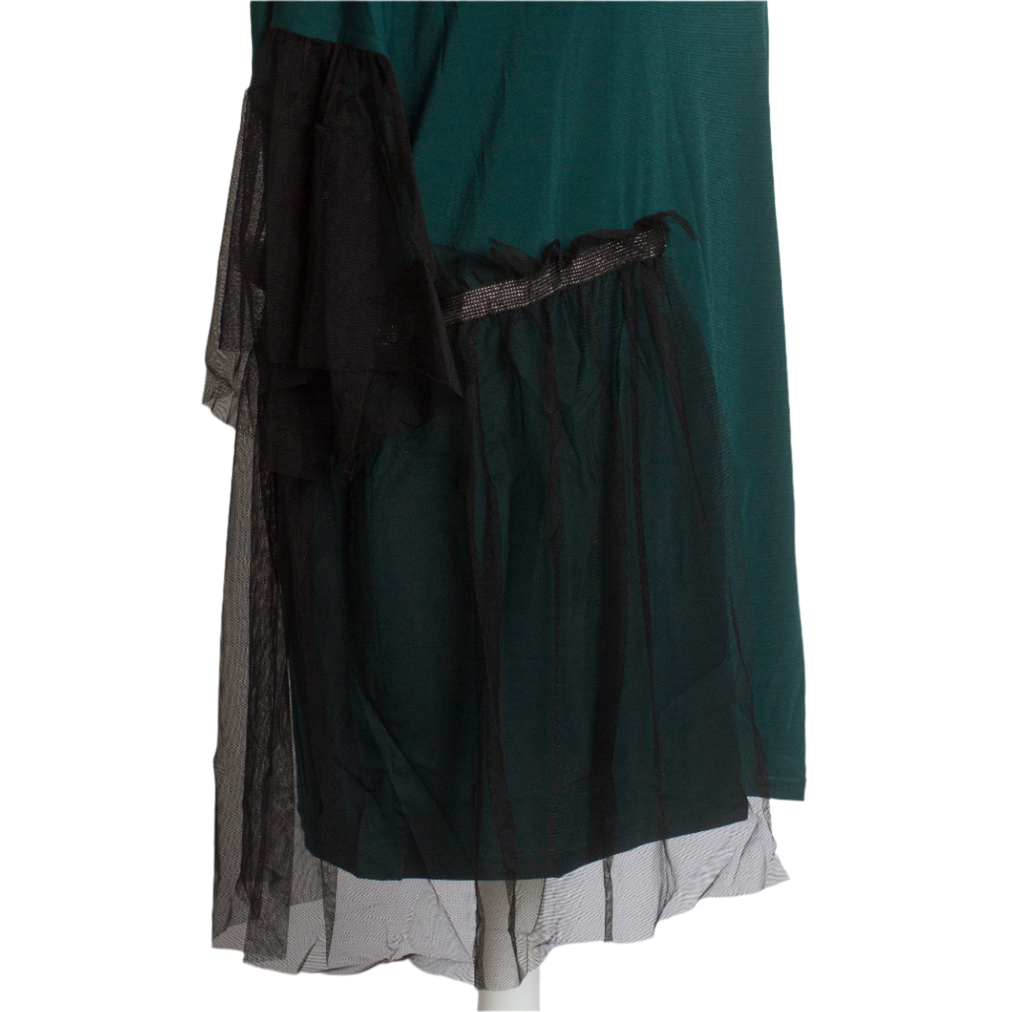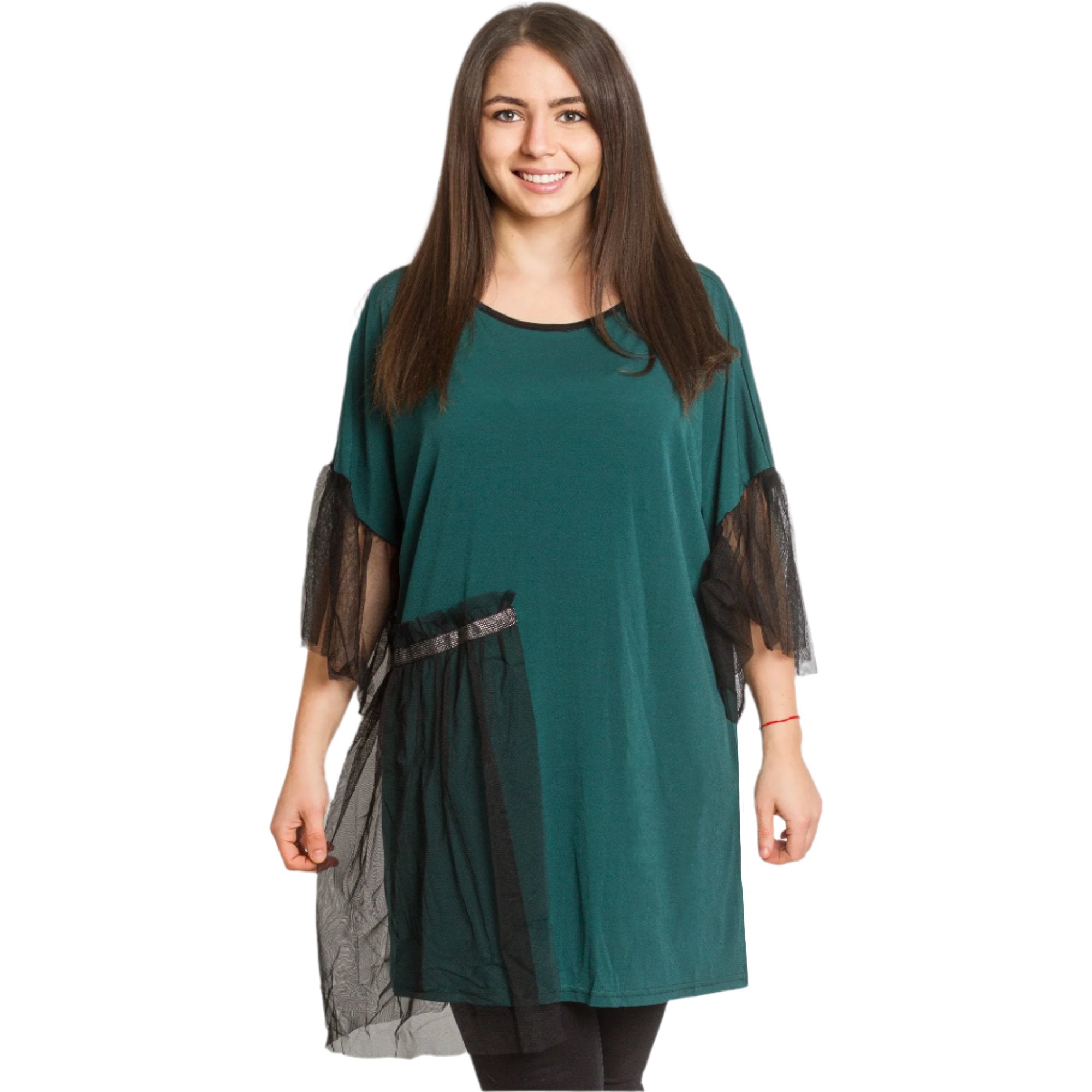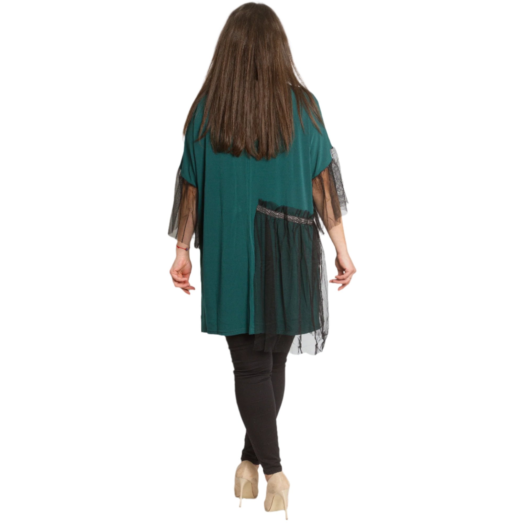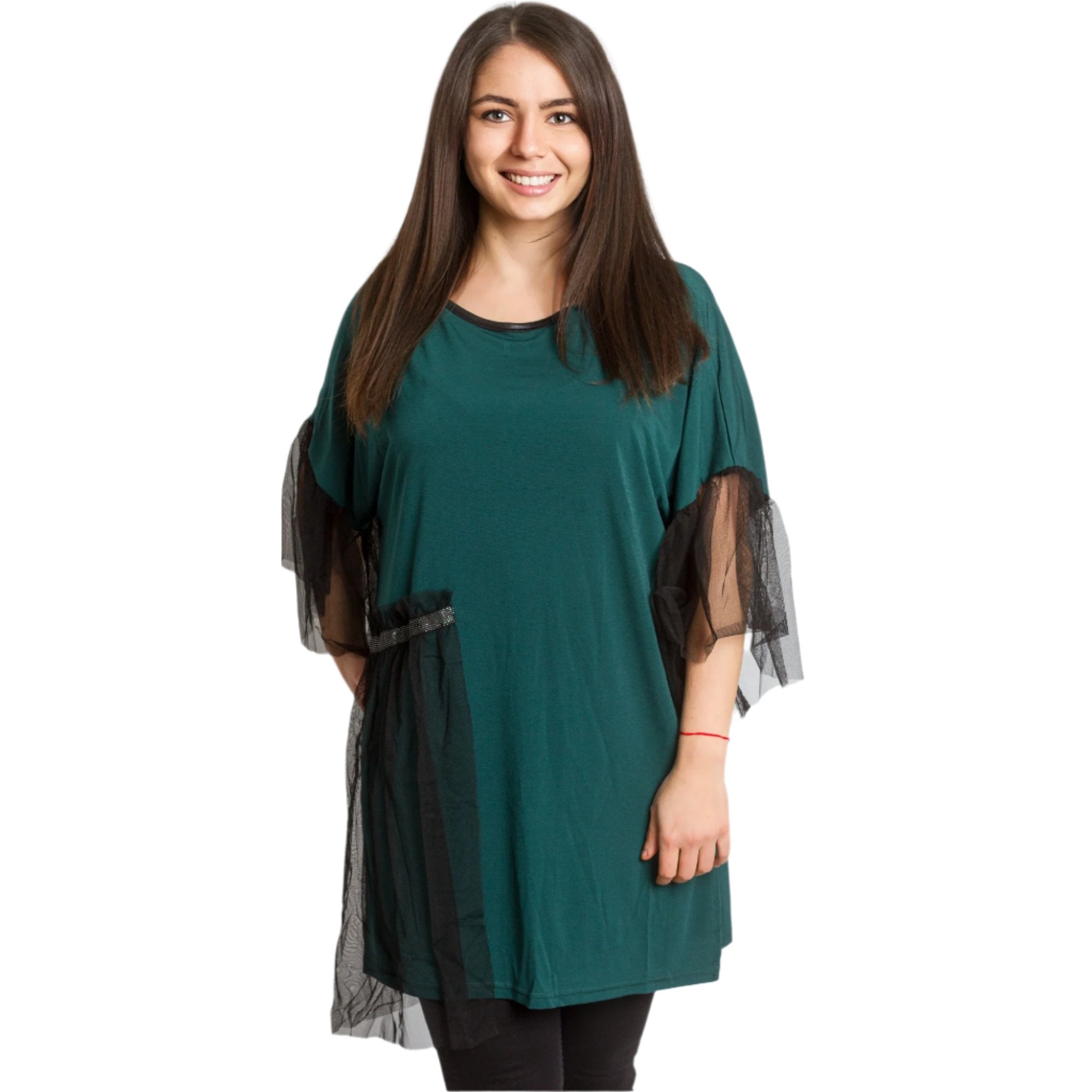 Descoperă ținuta formală perfectă cu această tunică elegantă din tul, de culoare verde închis, oferită de Maxi Market. Fabricată din materiale de înaltă calitate - 5% elastan, 25% poliester și 70% poliamidă, această tunică oferă confort atunci când este purtată în orice anotimp. Croiul drept, împreună cu decolteul tip barcă, conferă o puritate clasică și versatilitate, potrivită pentru orice eveniment. O alegere ideală pentru doamnele care prețuiesc stilul și calitatea.