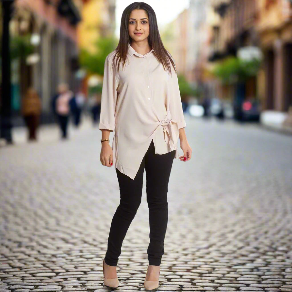 Cămașă bej de damă pentru evenimente formale - Mărimi maxi