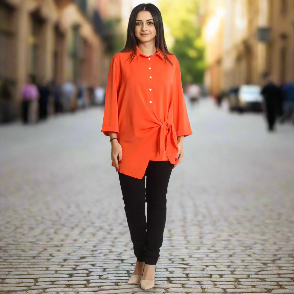 Vă prezentăm o cămașă elegantă de culoare coral, potrivită pentru ocazii formale, din colecția Maxi Market. Această cămașă este confecționată din 100% poliester, ceea ce o face ușoară și confortabilă de purtat. Cu un guler și un design clasic, această cămașă adaugă stil și rafinament garderobei tale. Ideală pentru femeile care caută confort fără a compromite eleganța. O alegere excelentă pentru orice doamnă care își dorește să arate profesională și stilată.