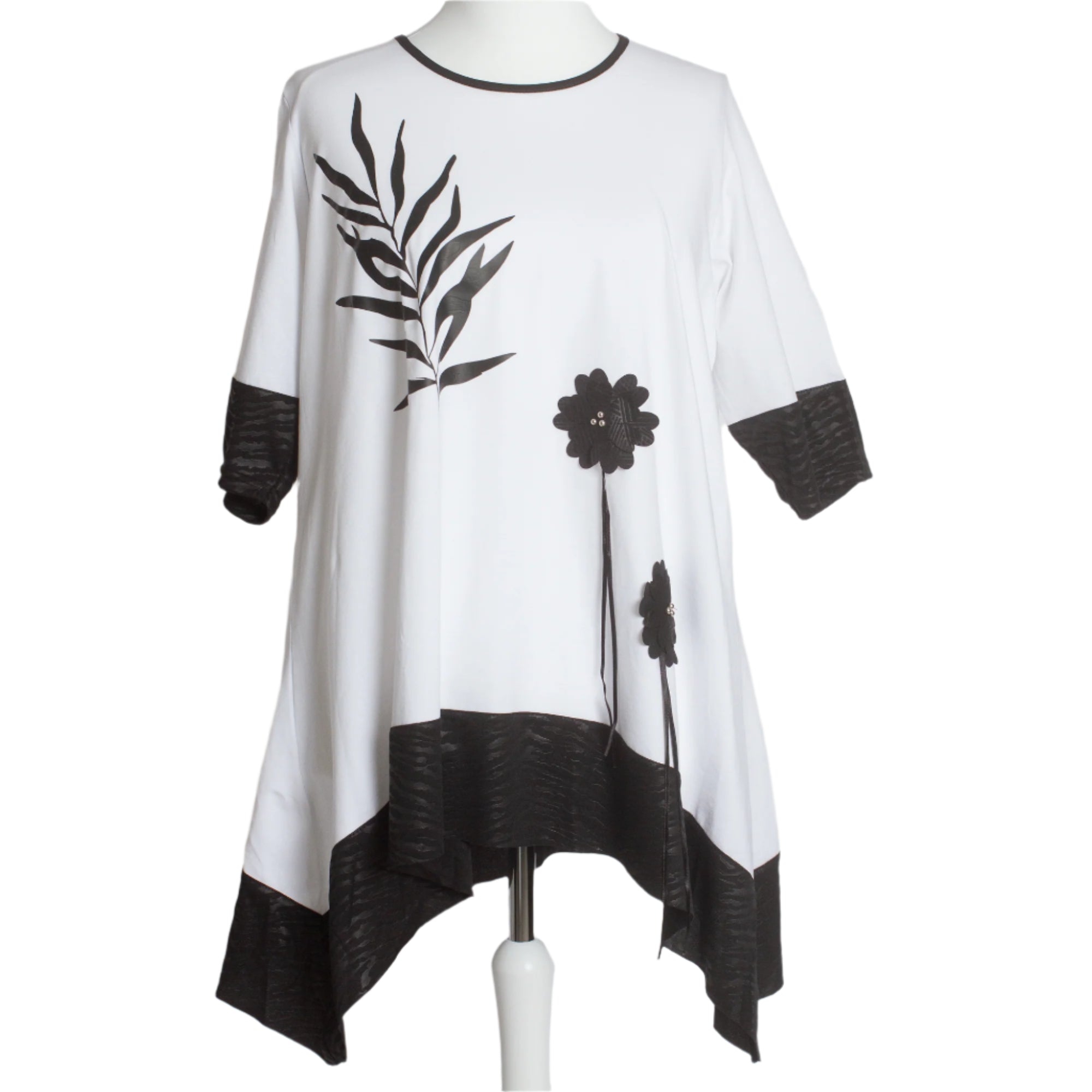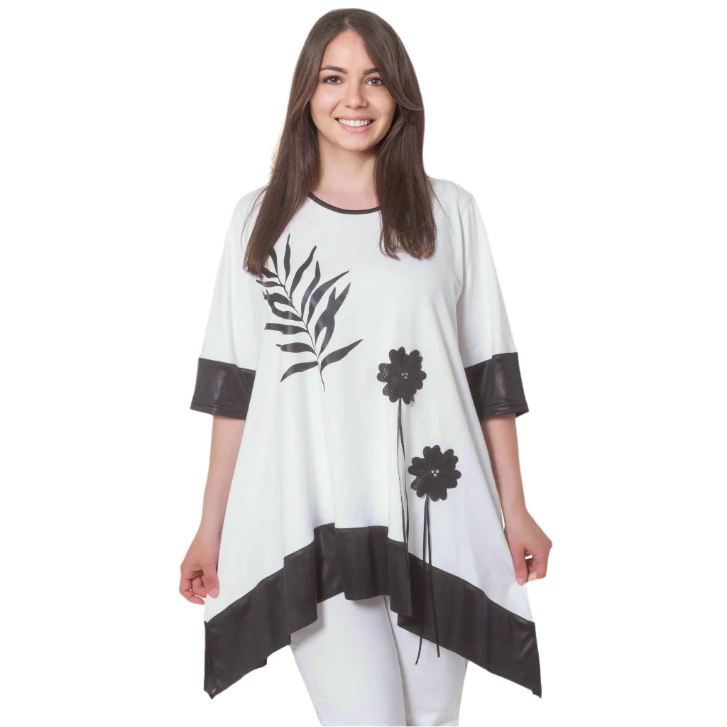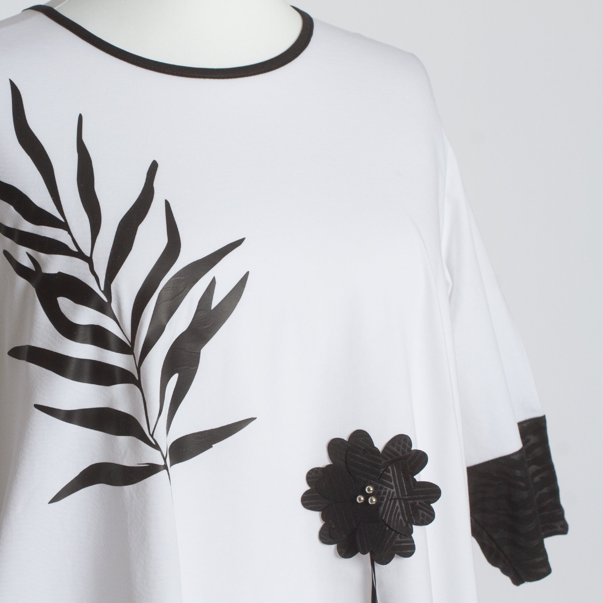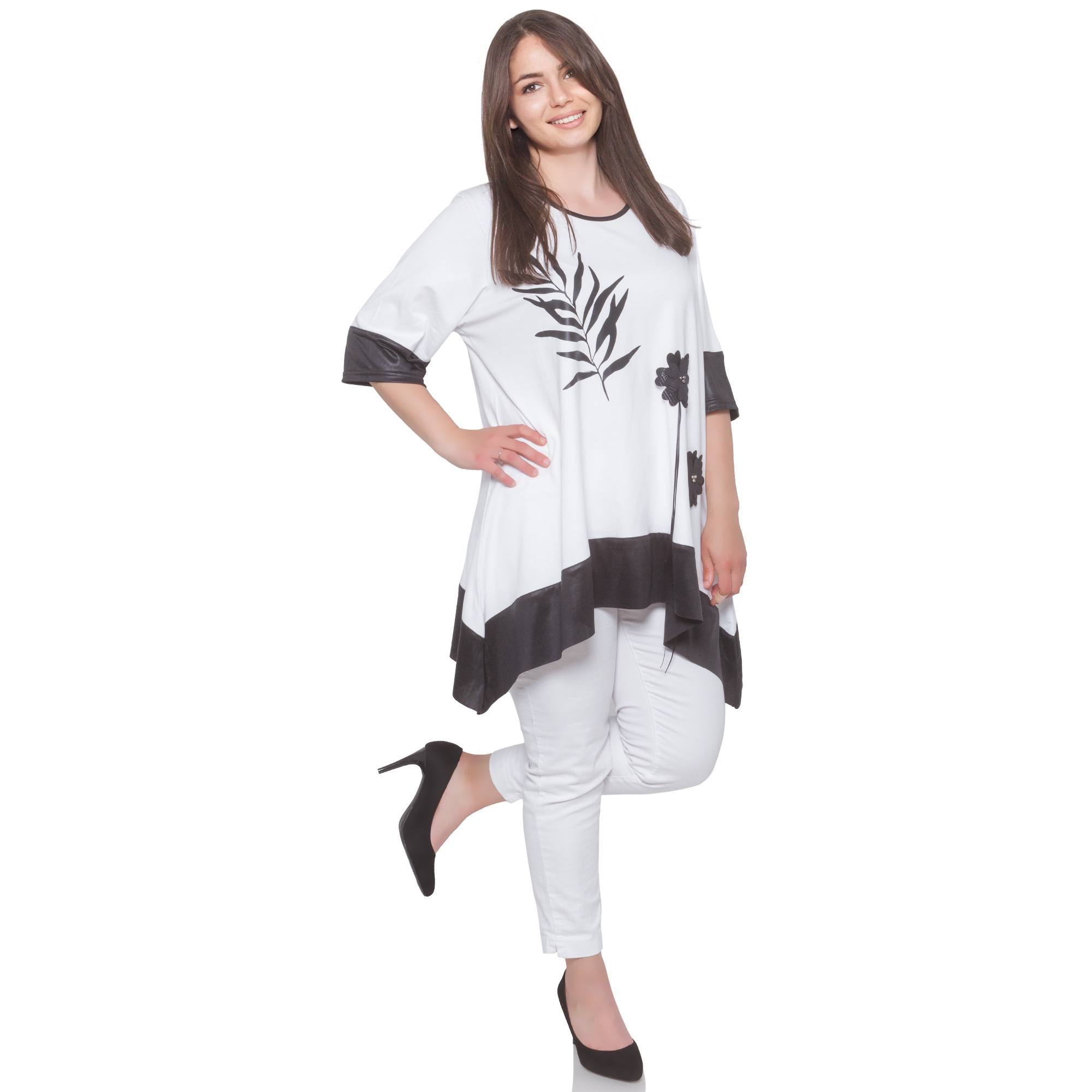 Descoperă tunica albă perfectă de la Maxi Market pentru garderoba ta formală în această primăvară-vară. Această tunică prezintă un model floral atrăgător, care adaugă stil și eleganță oricărui look. Cu o croială evazată și un decolteu rotund, această tunică oferă confort și libertate de mișcare, ideală pentru orice femeie care caută confort fără a sacrifica stilul. Fabricată în Bulgaria (UE), cu o compoziție de 70% poliamidă, 25% poliester și 5% elastan, această tunică se potrivește perfect doamnelor plus size. Pune-ți în valoare feminitatea și stilul cu această tunică sofisticată, care îți va aduce imediat multe complimente.