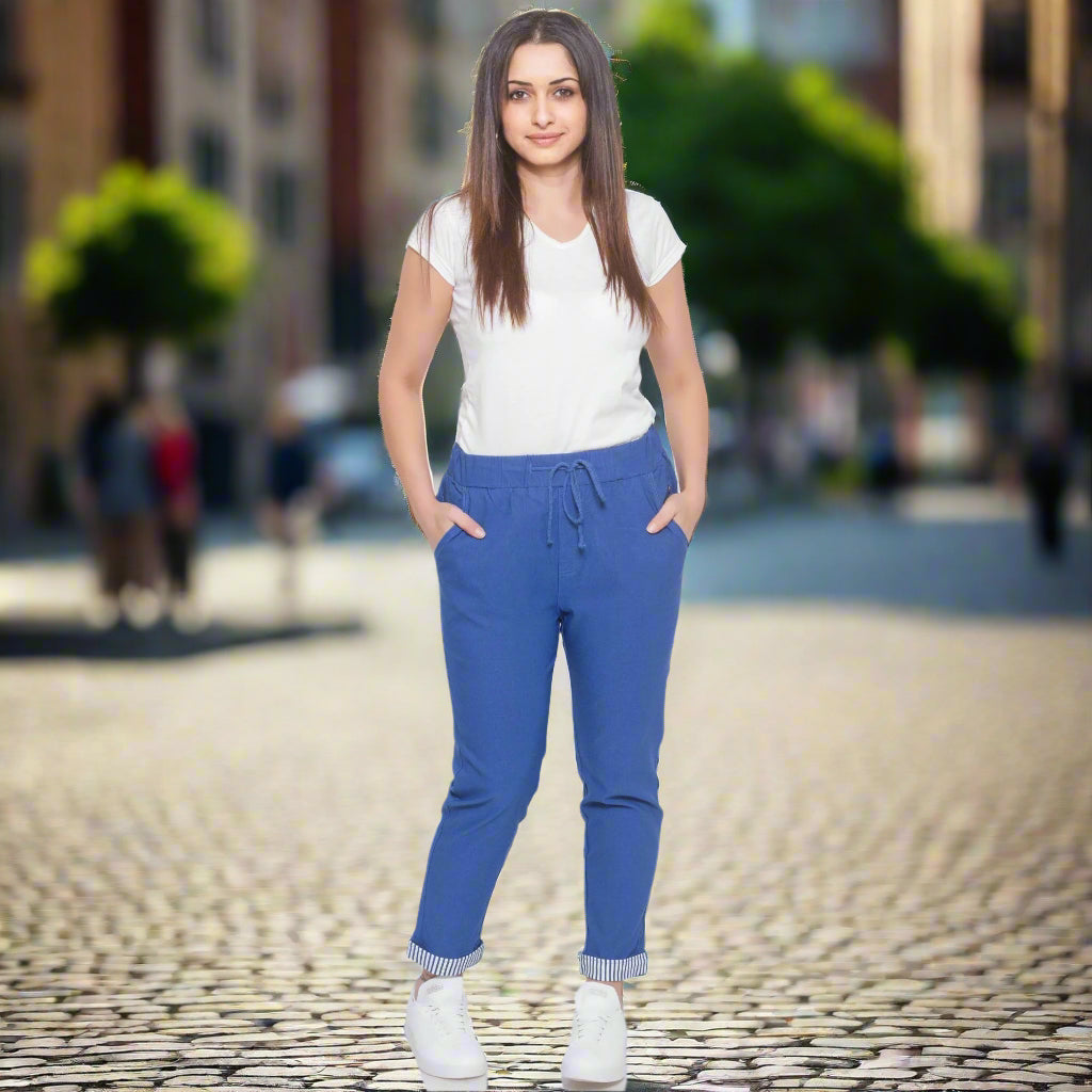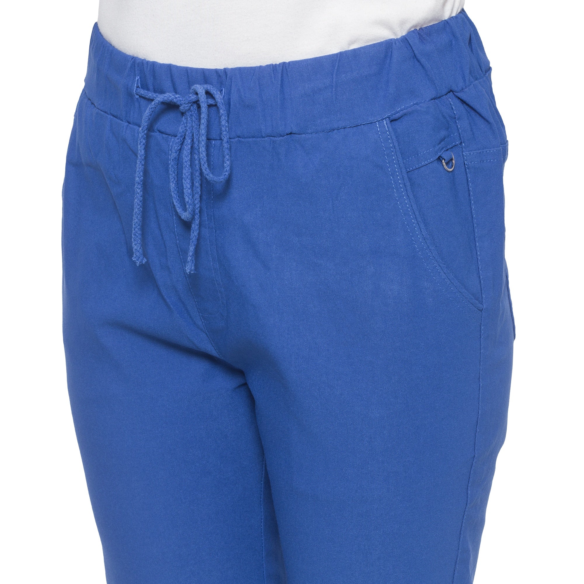 Găsește completarea perfectă pentru garderoba ta formală cu pantalonii noștri de la Maxi Market. Confecționați dintr-un amestec confortabil de 95% bumbac și 5% elastan, acești pantaloni sunt perfecți pentru sezonul primăvară-vară. Cu talie înaltă și lungime sub genunchi, modelul oferă o croială lejeră. Sunt echipați cu buzunare practice și o bandă elastică în talie fără închidere suplimentară, ceea ce garantează o potrivire perfectă. Culoarea albastră adaugă un accent elegant și stilat oricărui look, făcându-i perfecți atât pentru ocazii formale, cât și speciale.