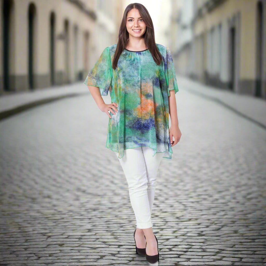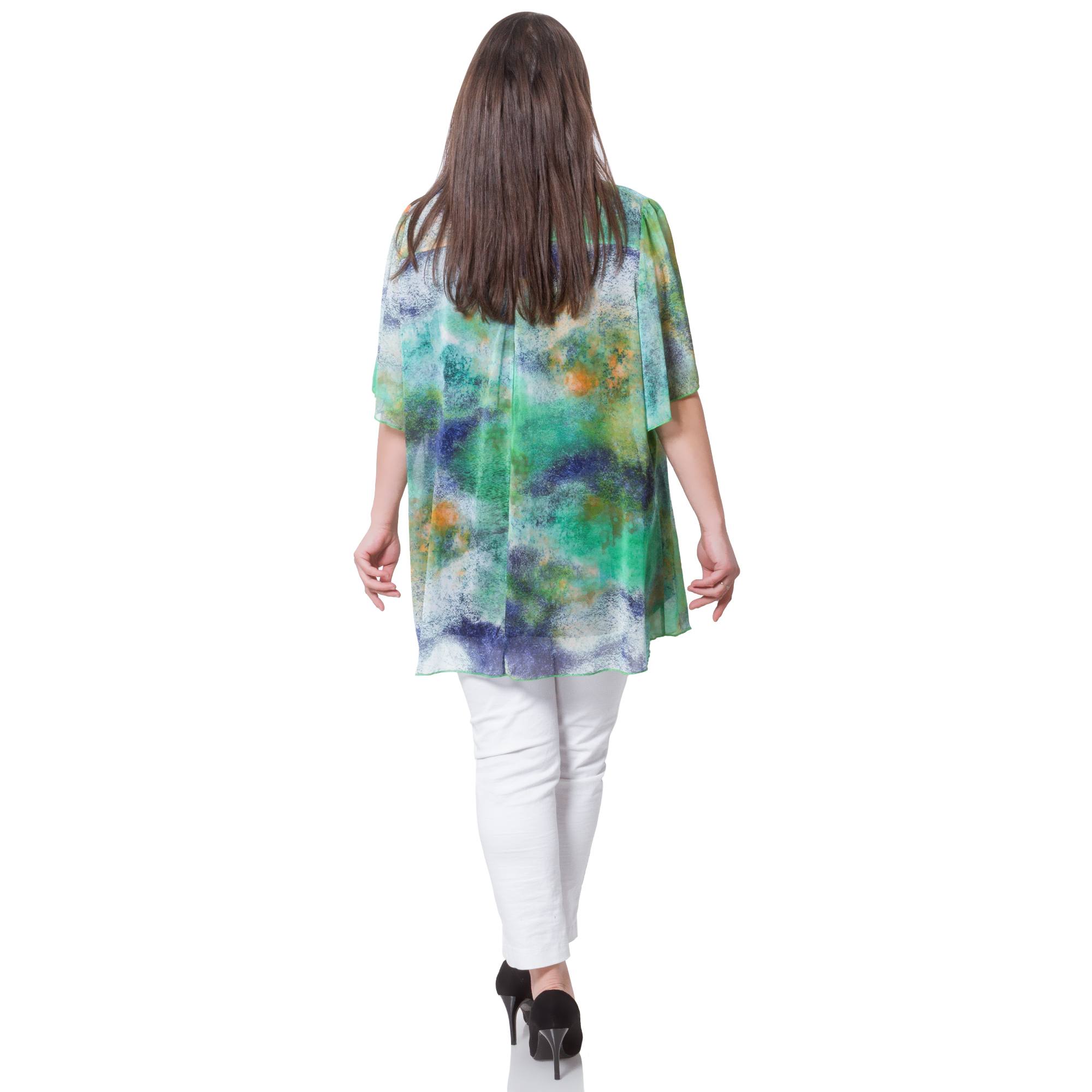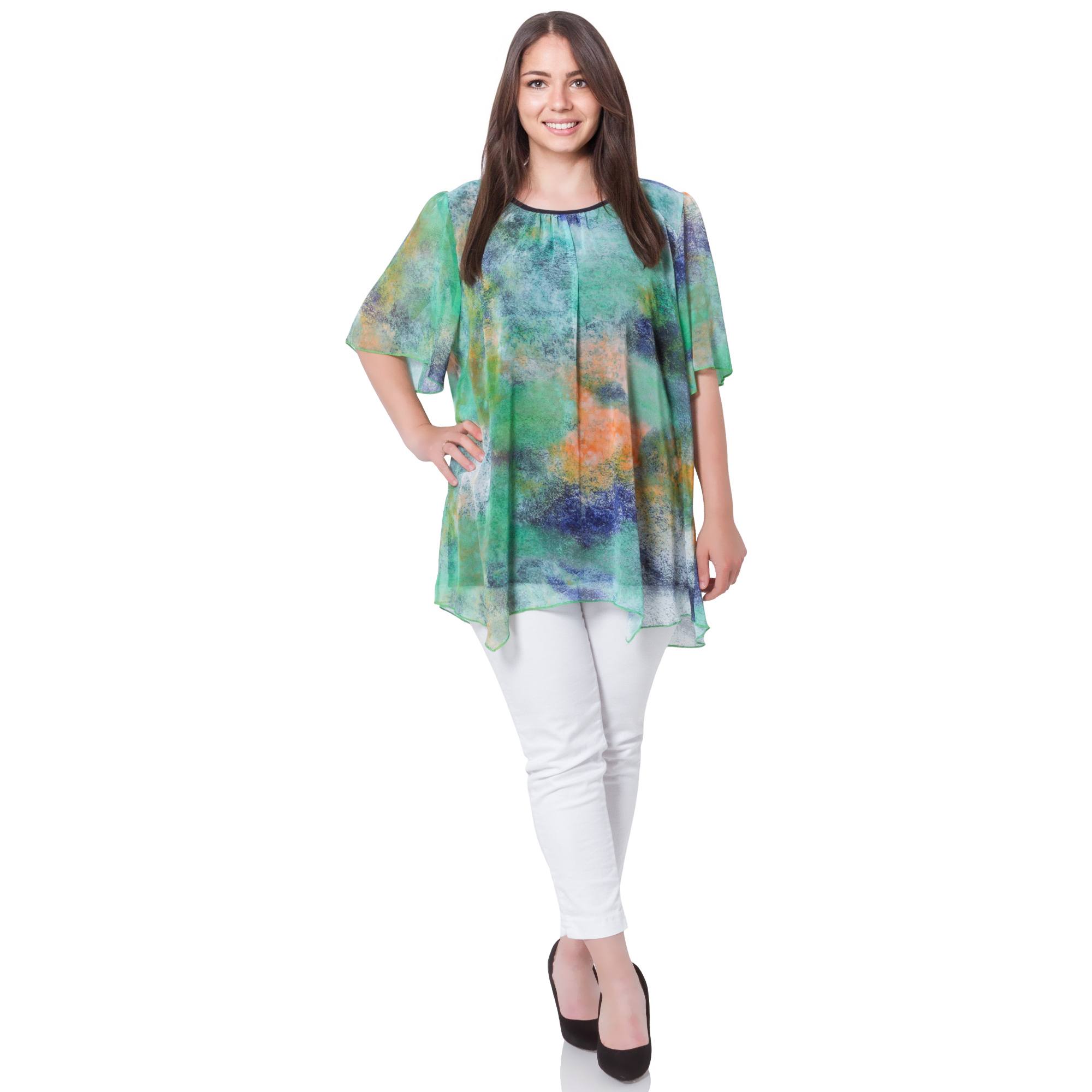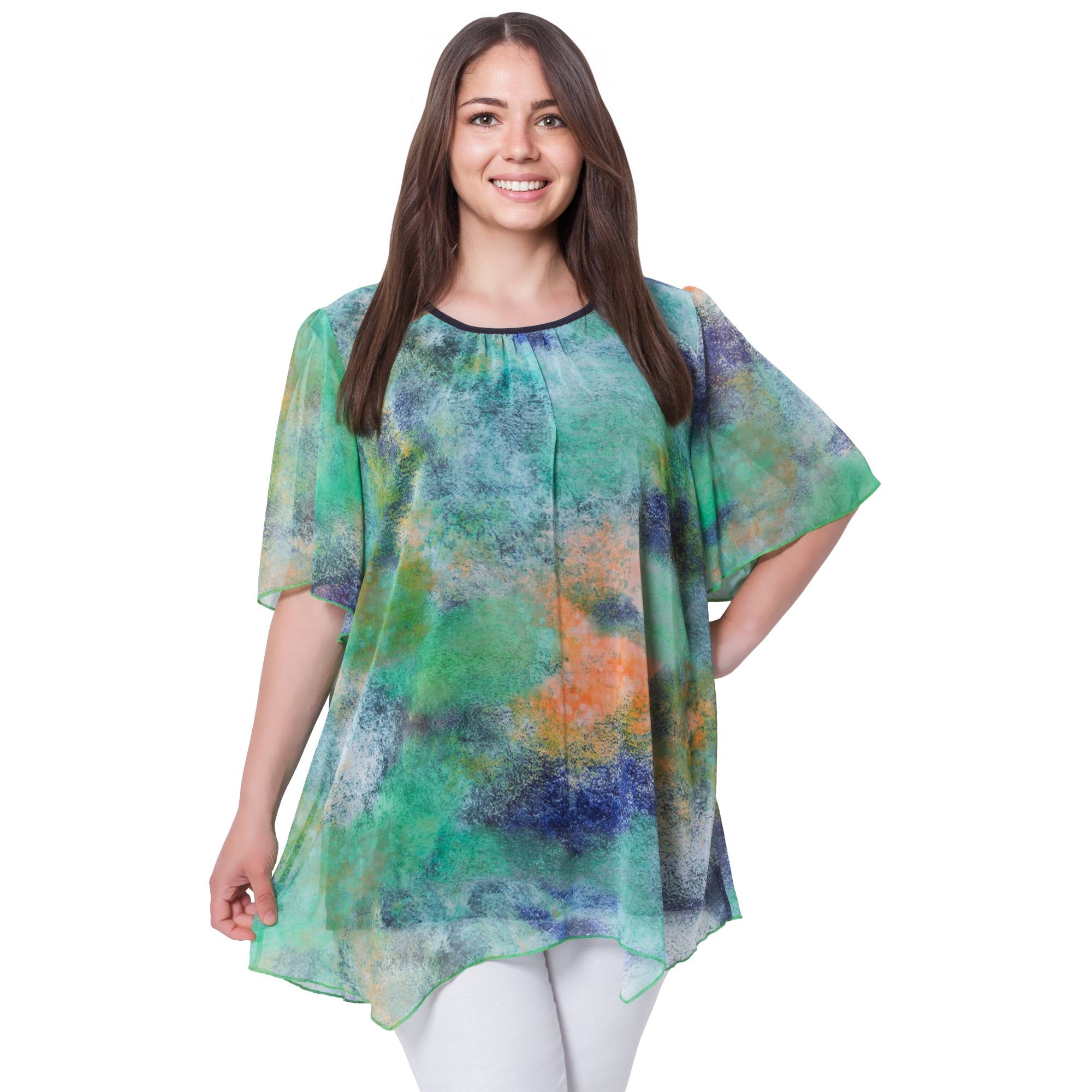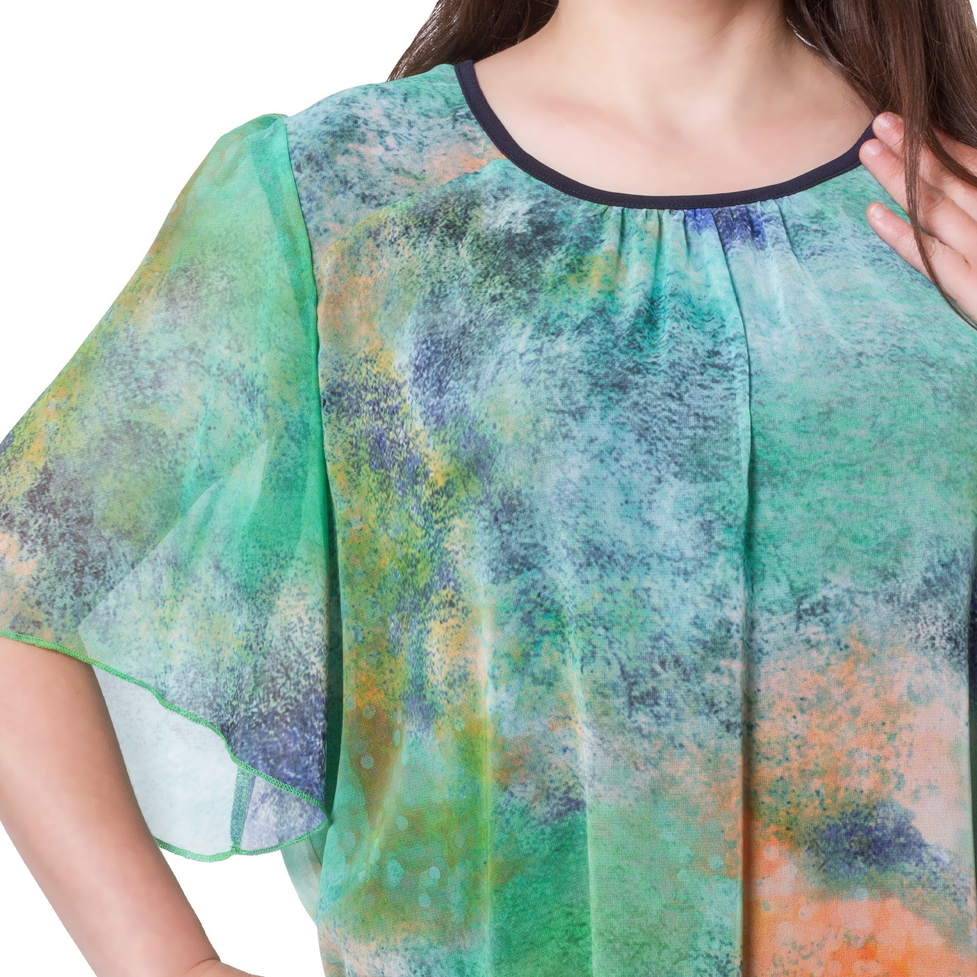 Descoperă stilul și confortul cu această tunică colorată din șifon de la Maxi Market, perfectă pentru evenimentele formale din sezonul primăvară-vară. Cu un model abstract și o croială lejeră, această tunică este confecționată din 100% poliester, fiind ușoară și vaporoasă. Decolteul tip barcă adaugă un accent elegant aspectului, evidențiind gâtul și umerii. O alegere perfectă pentru doamnele care caută confort și stil într-un singur loc, această tunică este un articol obligatoriu în colecția oricărei doamne plus size.