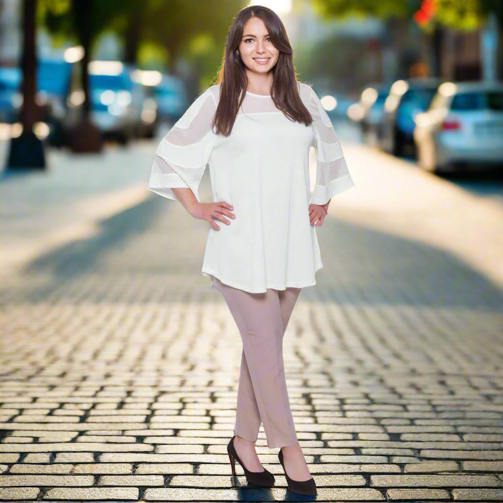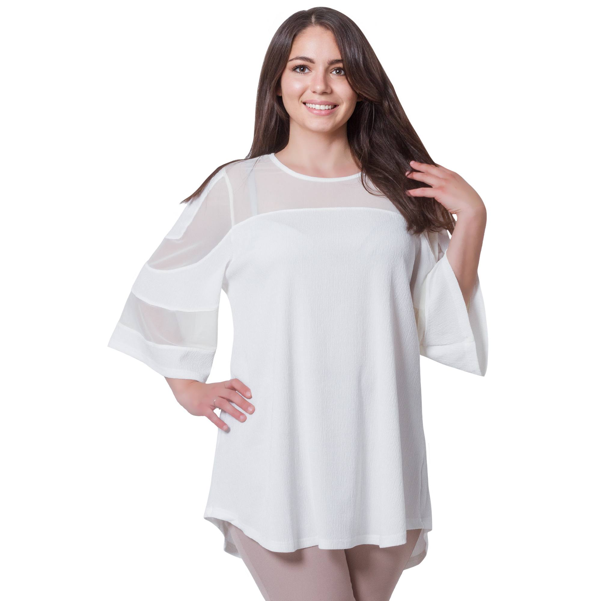 Tunică elegantă evazată cu tul în mărimi maxi