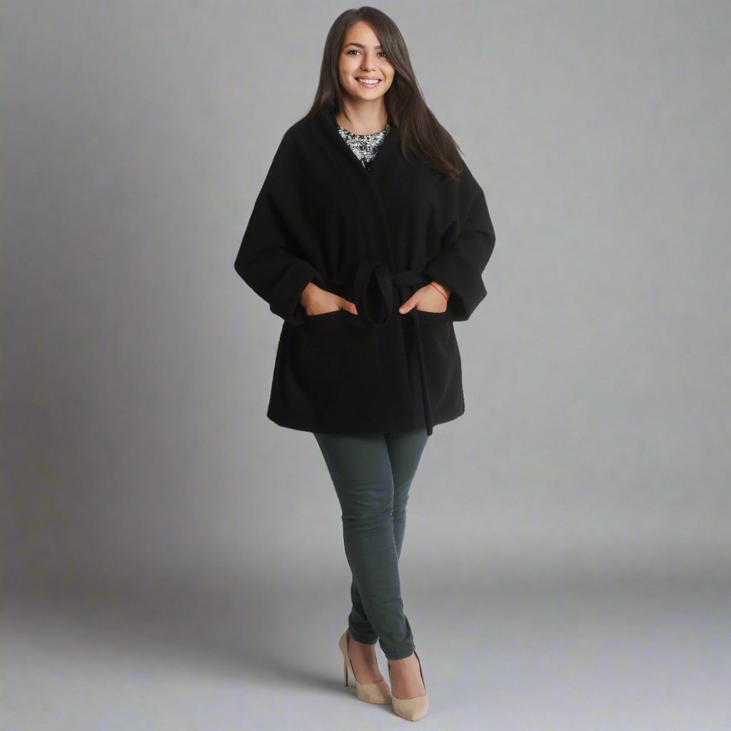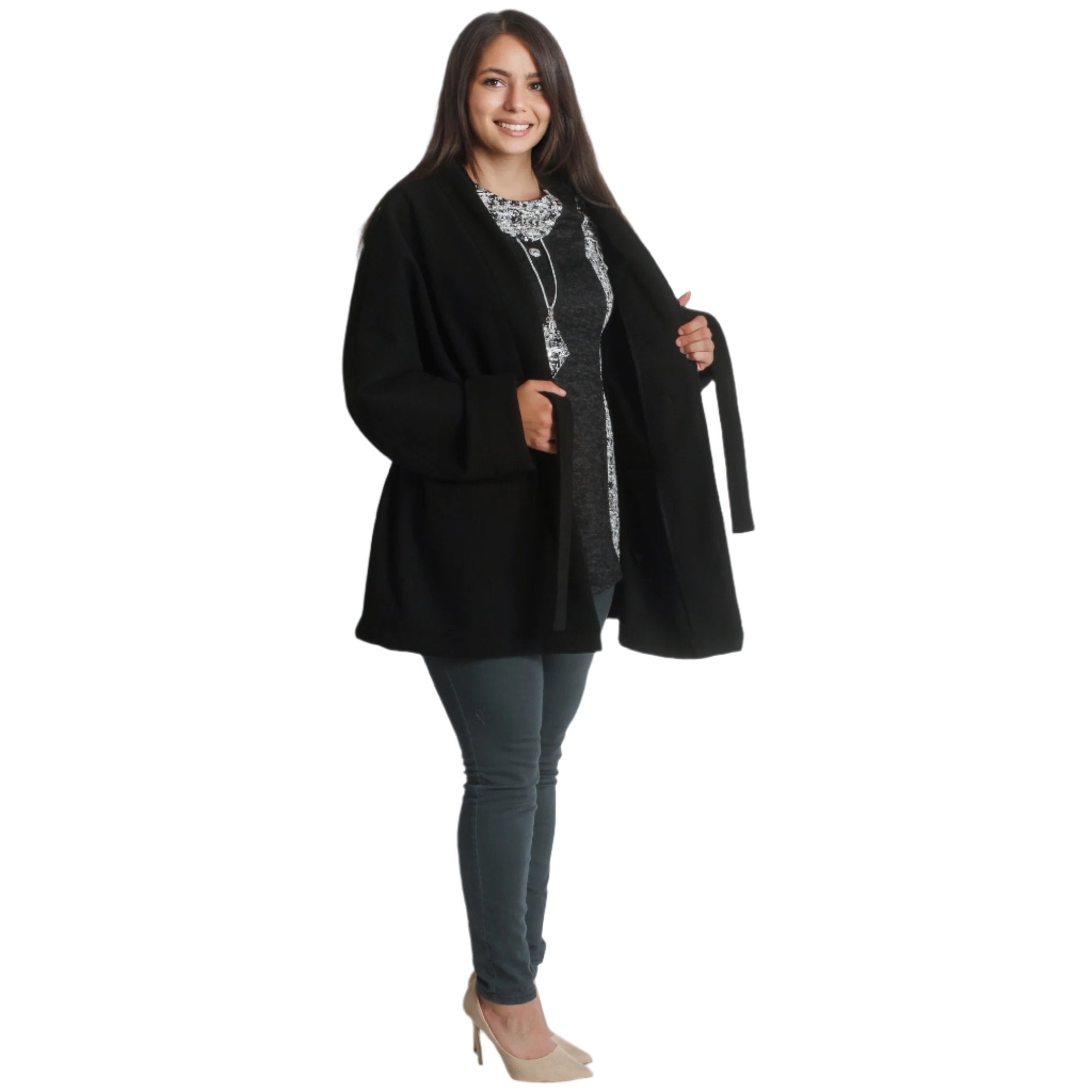 Palton maxi elegant, de culoare neagră, cu o curea spectaculoasă. Confecționat din 50% lână și 50% acril, fără închizătoare, potrivit pentru sezonul toamnă-iarnă. Croială stilată și confortabilă, ideală atât pentru evenimente formale, cât și de zi cu zi!