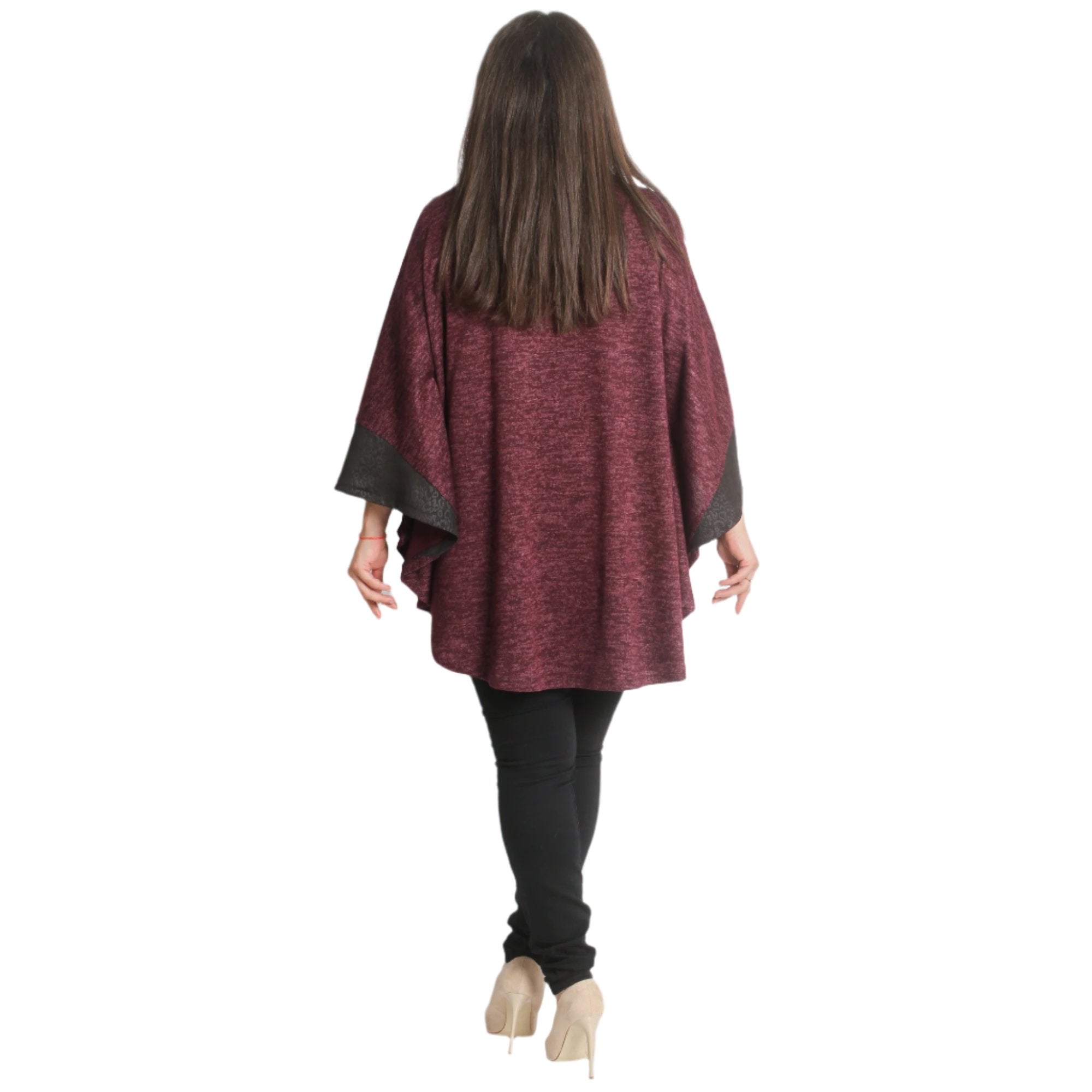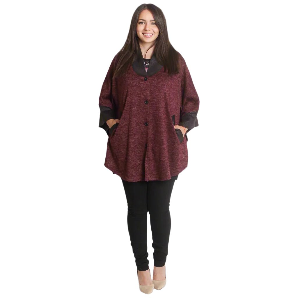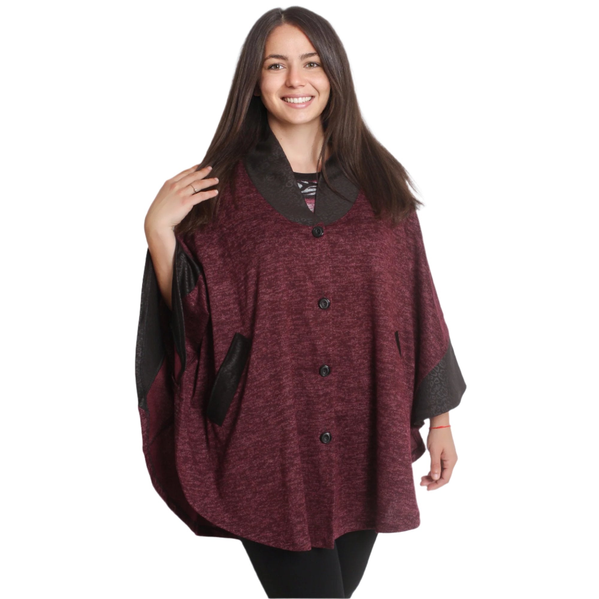 Poncho maxi bordo cu nasturi și buzunare. Fabricat din 95% viscoză și 5% elastan. Model practic, lejer, potrivit pentru sezonul toamnă-iarnă. Alegerea ideală atât pentru ocazii formale, cât și pentru viața de zi cu zi!