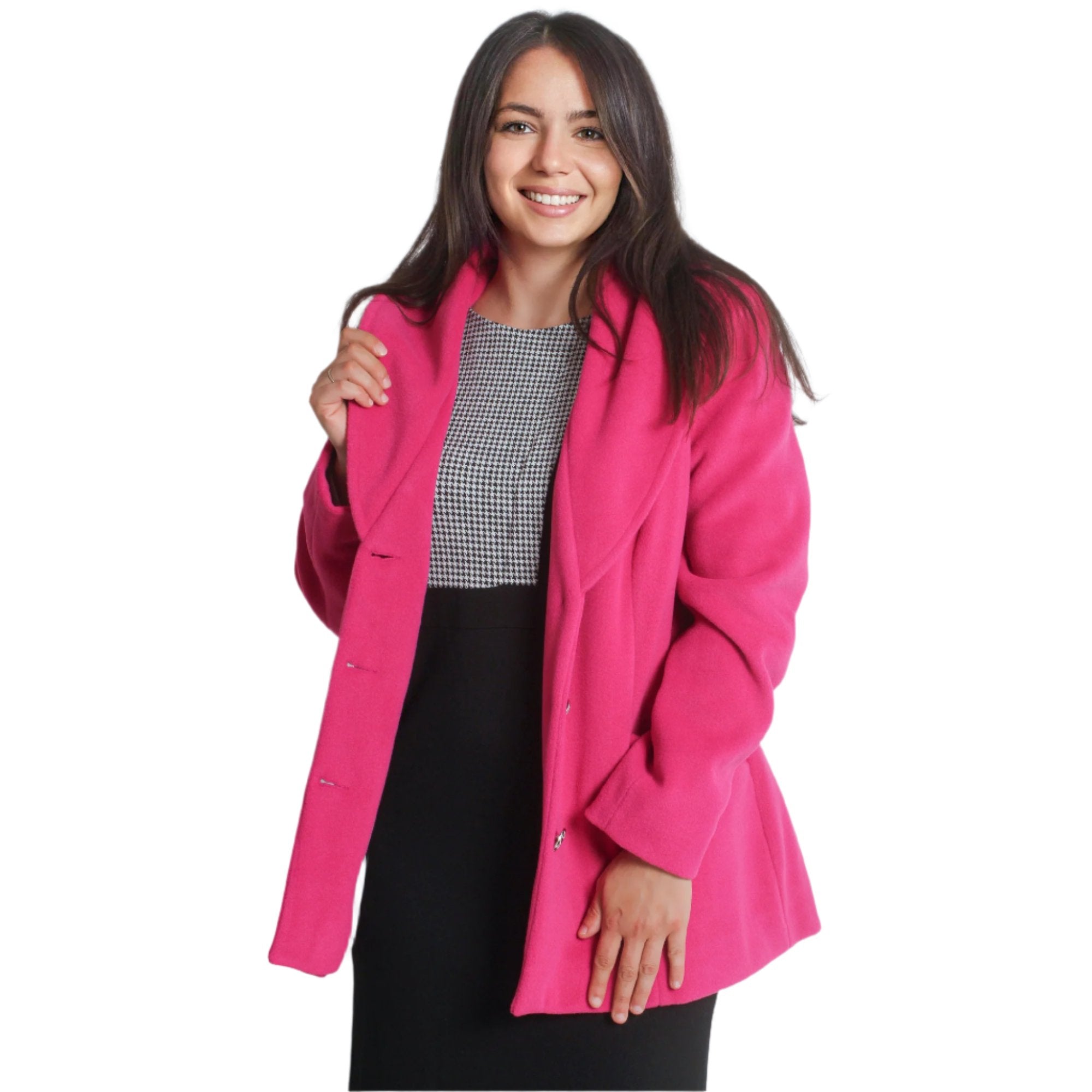 Palton maxi roz pentru femei. Confecționat din 50% lână și 50% acril, fără închizătoare, potrivit pentru sezonul toamnă-iarnă. Alegerea ideală pentru evenimente formale!