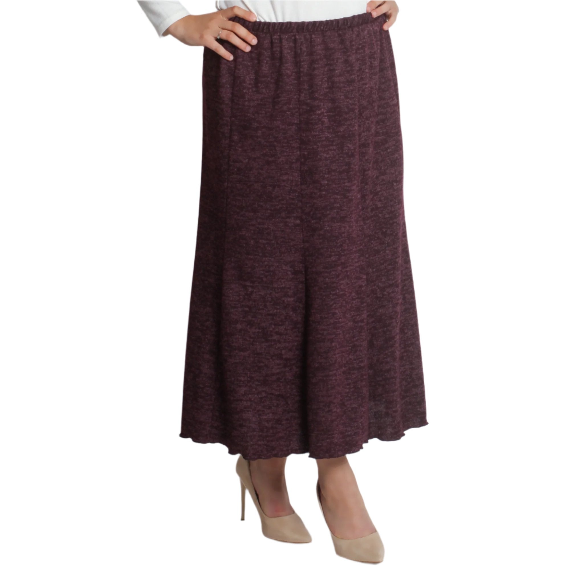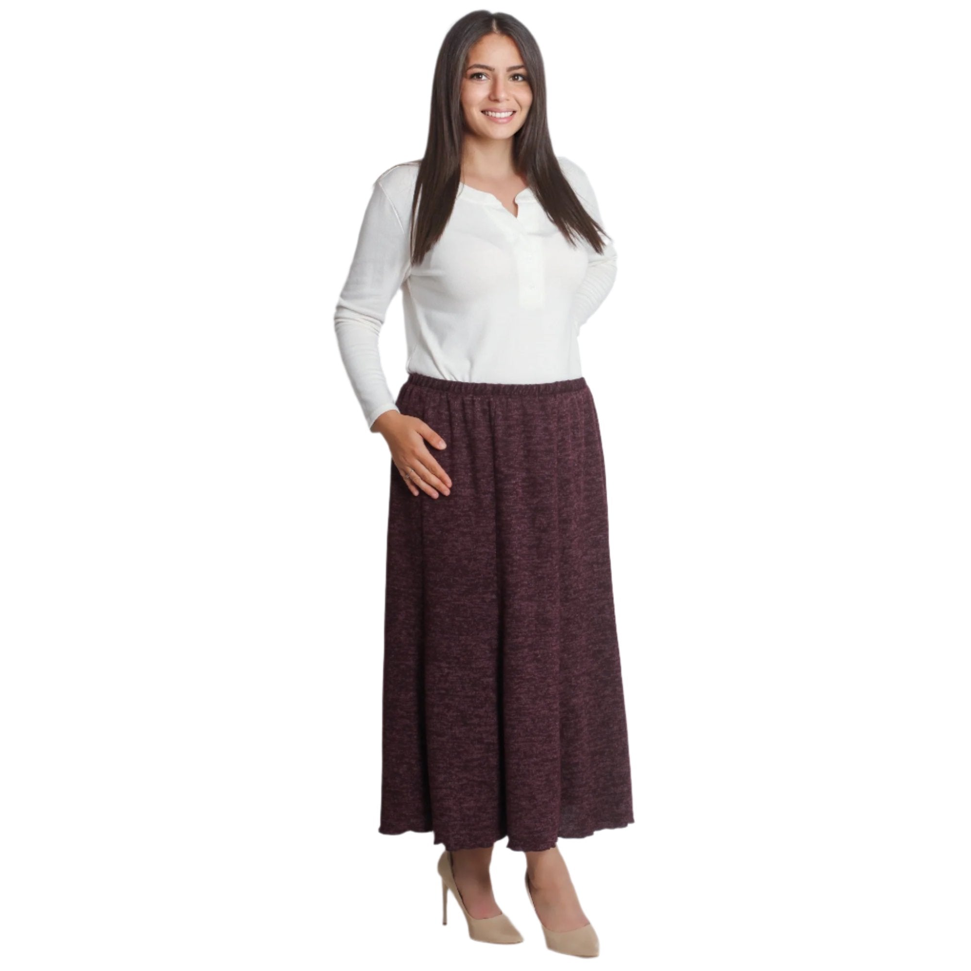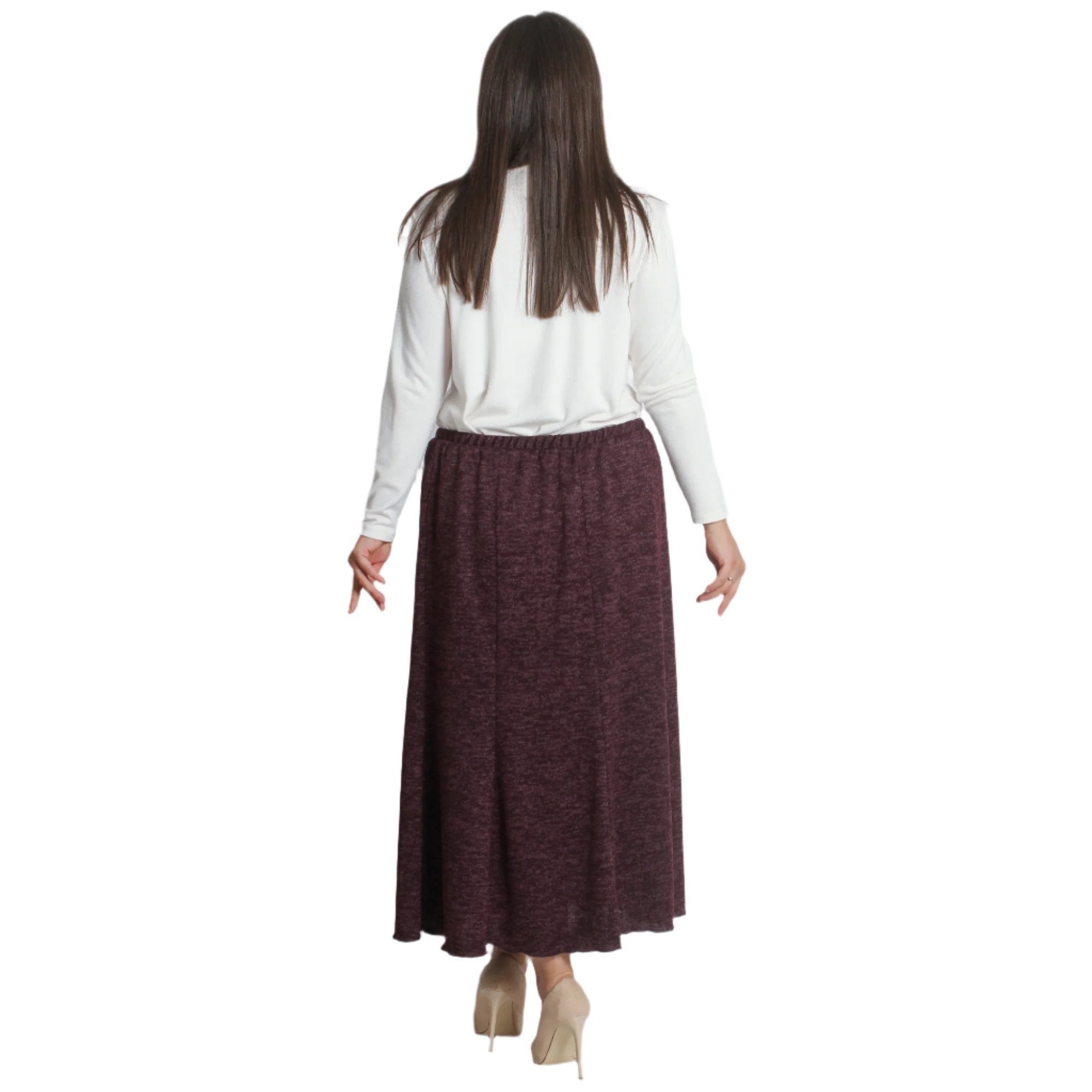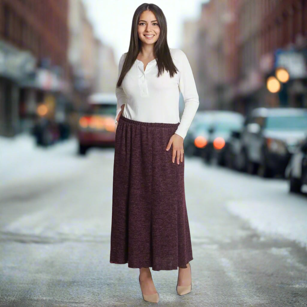 Fustă maxi de iarnă, de culoare vișinie, confecționată din 95% viscoză și 5% elastan. Model evazat cu elastic în talie și până la gleznă, potrivit pentru orice ocazie din sezonul de iarnă. Această fustă elegantă și confortabilă este o alegere ideală pentru doamnele care caută confort și stil în zilele reci.