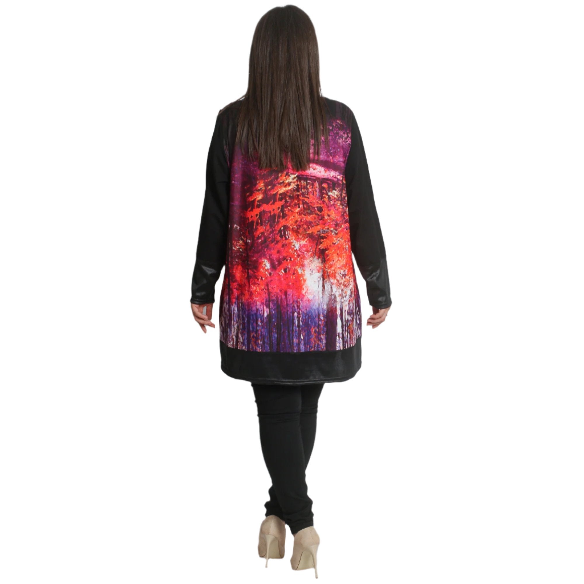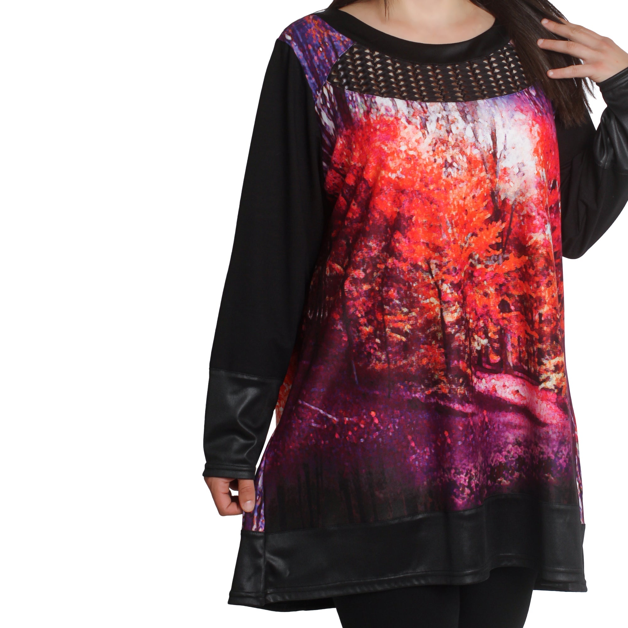 Tunica spectaculoasă de damă cu motive de toamnă, confecționată din 70% poliamidă, 25% poliester și 5% elastan. Model formal cu elemente din plasă și piele ecologică, potrivită pentru sezonul toamnă-iarnă. Tunica combină eleganța și confortul, ideală pentru ocazii speciale și pentru viața de zi cu zi elegantă în zilele reci.