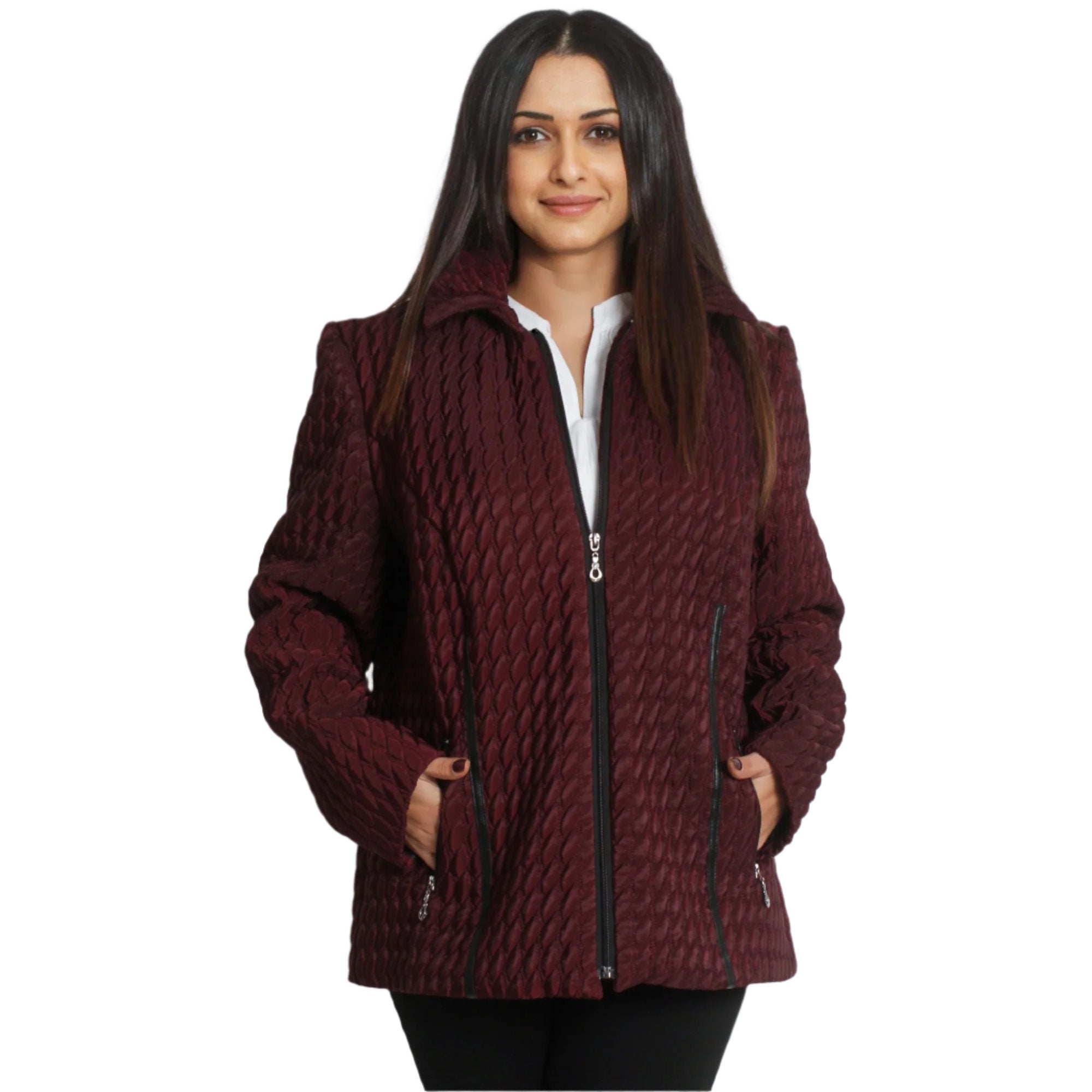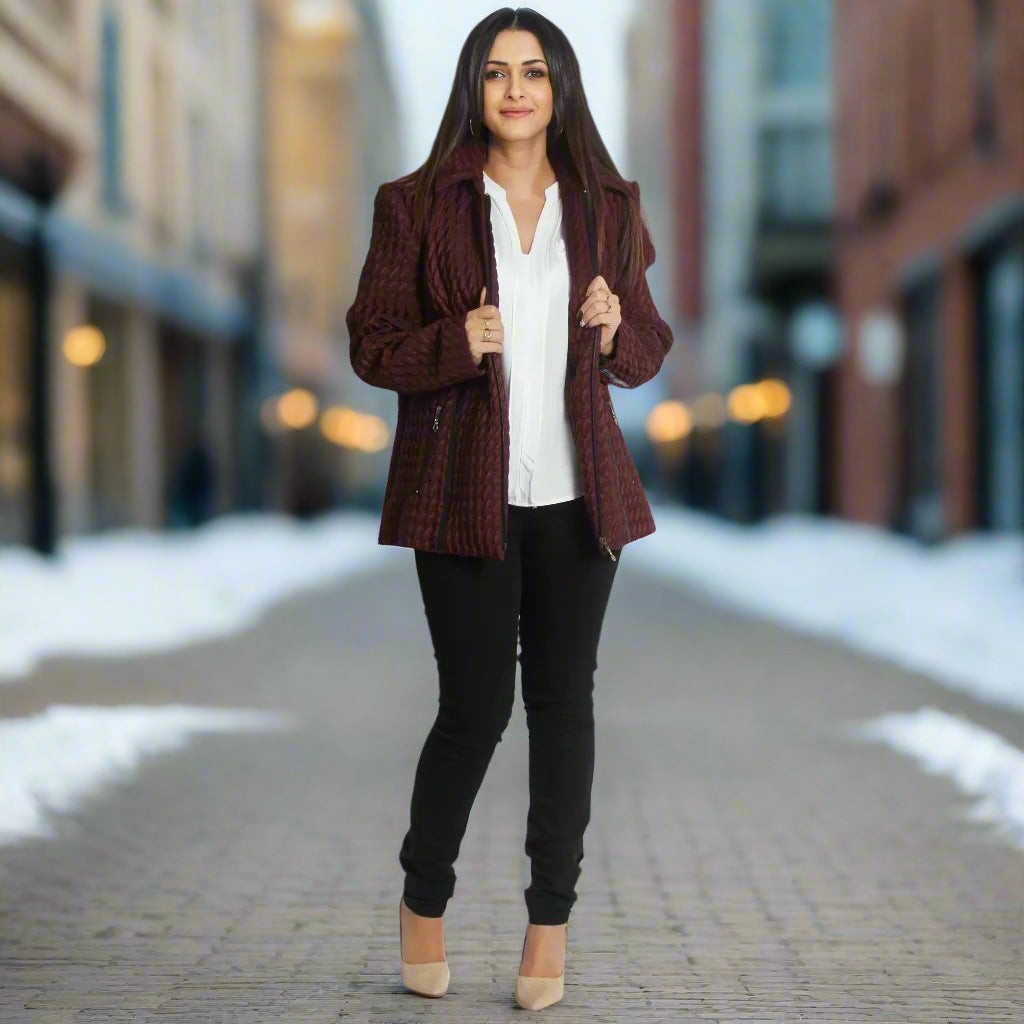 Jachetă maxi elegantă de culoare vișinie, confecționată din 95% viscoză și 5% elastan. Modelul are guler, fermoar și buzunare practice, fiind potrivită pentru sezonul toamnă-iarnă. Oferă confort și stil pentru orice ținută, combinând eleganța și funcționalitatea.