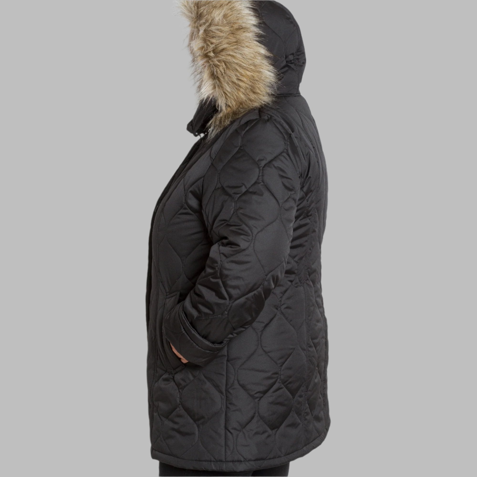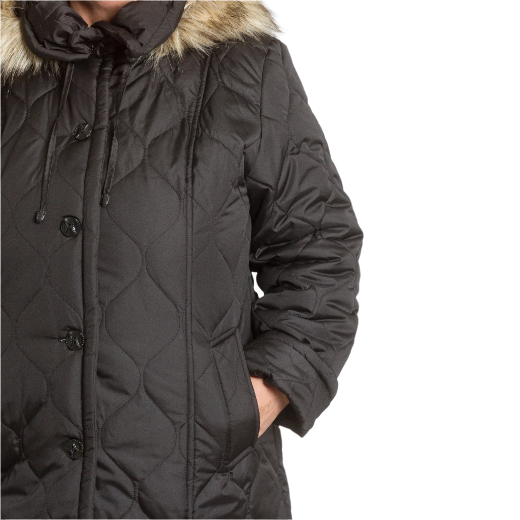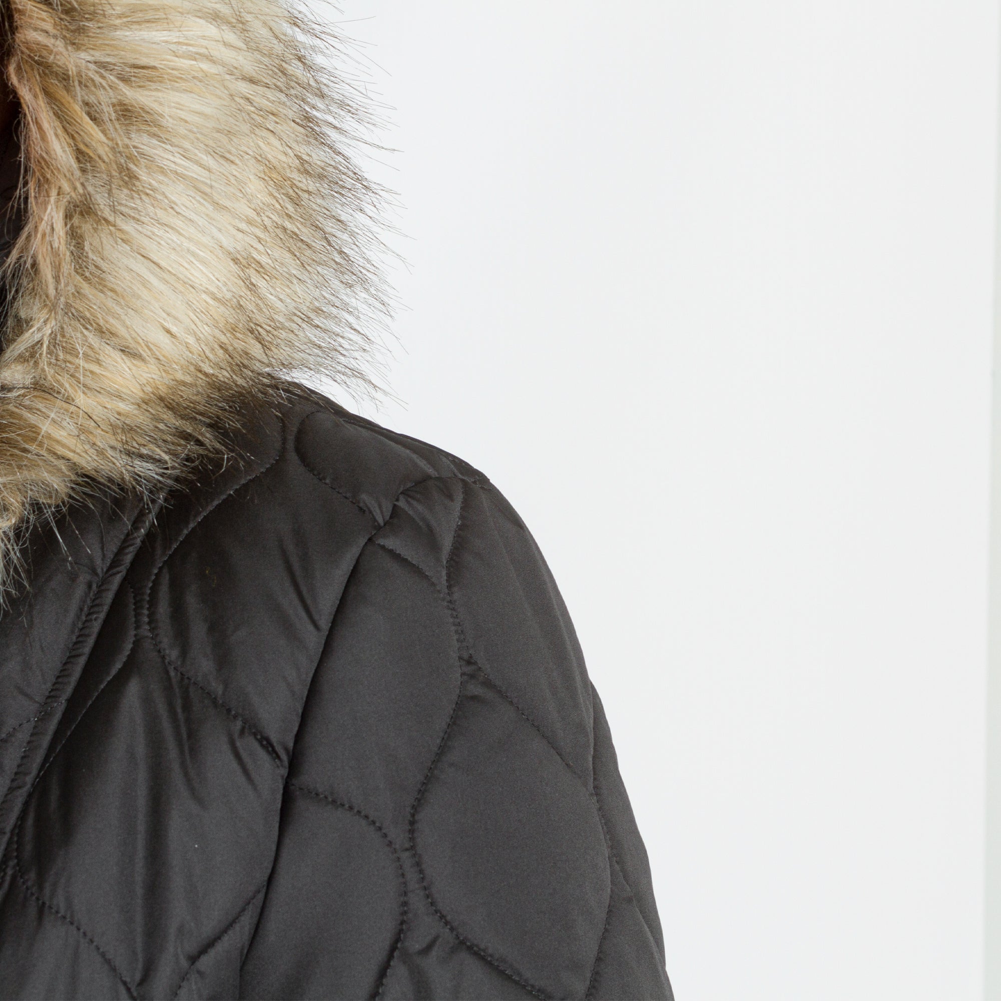 Jachetă maxi matlasată pentru femei cu glugă detașabilă