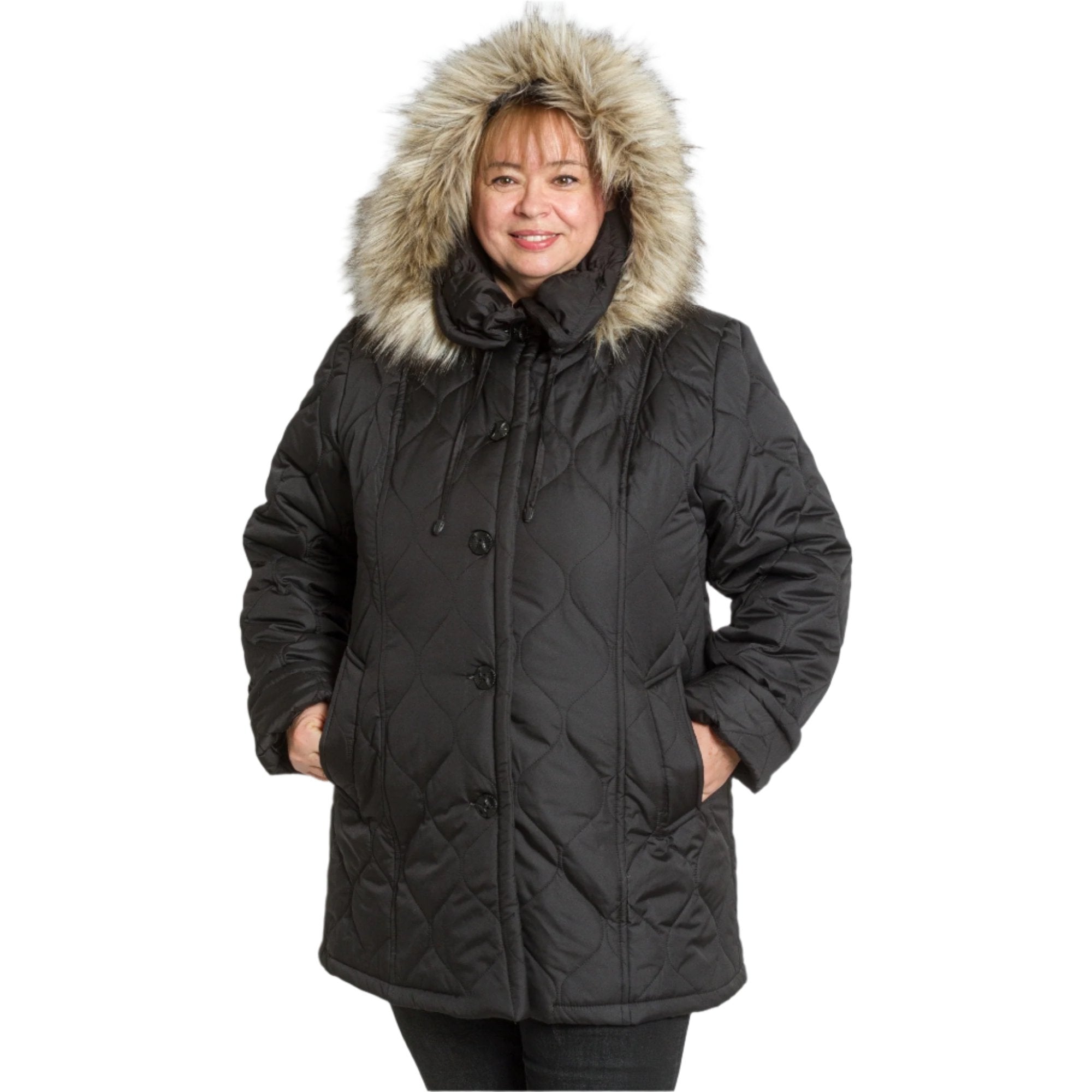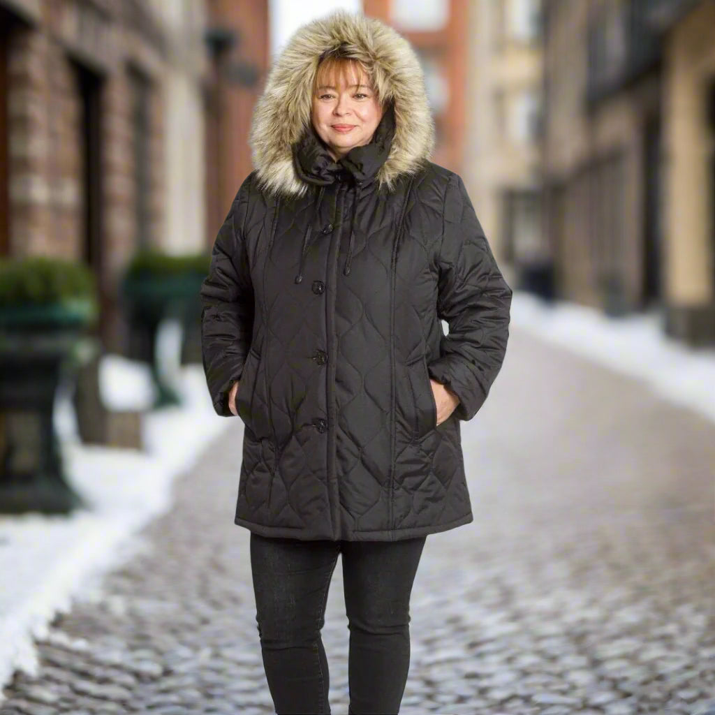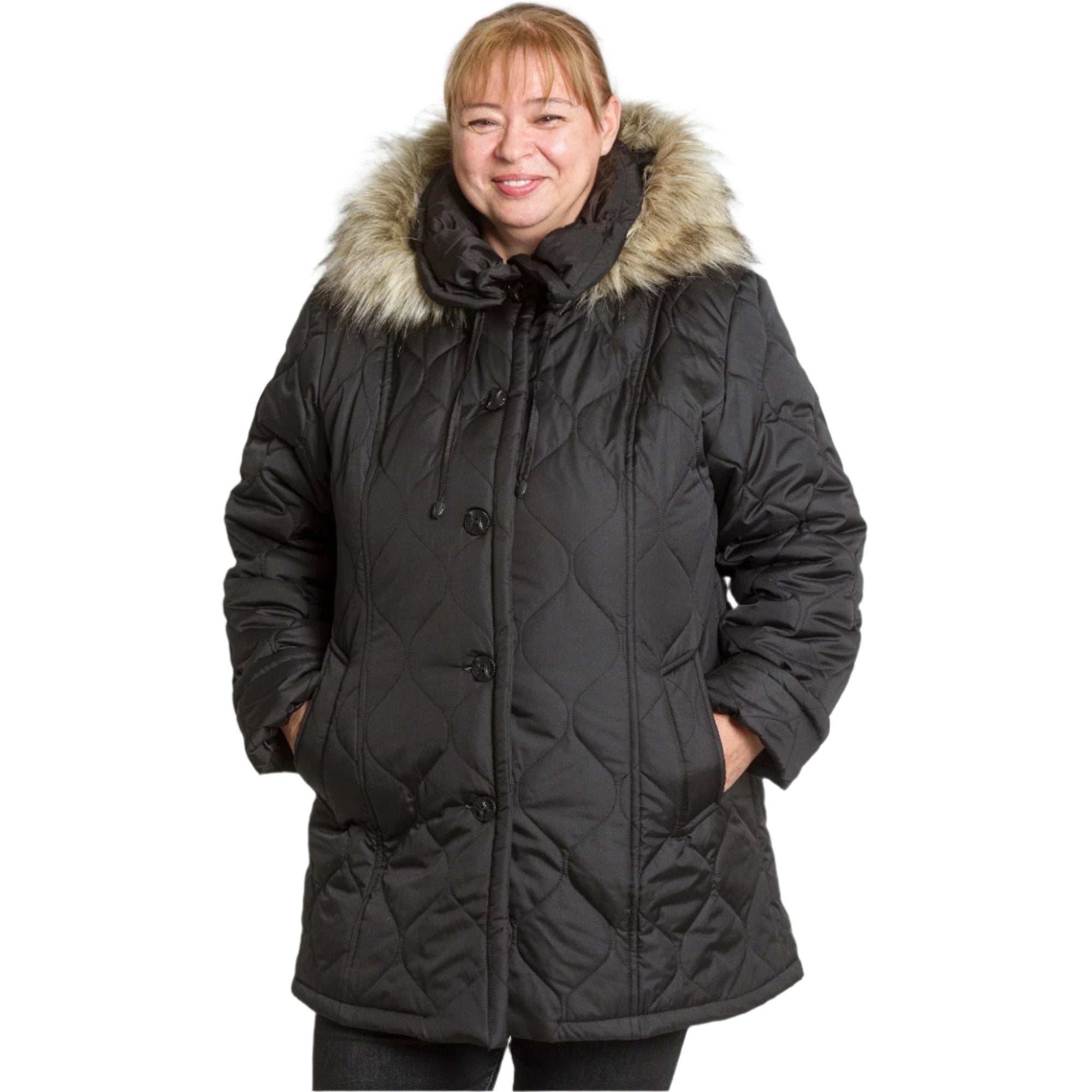 Jachetă maxi matlasată pentru femei cu glugă detașabilă