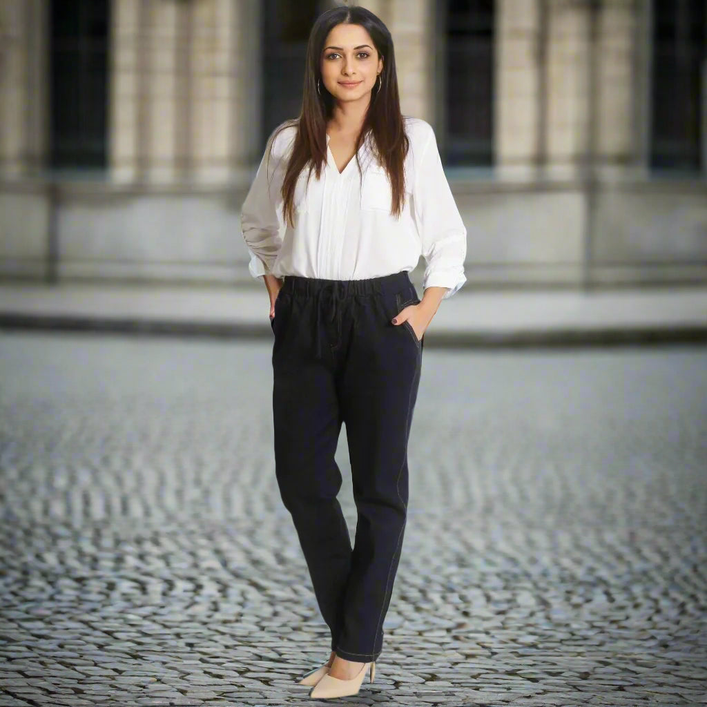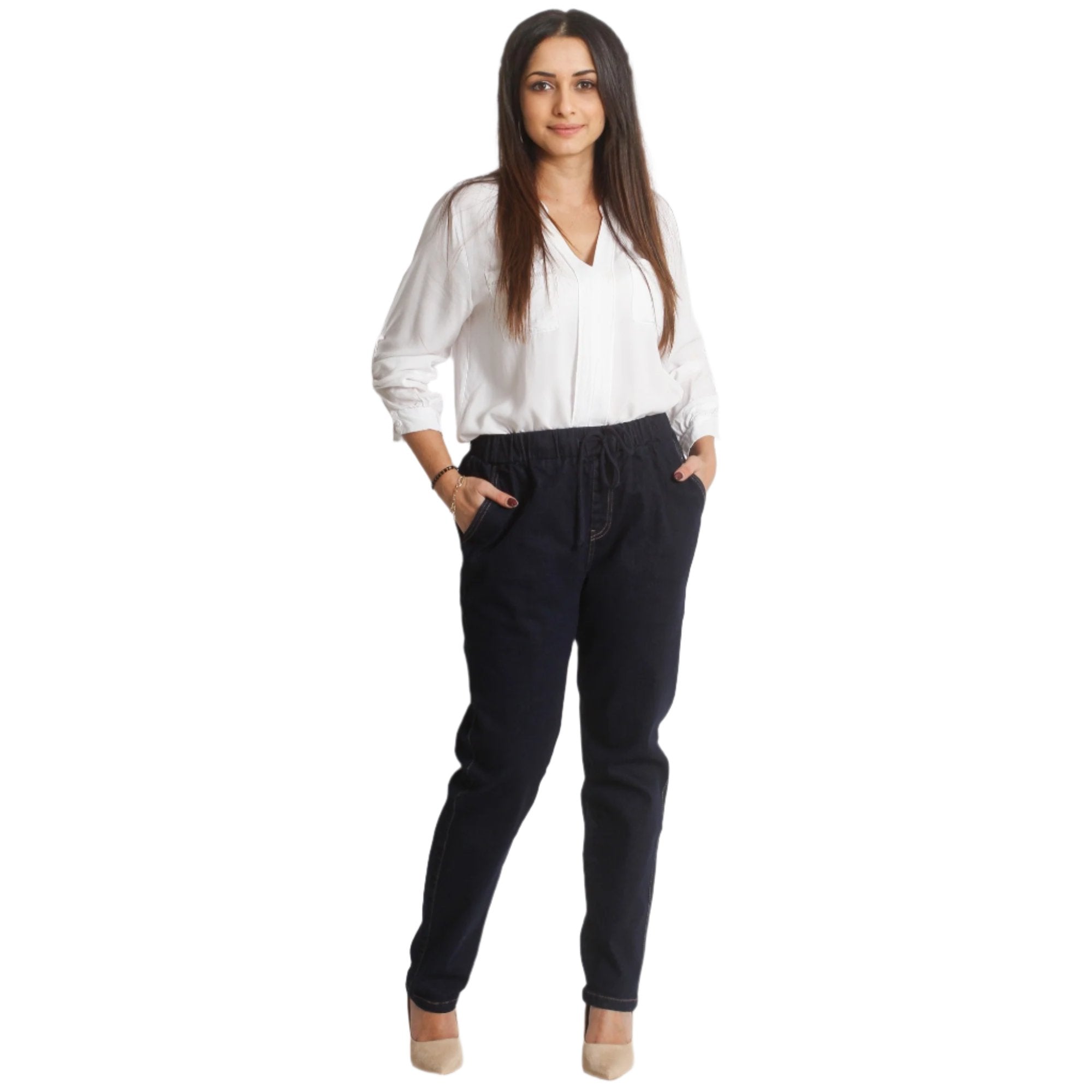 Blugi de damă cu elastic și șireturi, mărimi mari