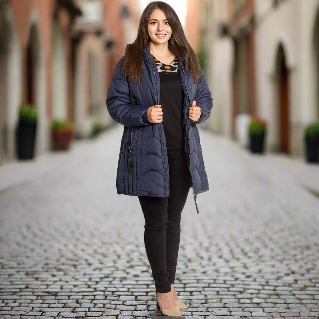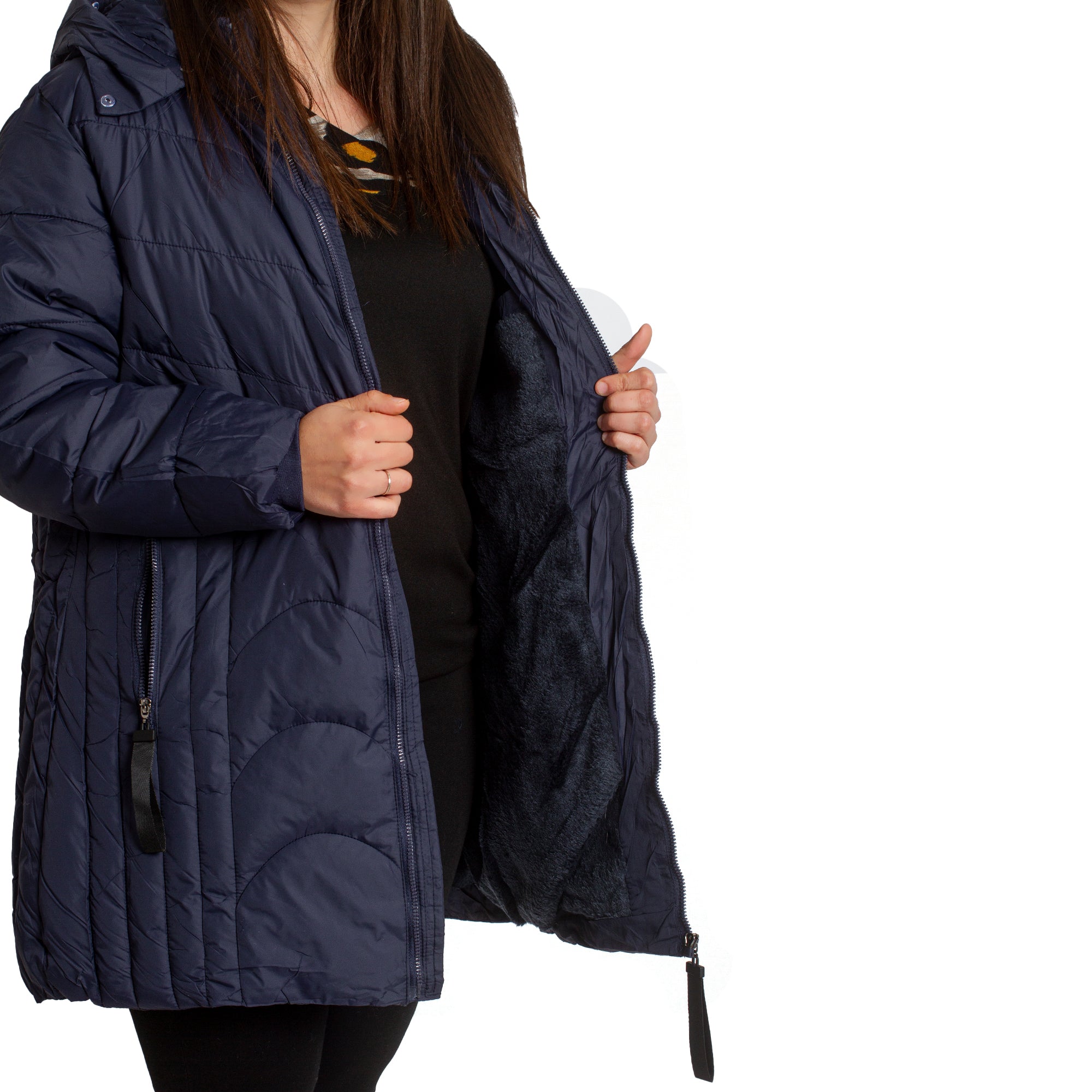 Jachetă elegantă de damă, cu glugă, buzunare și buzunar interior. Fabricată din 100% poliester, modelul este căptușit și are fermoar, fiind o alegere ideală pentru sezonul toamnă-iarnă. Practică și stilată, potrivită atât pentru viața de zi cu zi, cât și pentru ocazii speciale.