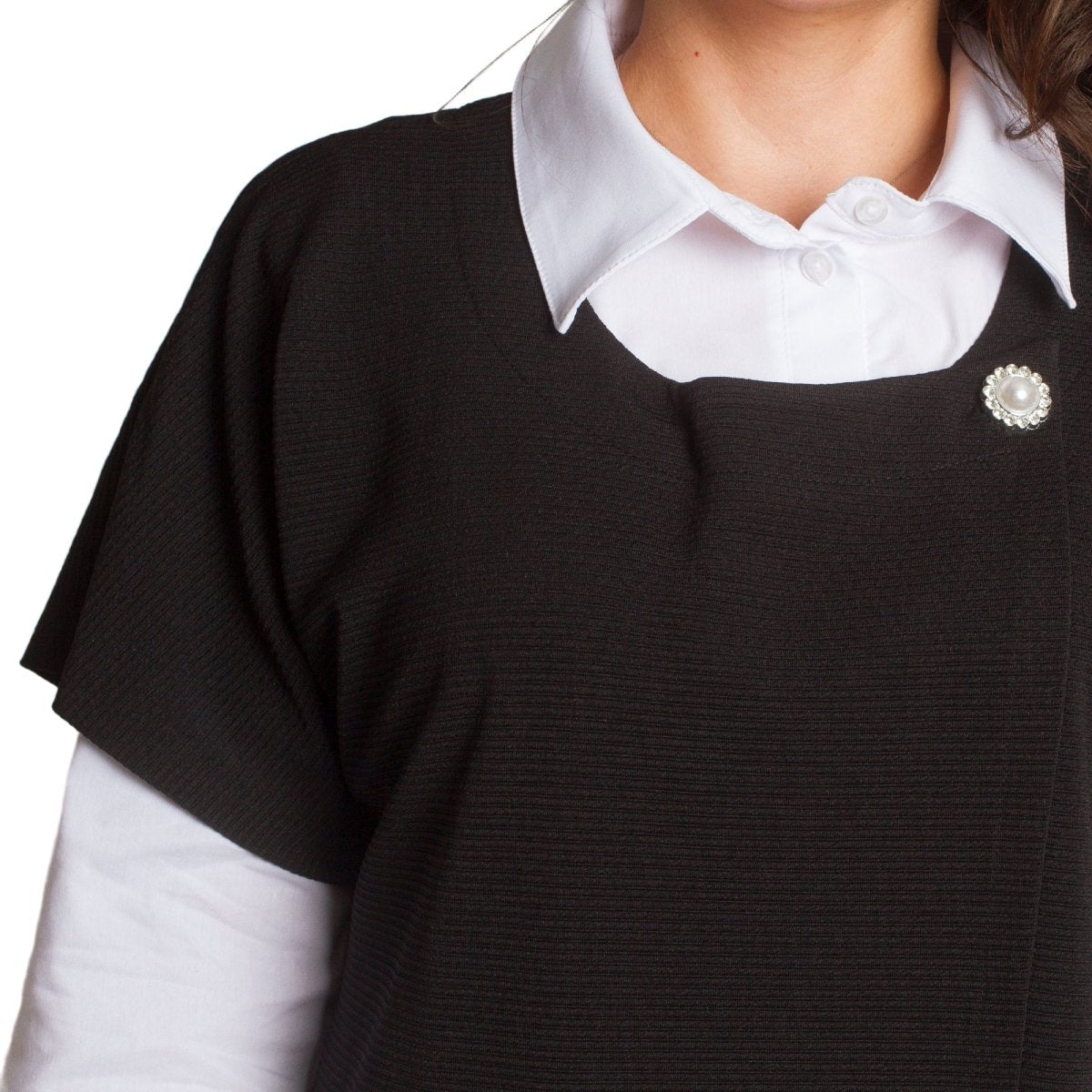 Set maxi format din cămașă și vestă, în mărimi mari, confecționat din 100% poliester. Vesta are un accent elegant - o perlă decorativă. Modelul este lejer și este potrivit atât pentru ocazii formale, cât și pentru viața de zi cu zi. O alegere confortabilă și elegantă pentru garderoba ta.