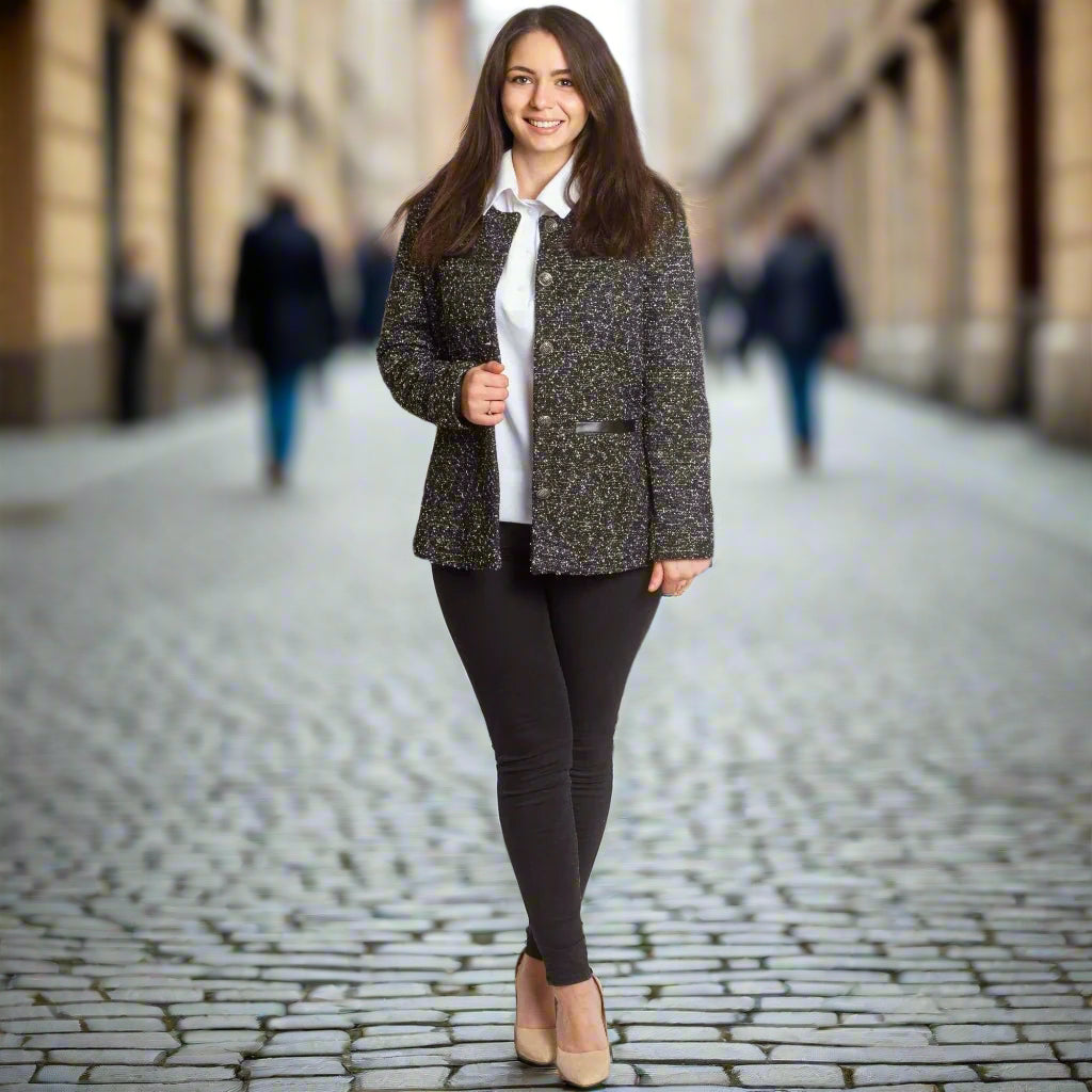 Jachetă elegantă de damă cu nasturi în mărimi maxi