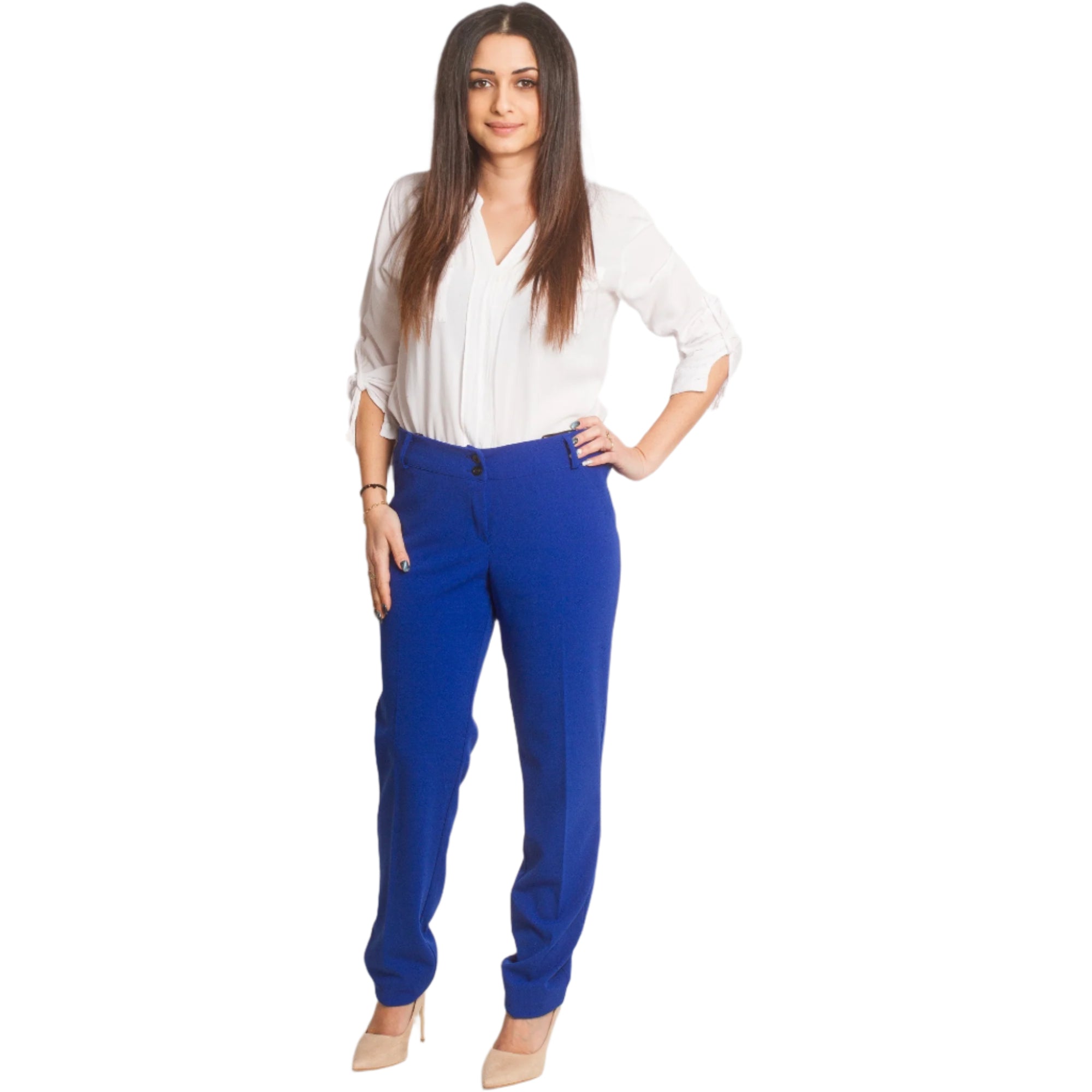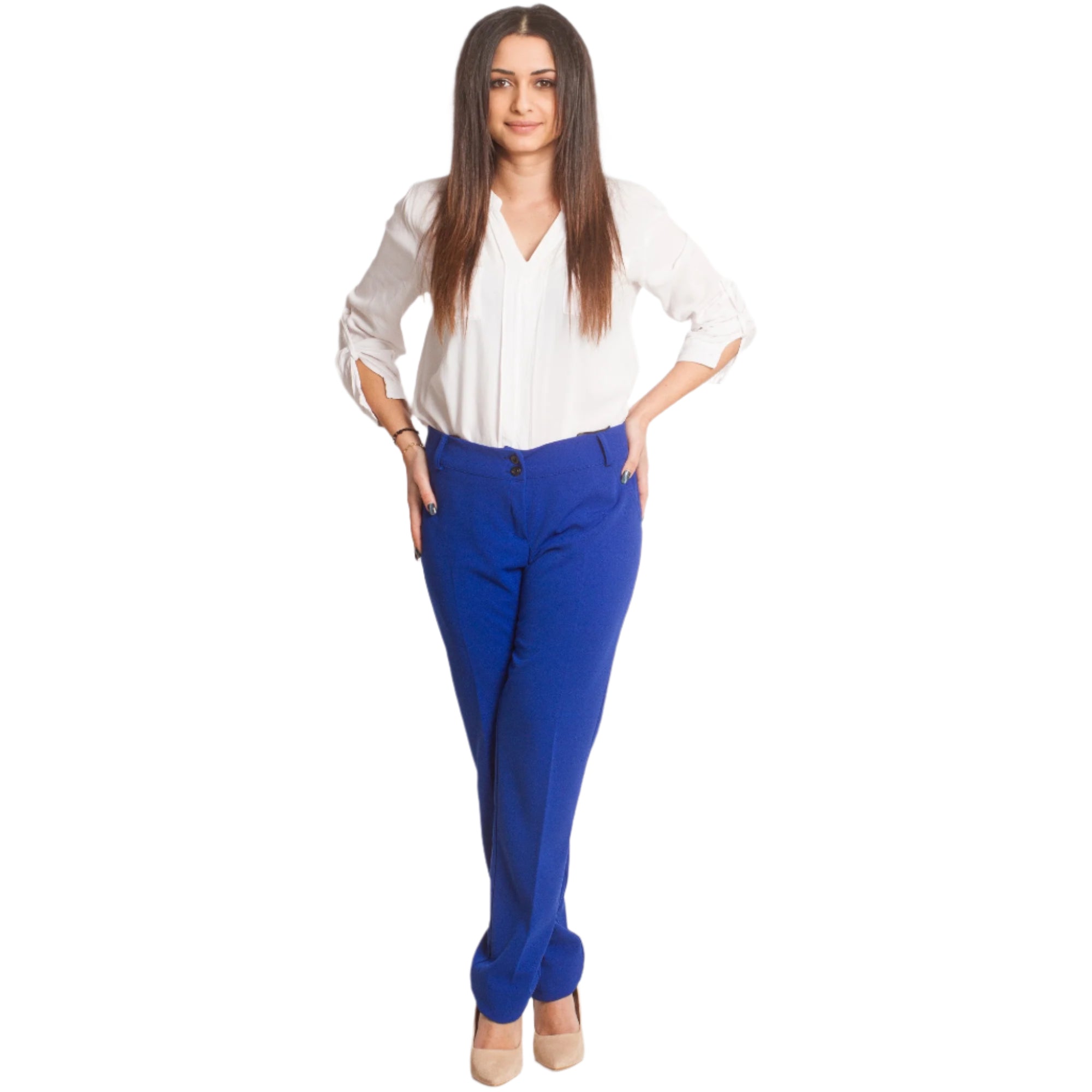 Pantaloni eleganți pentru femei, de culoare albastru regal, cu croială dreaptă
