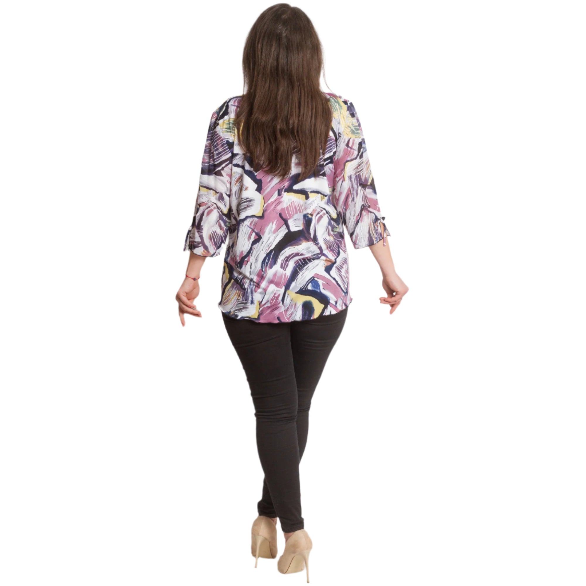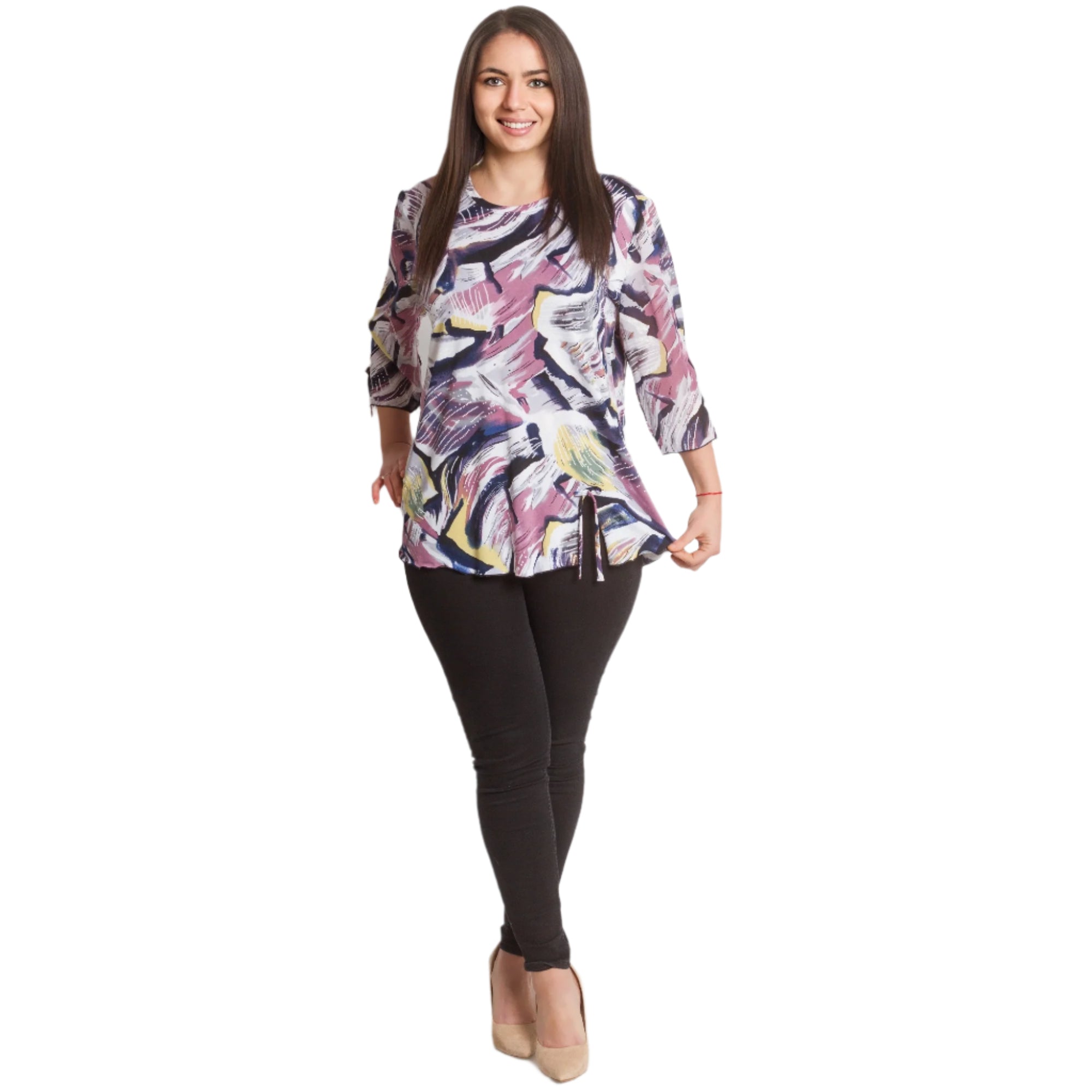 Tunică elegantă cu un model frumos, confecționată din 95% poliester și 5% elastan. Croiul lejer din material plăcut și elastic oferă confort pe tot parcursul zilei. Cu un decolteu rotund și mâneci 3/4, acest model este potrivit atât pentru ocazii speciale, cât și pentru viața de zi cu zi.