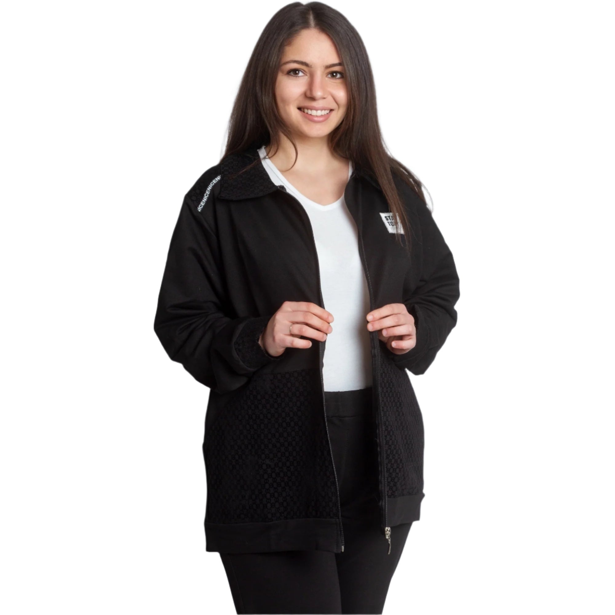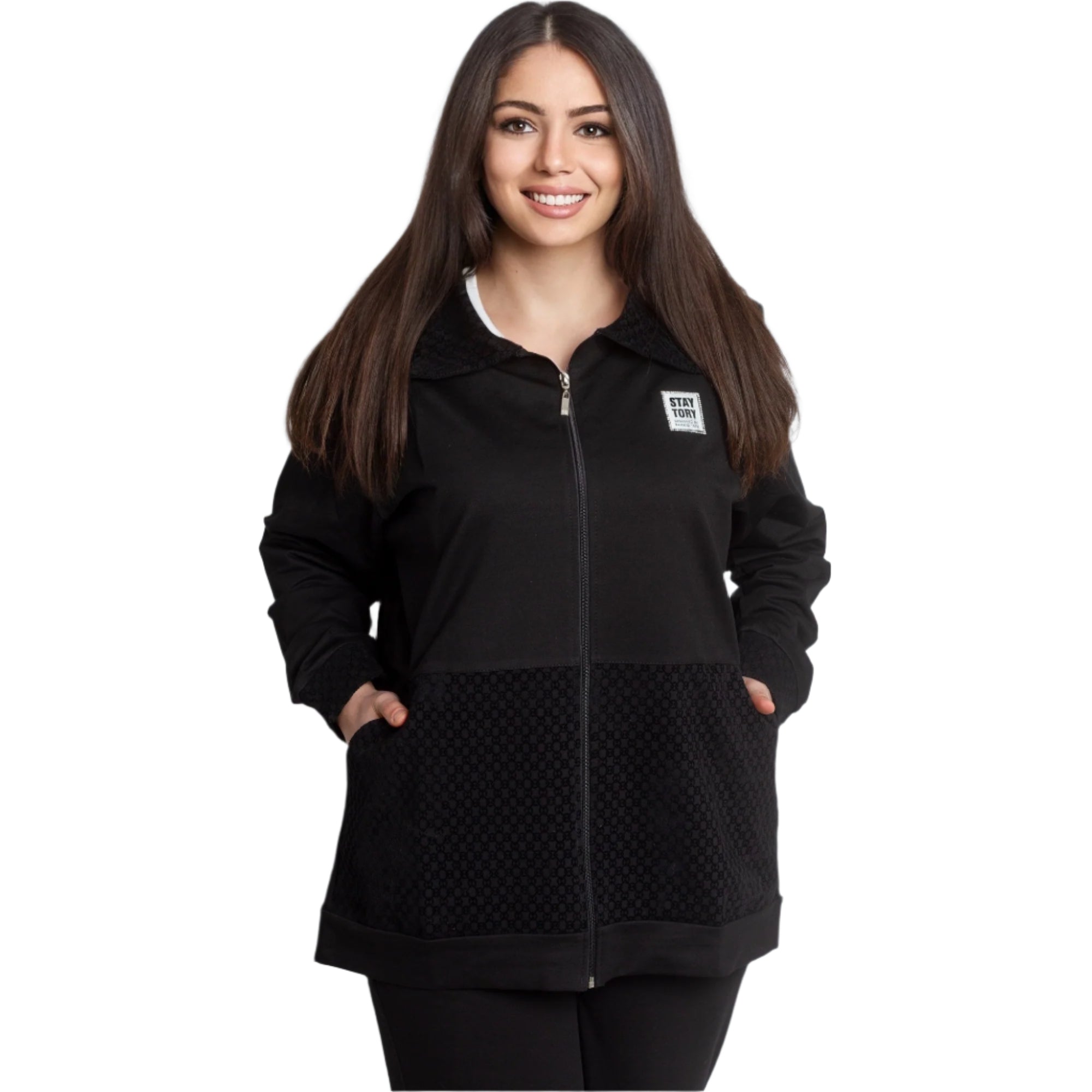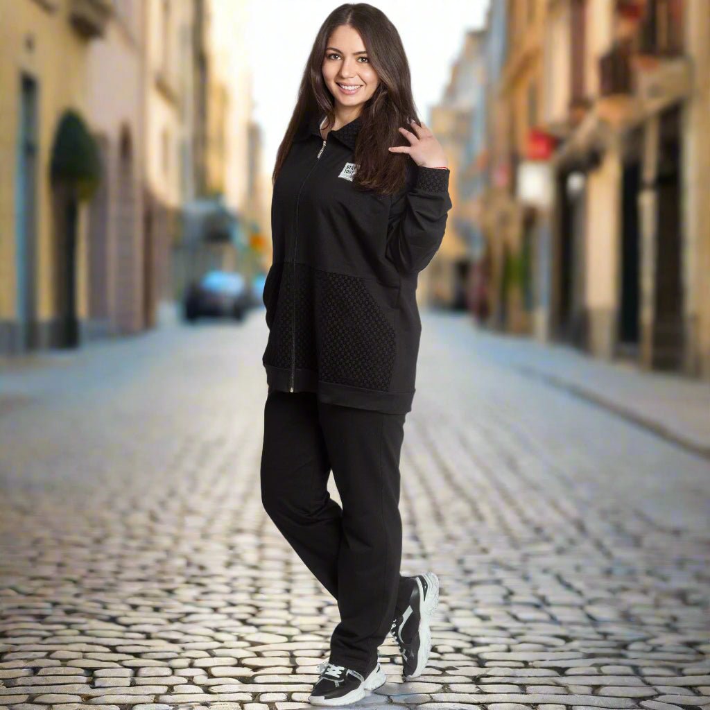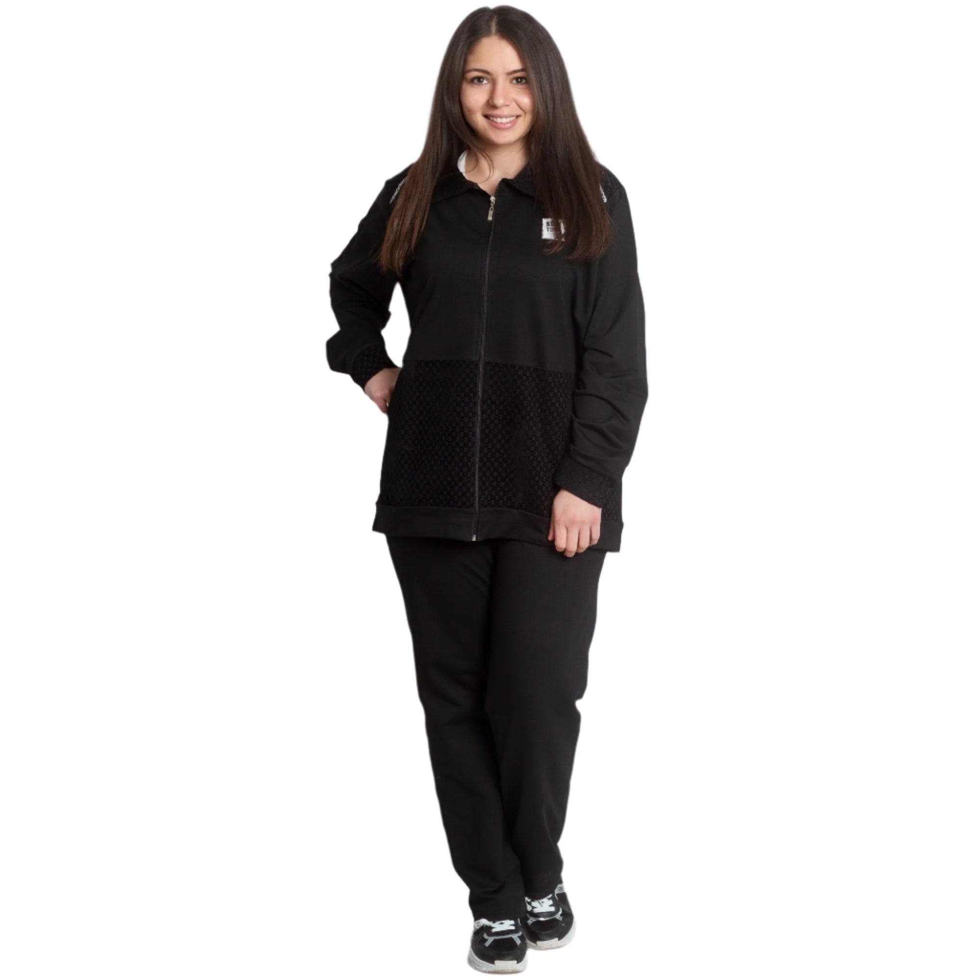 Ținută sport elegantă și confortabilă, creată special pentru doamnele maxi. Fabricată din materiale de înaltă calitate - 70% poliamidă, 25% poliester și 5% elastan, oferind confort și ușurință la purtare. Setul include un top cu un design curat și detalii decorative, precum și un pantalon cu o croială confortabilă. O alegere ideală pentru viața de zi cu zi sau activități sportive.