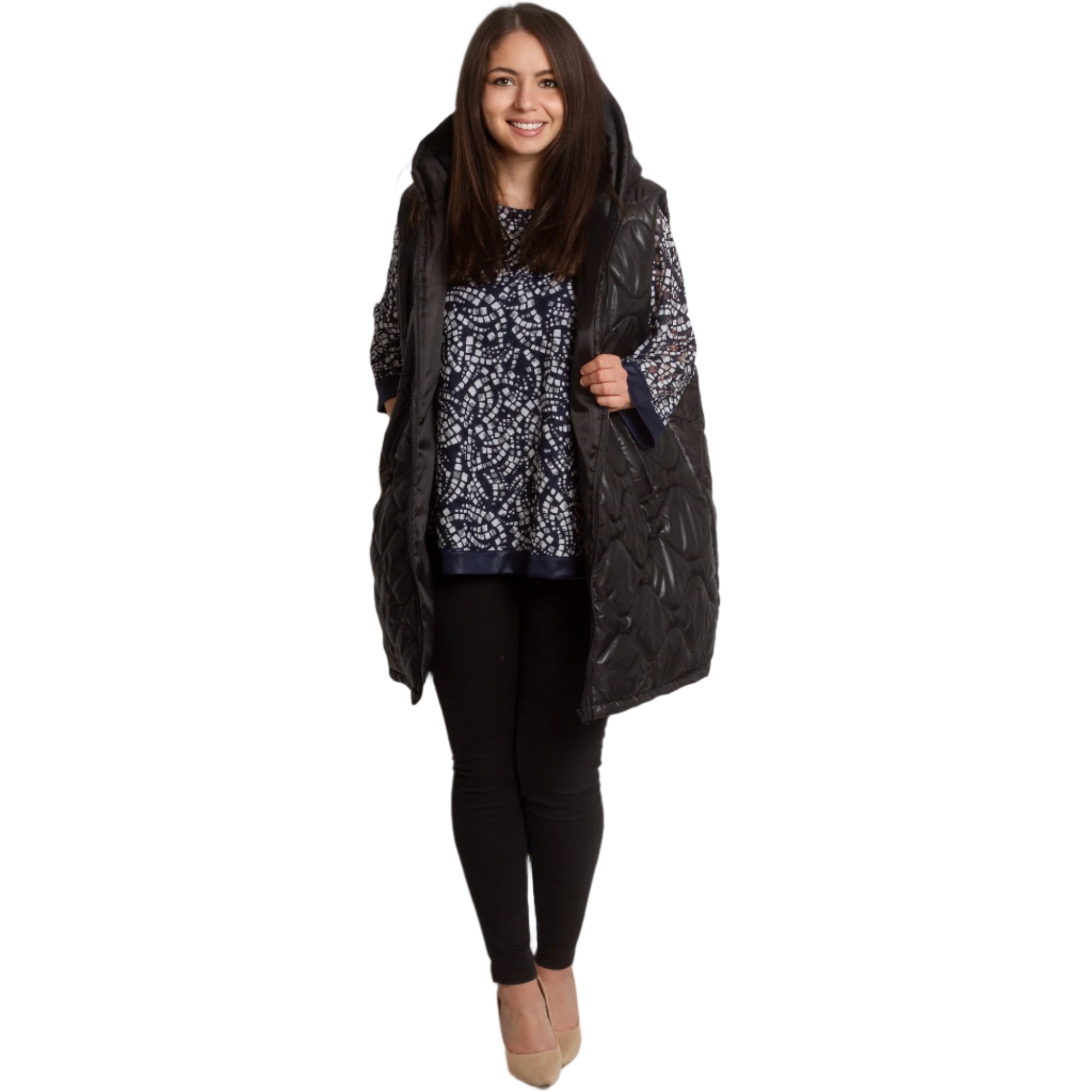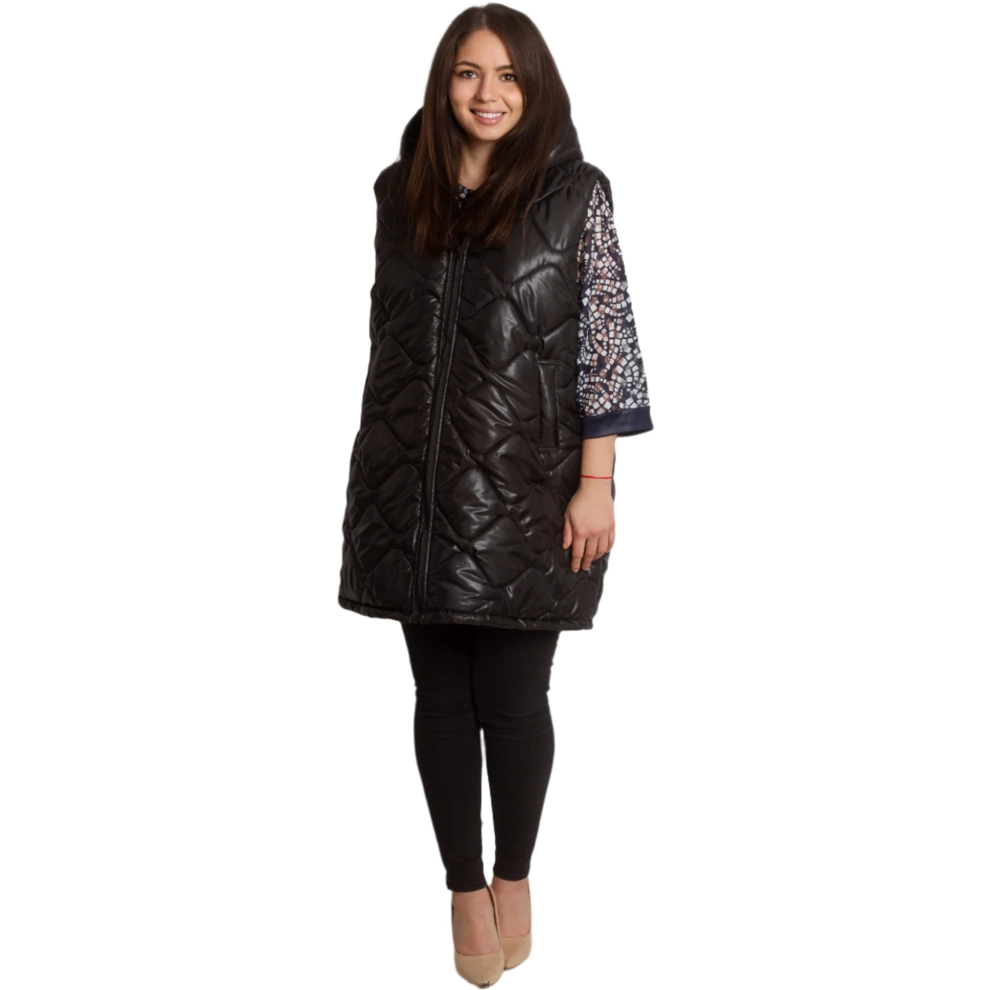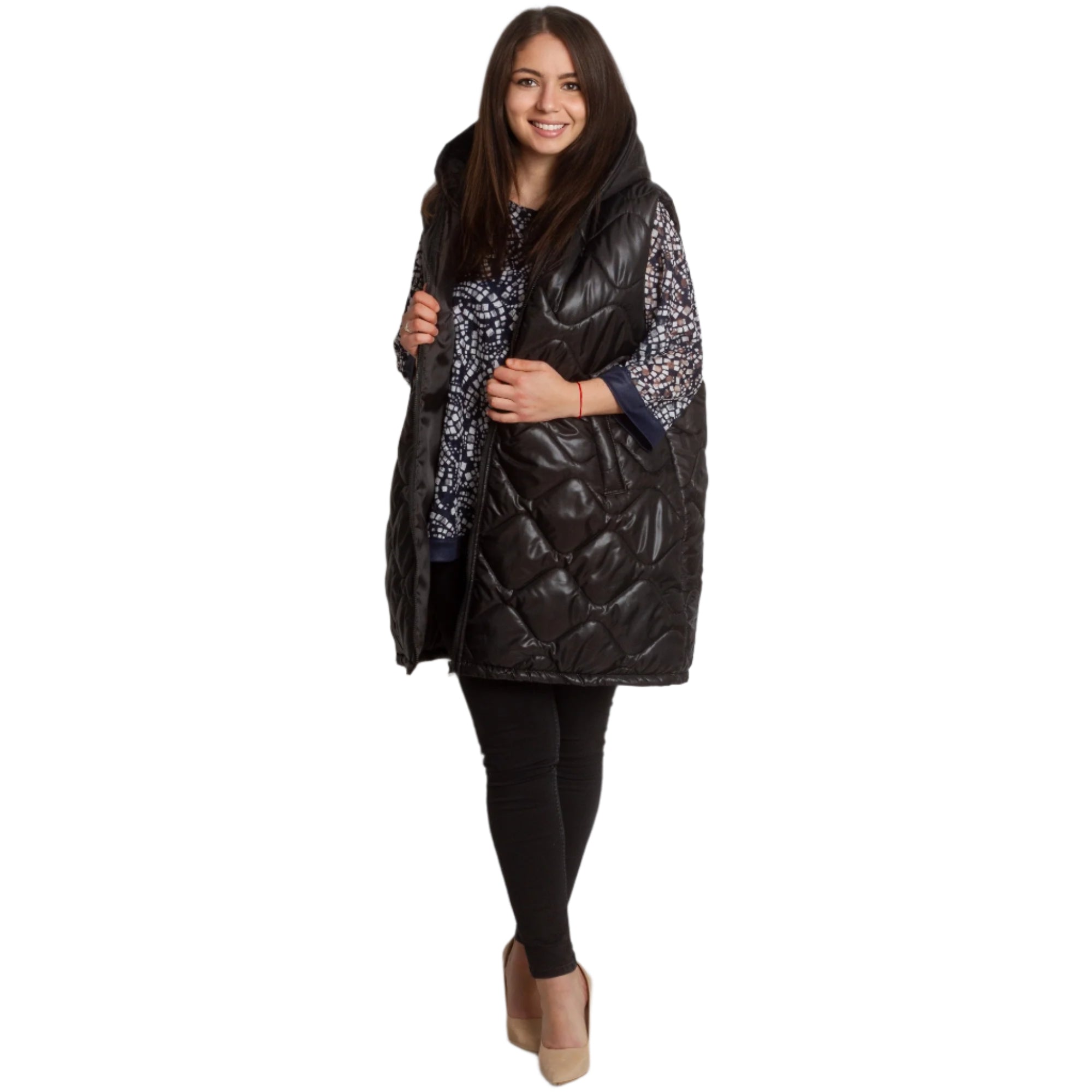 Descoperă o vestă perfectă pentru zi cu zi de la Maxi Market, care combină cu succes confortul și stilul. Acest model este ideal pentru sezoanele toamnă-iarnă și este fabricat în întregime din poliester. Vesta neagră atrage atenția prin modelul geometric și închiderea cu fermoar. Buzunarele practice completează funcționalitatea modelului, făcându-l nu doar elegant, ci și confortabil de purtat. Potrivit pentru fiecare femeie care prețuiește confortul fără a compromite aspectul, produsul nostru reflectă cele mai recente tendințe în moda plus size.