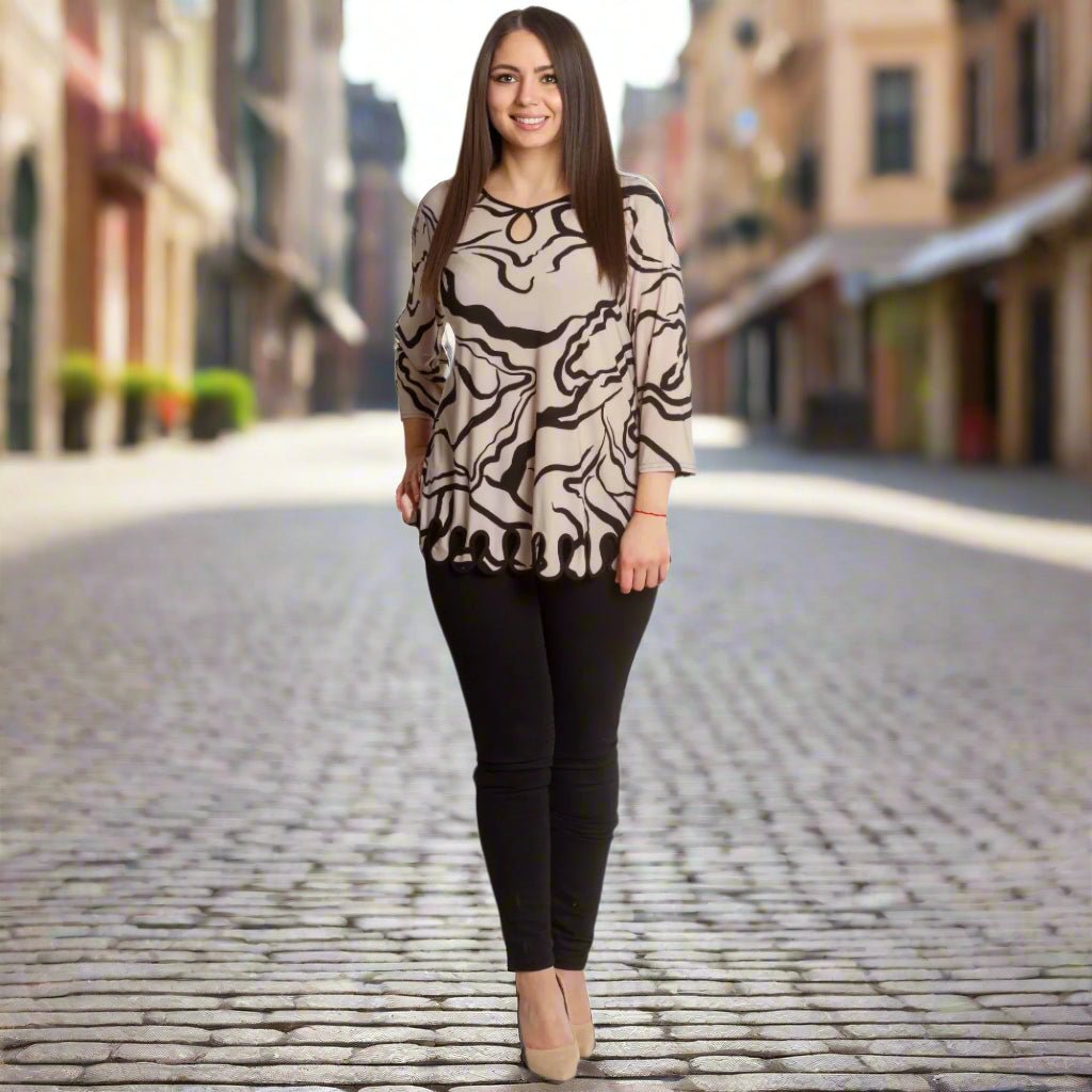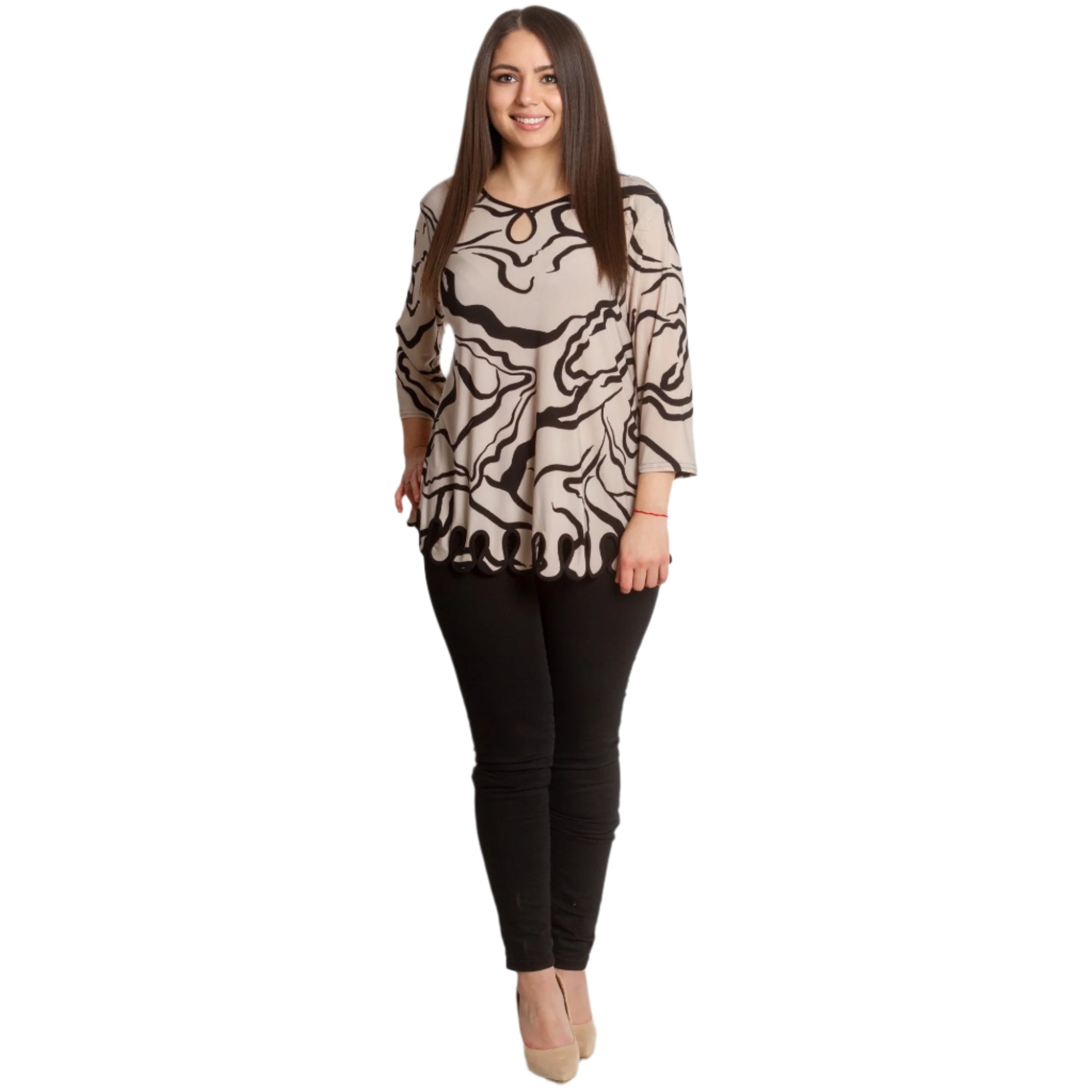 Tunică elegantă bej cu mâneci 3/4, mărimi mari