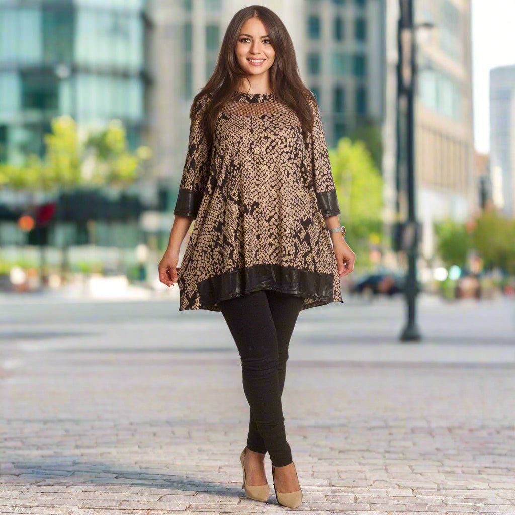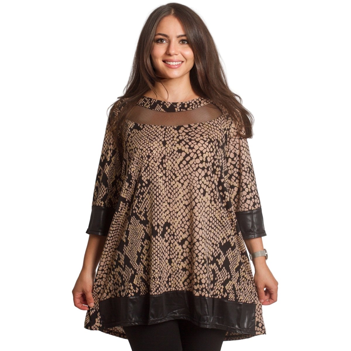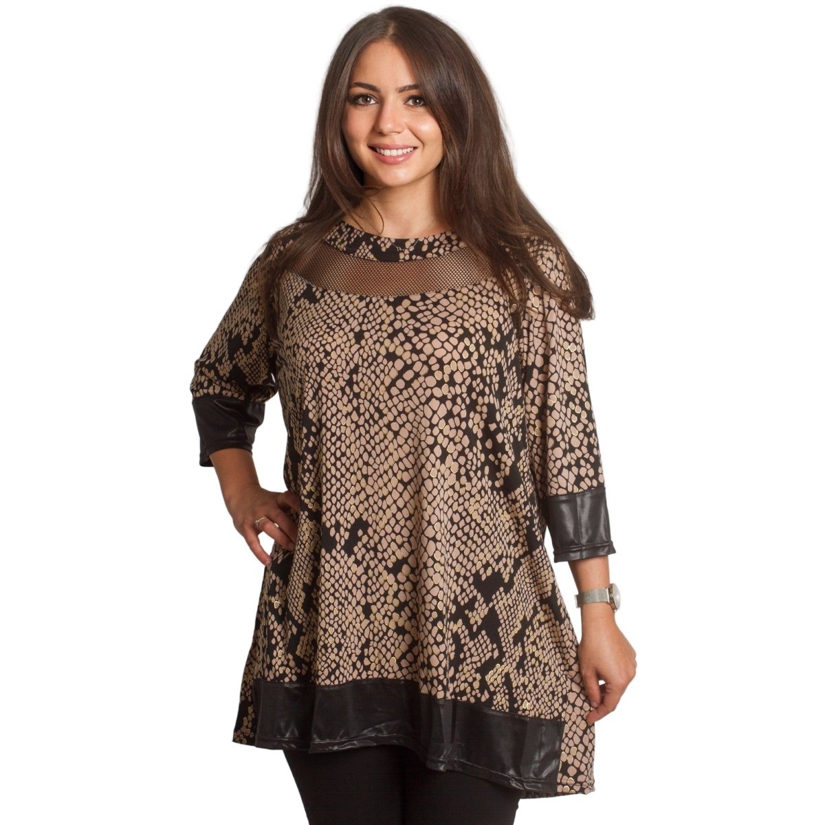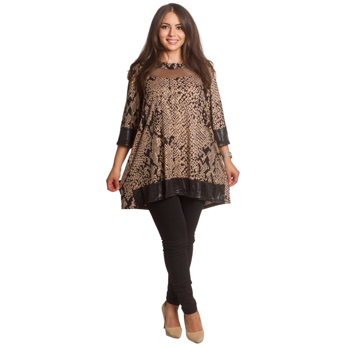 Descoperă stilul și confortul cu această elegantă tunică bej cu mâneci 3/4, concepută pentru ocazii formale. Această tunică este confecționată cu o croială lejeră, ce îi conferă un aspect sofisticat și modern. Perfectă pentru sezonul toamnă-iarnă, fiind confecționată din materiale de înaltă calitate - 5% elastan, 25% poliester și 70% poliamidă, garantând confort și durabilitate.