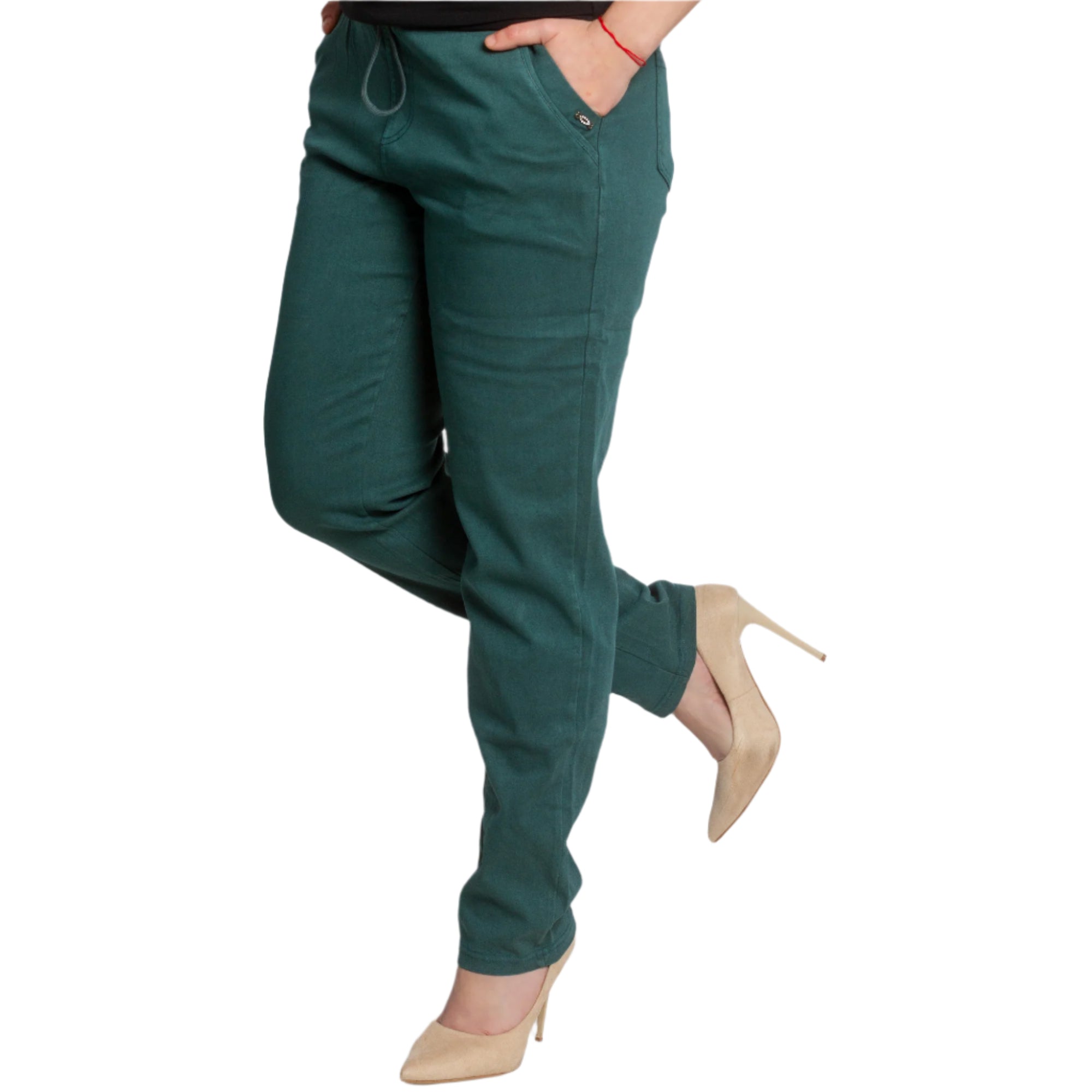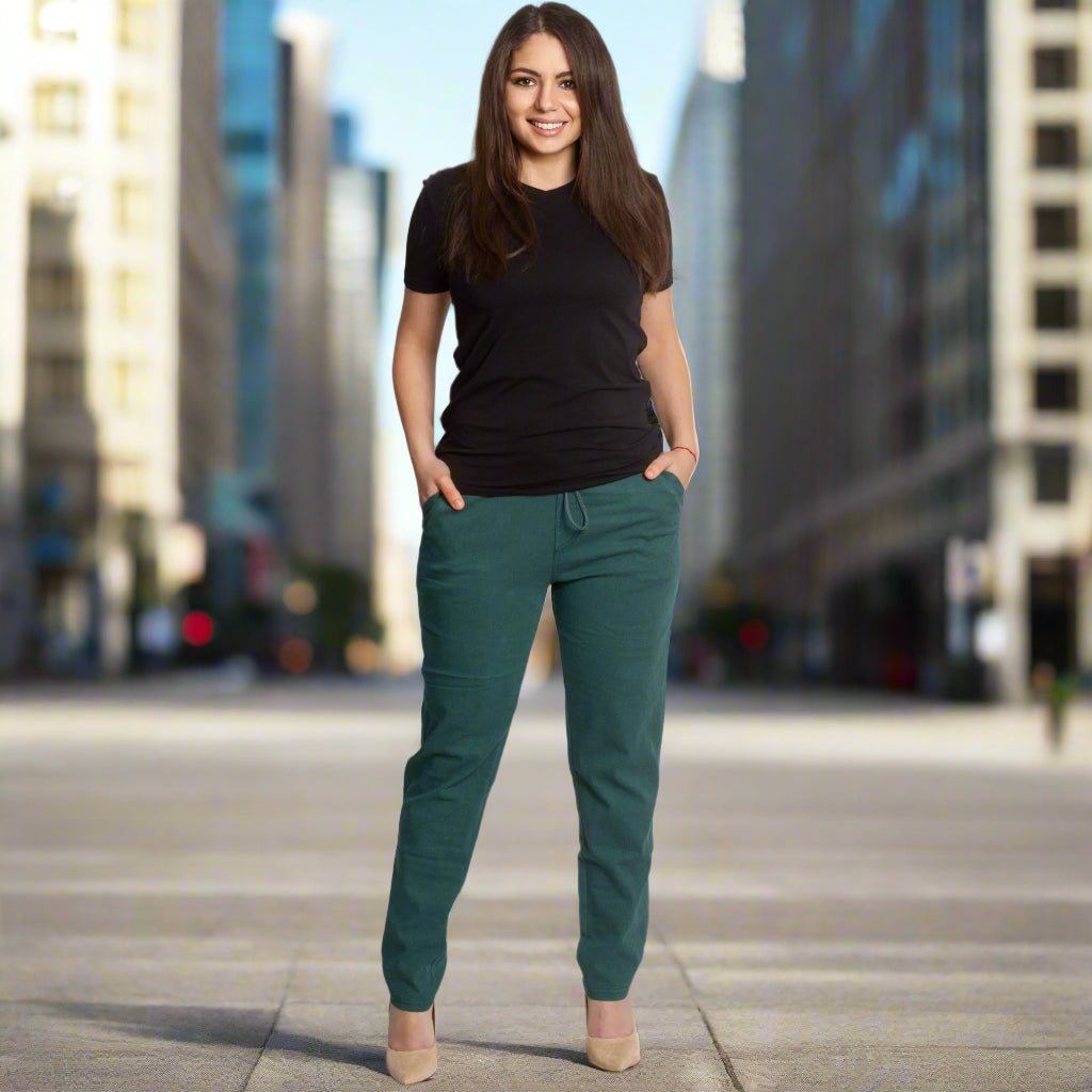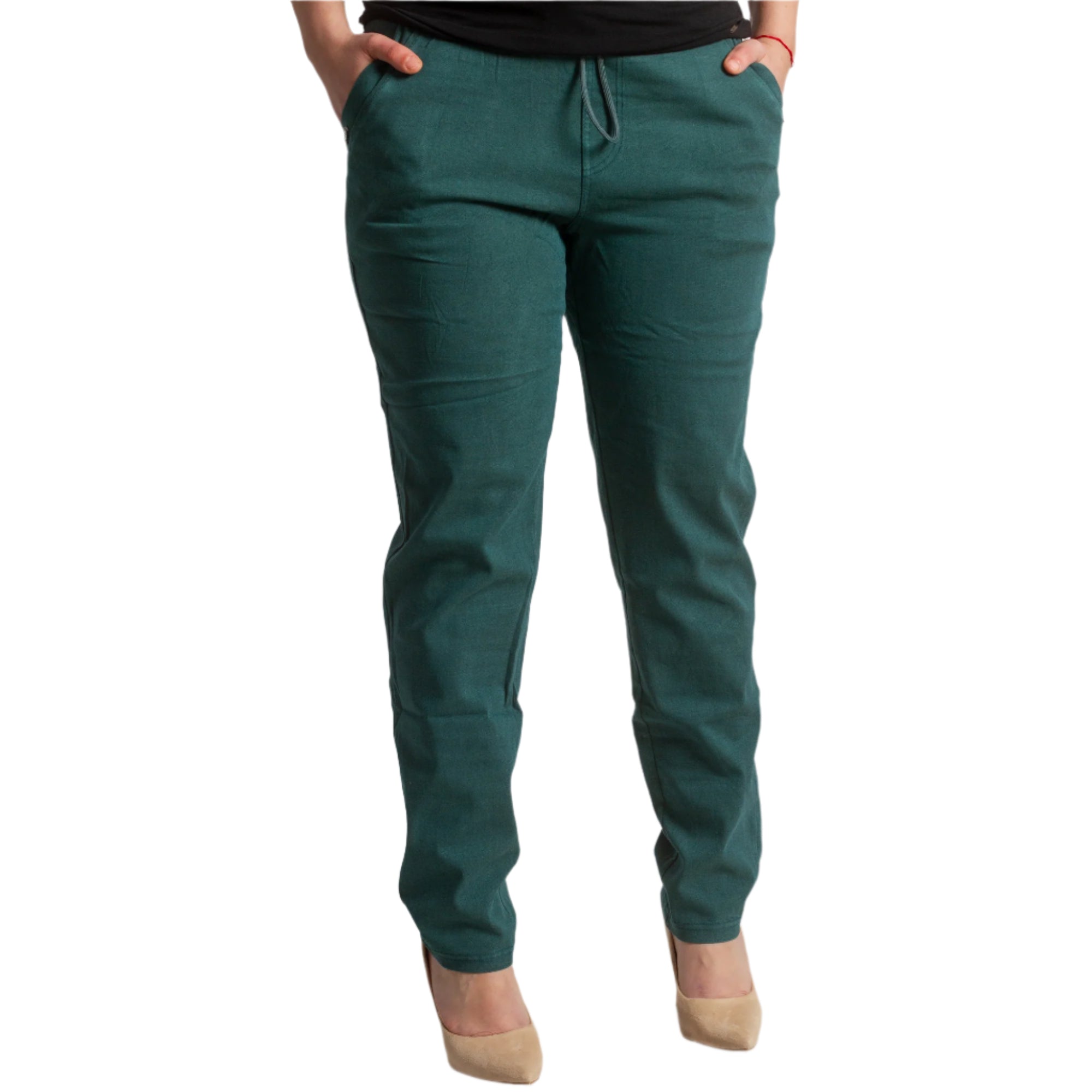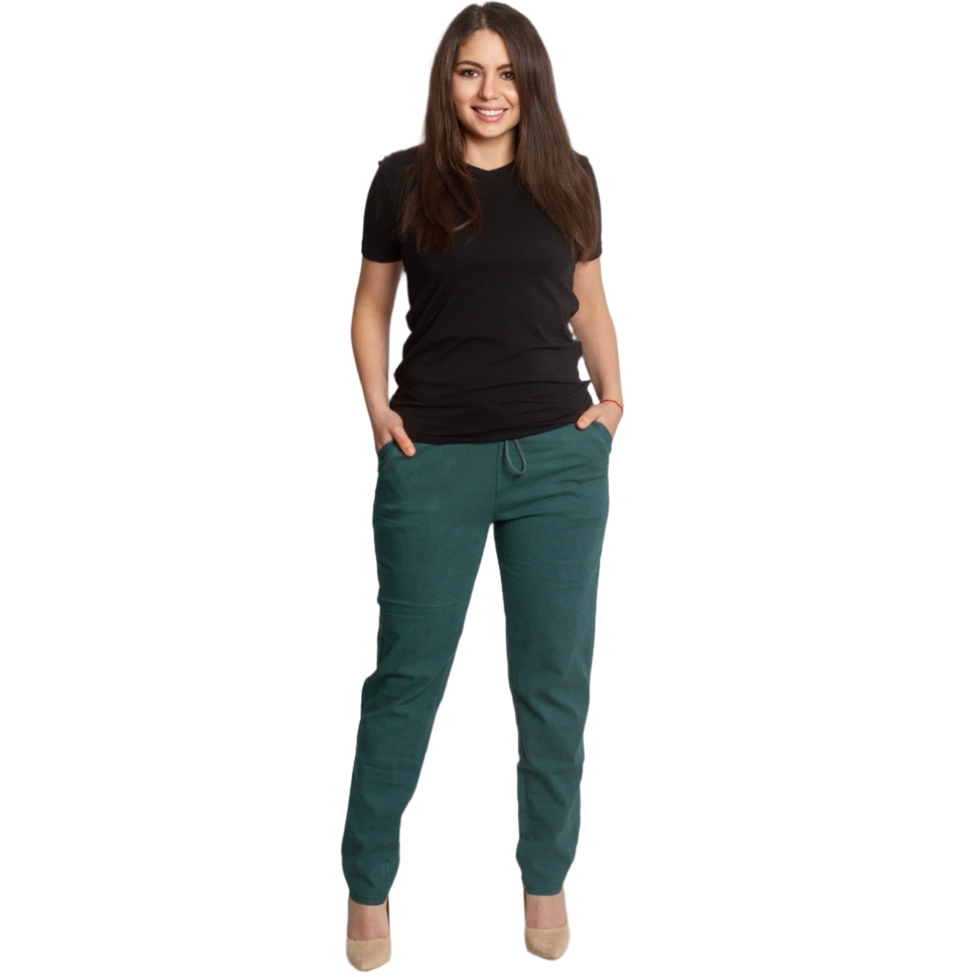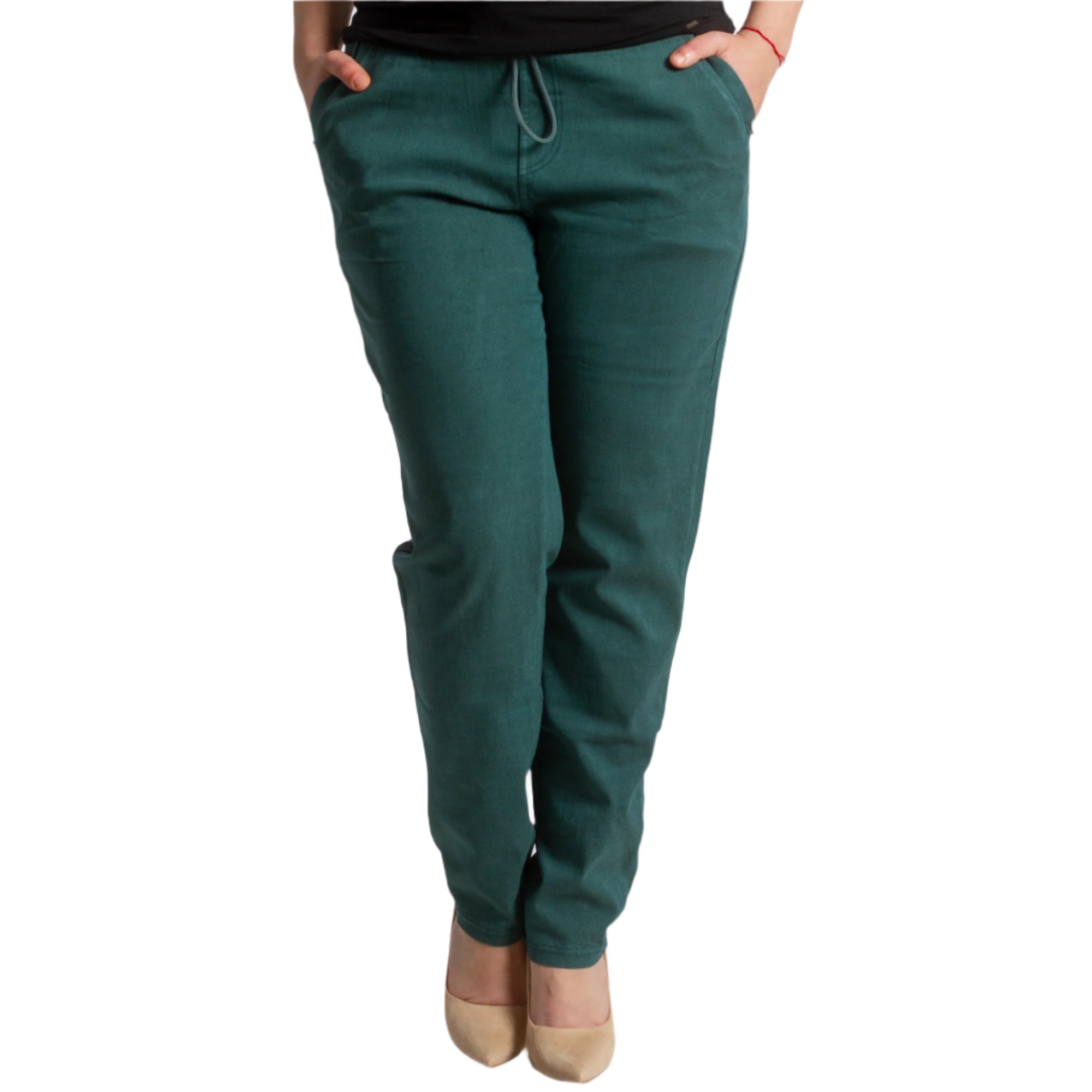 Acești pantaloni de damă eleganți și confortabili, de culoare verde, sunt alegerea perfectă pentru primăvară și vară. Fabricați din 95% viscoză și 5% elastan de înaltă calitate, oferă confort și ușurință la purtare. Croiul lejer permite libertate de mișcare, iar elasticul cu legături în talie contribuie la o potrivire perfectă. Lungimea până la gleznă îi conferă un aspect modern, fiind potriviți atât pentru viața de zi cu zi, cât și pentru ocazii mai informale.
