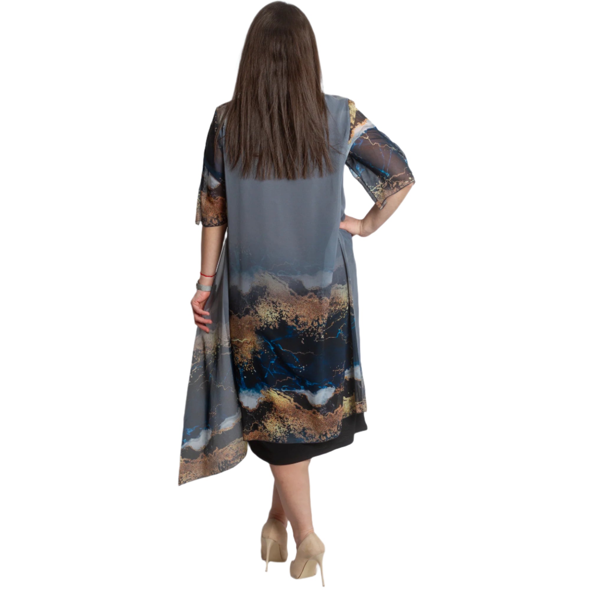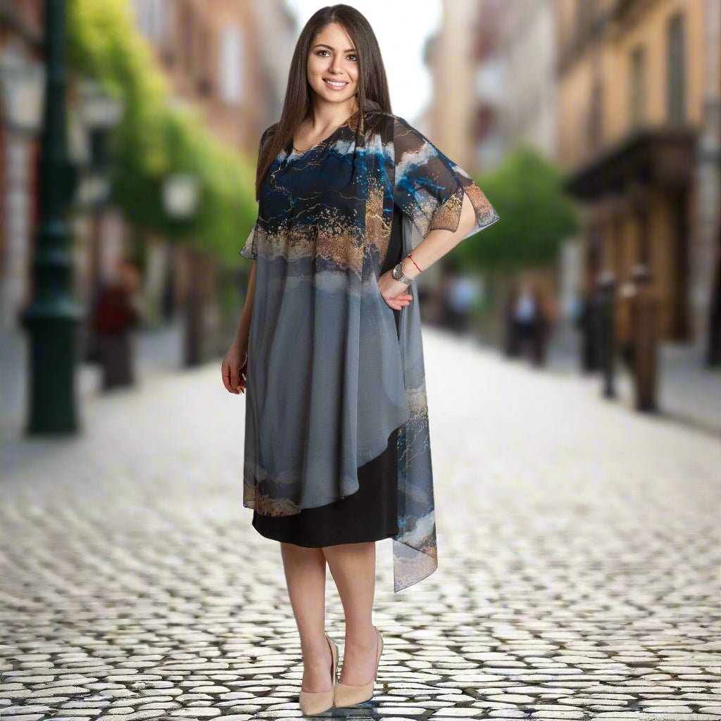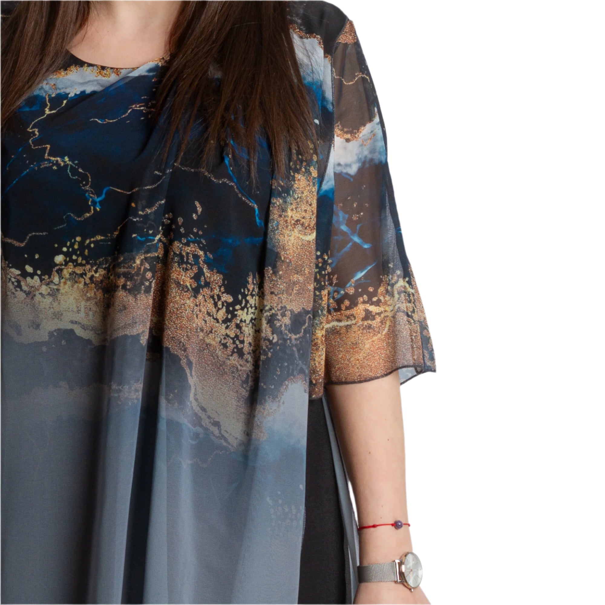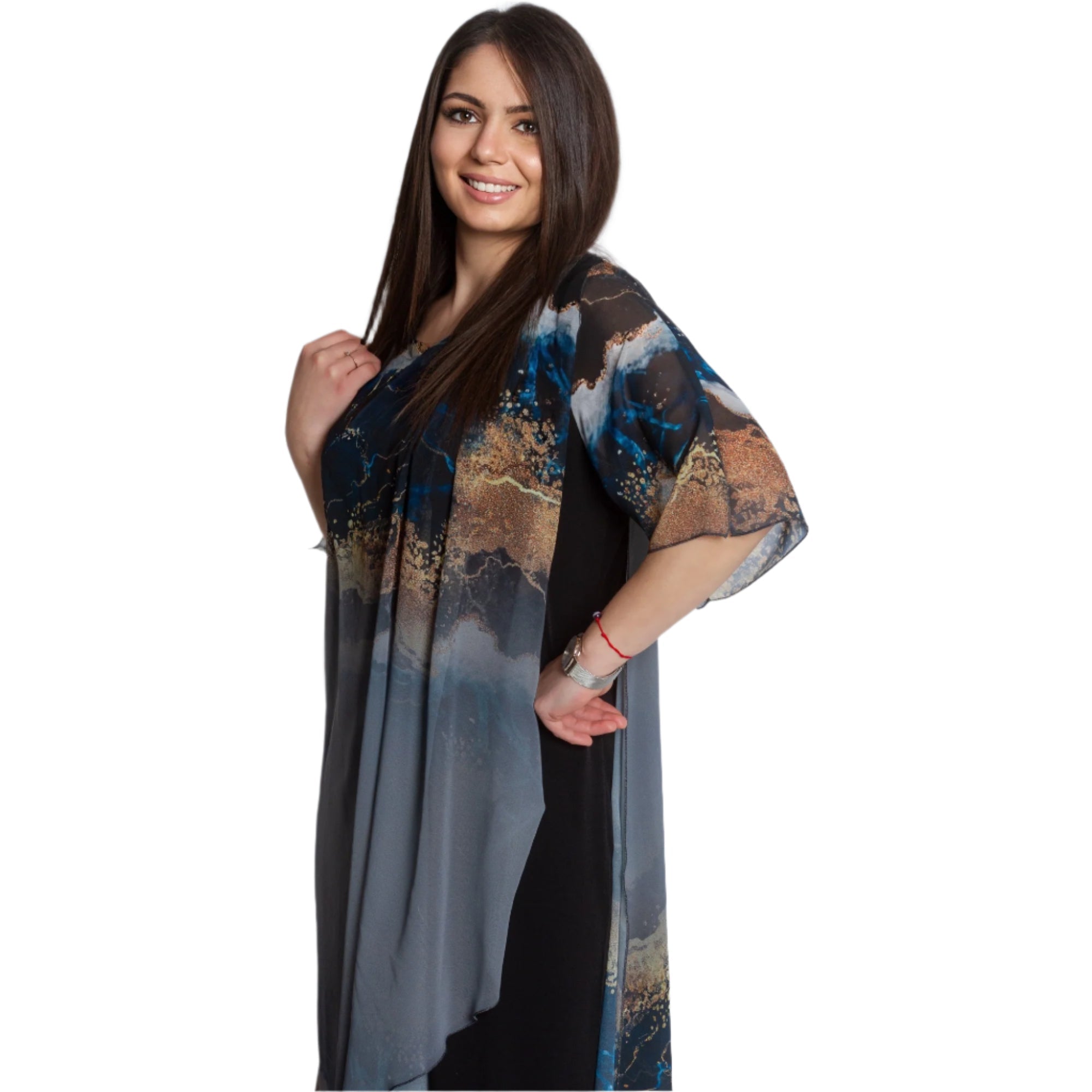 Această rochie maxi formală este concepută pentru ocazii speciale și adaugă eleganță și stil sofisticat. Fabricată din 100% poliester, oferă confort și ușurință la purtare. Designul include șifon asimetric de la umeri, care creează aerisire și lejeritate, iar frumosul imprimeu multicolor adaugă expresivitate. Mânecile scurte cu o siluetă evazată fac din acest model ideal pentru sezonul primăvară-vară. O alegere perfectă pentru ocazii formale, cocktailuri și evenimente speciale.