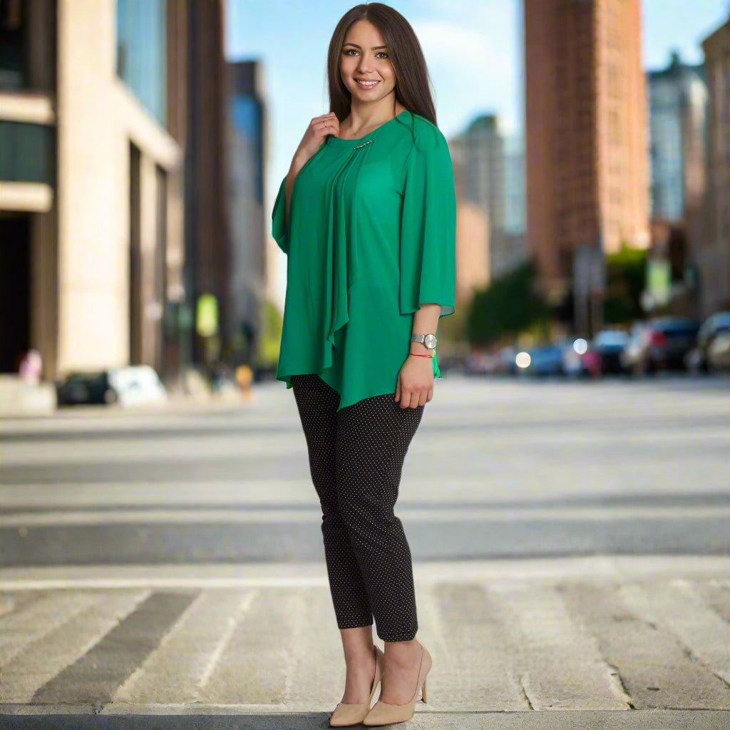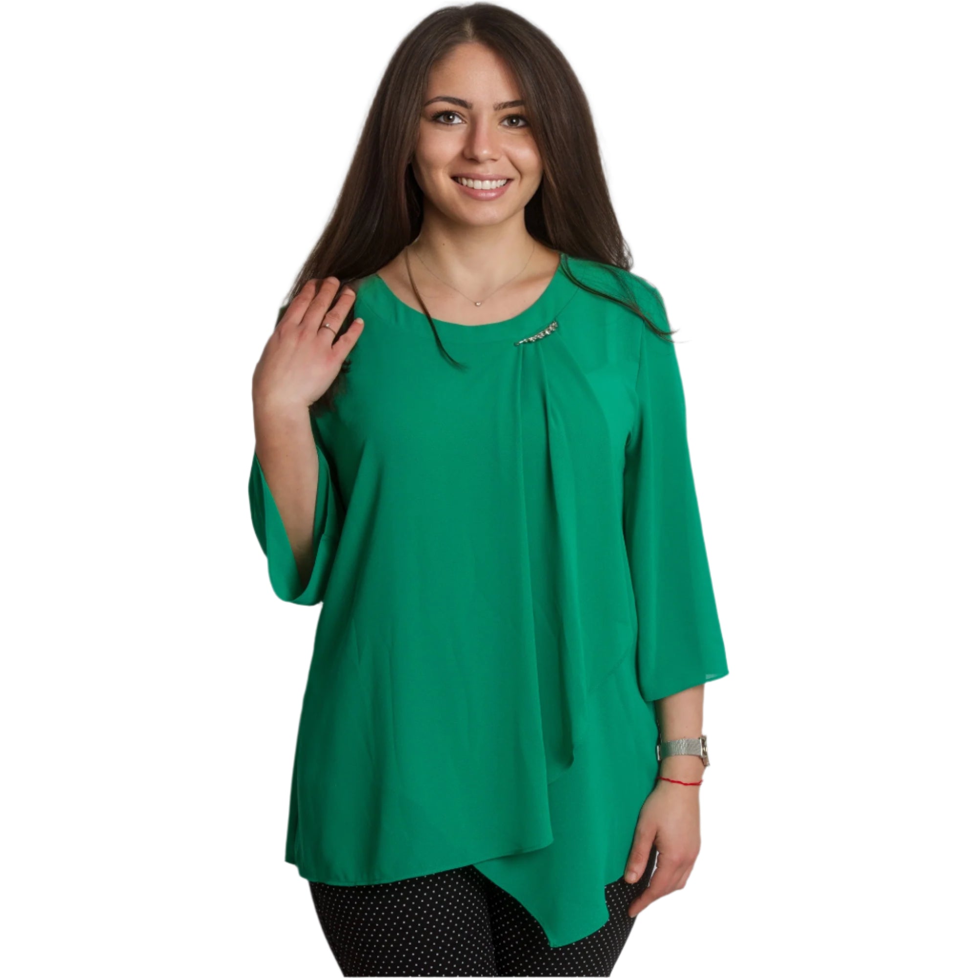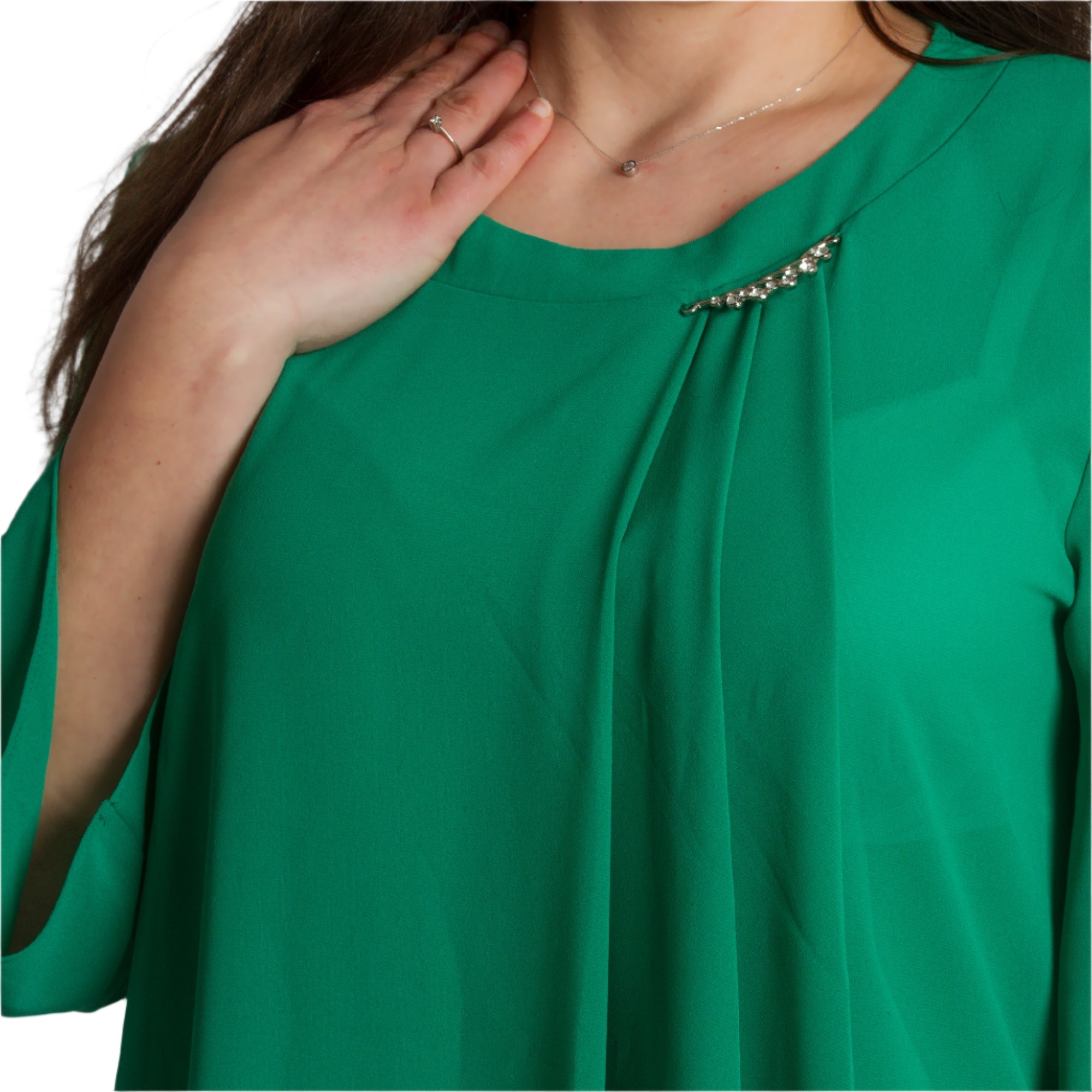 Tunică maxi formală din șifon cu broșă și mâneci 3/4