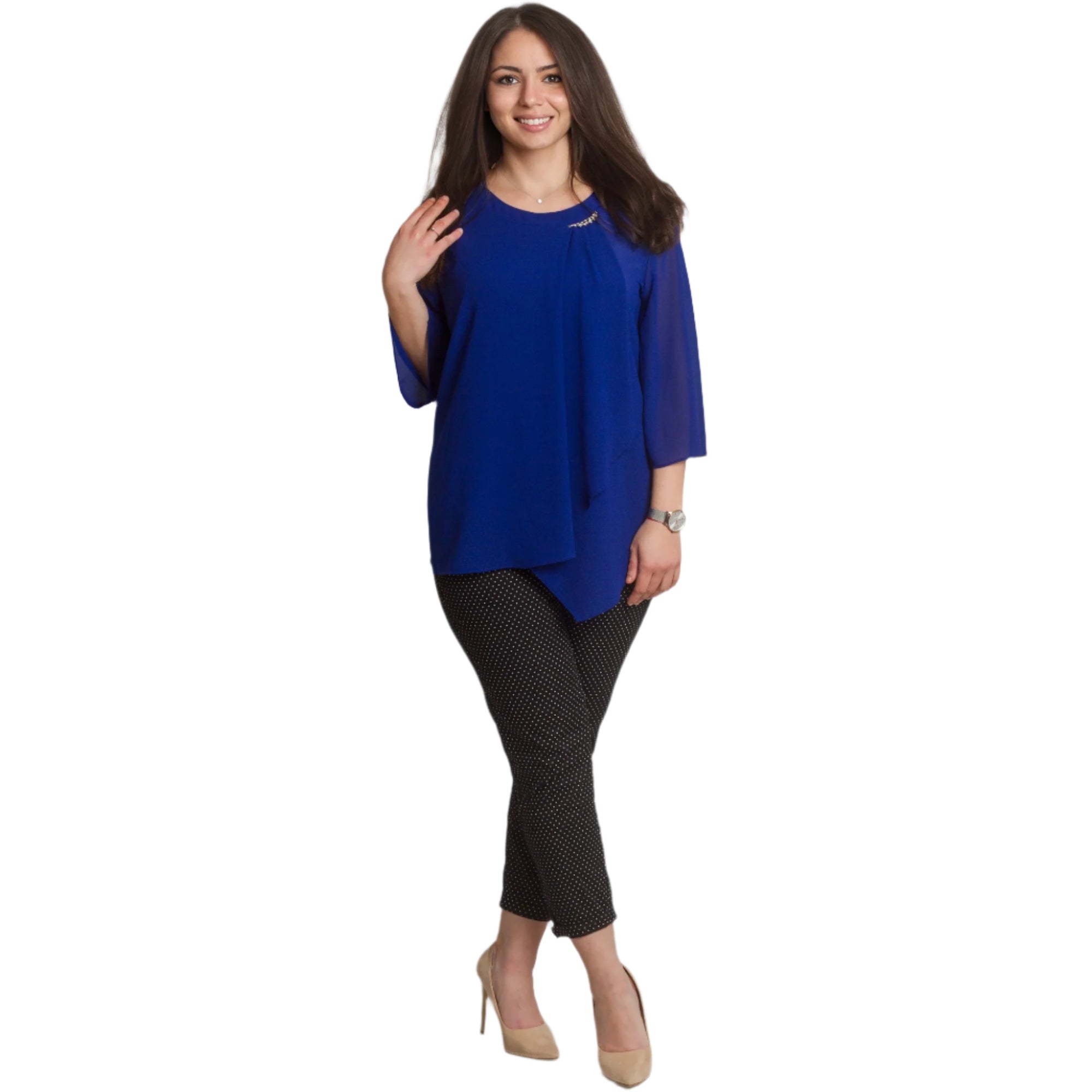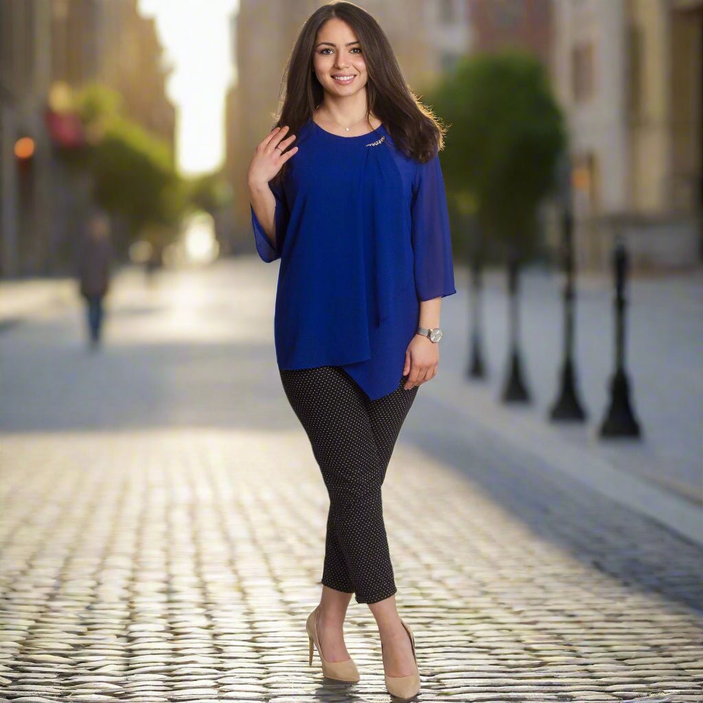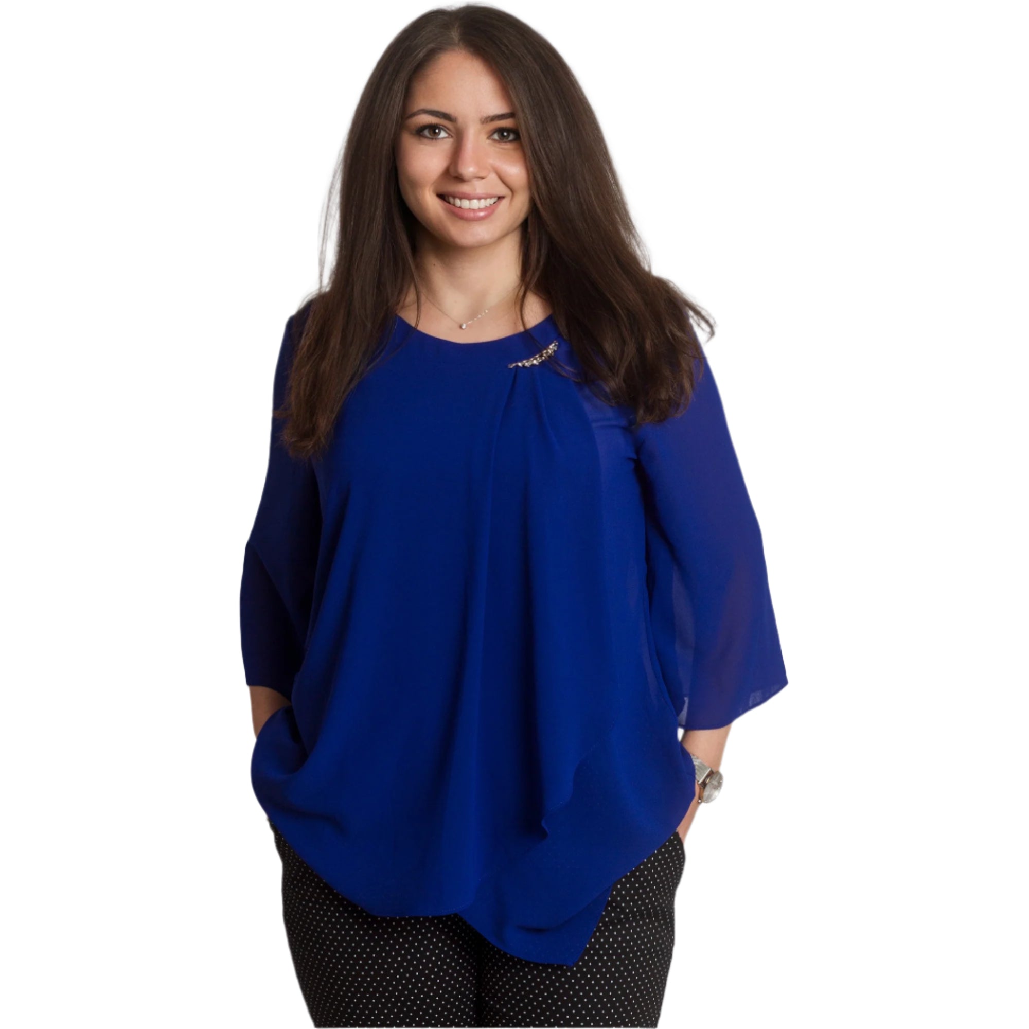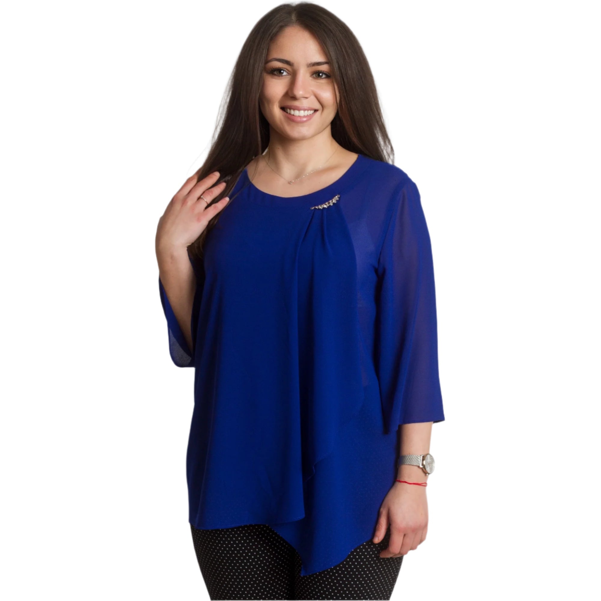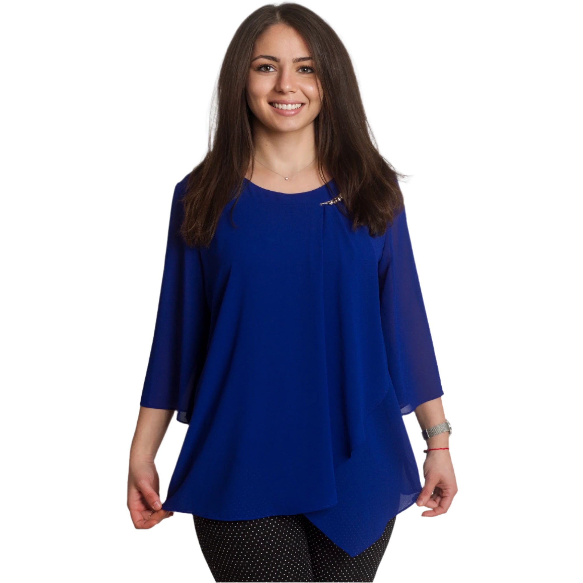 Tunica maxi formală din șifon, într-o culoare bogată de albastru regal, cu o broșă rafinată, creată pentru ocazii speciale. Fabricată din 50% vâscoză și 50% poliester, oferă moliciune, lejeritate și libertate de mișcare. Designul cu o siluetă dreaptă, mâneci 3/4 și șifon vaporos adaugă eleganță și rafinament, iar broșa decorativă oferă un finisaj sofisticat. Accentuează-ți feminitatea cu această tunică rafinată, care îți va oferi confort și stil elegant în orice situație!