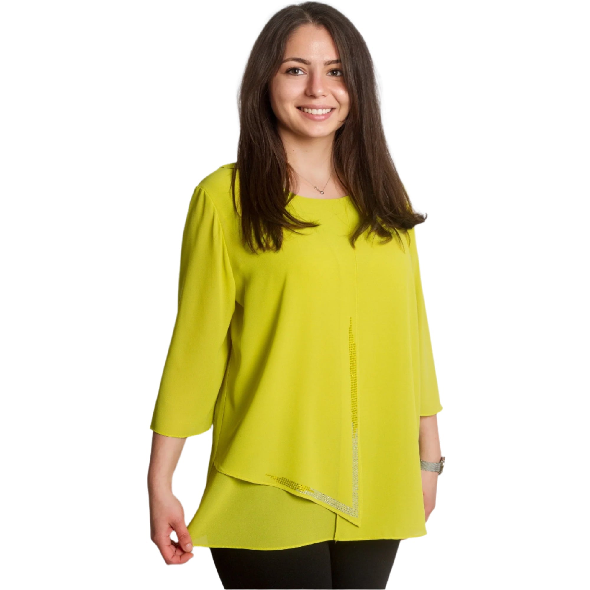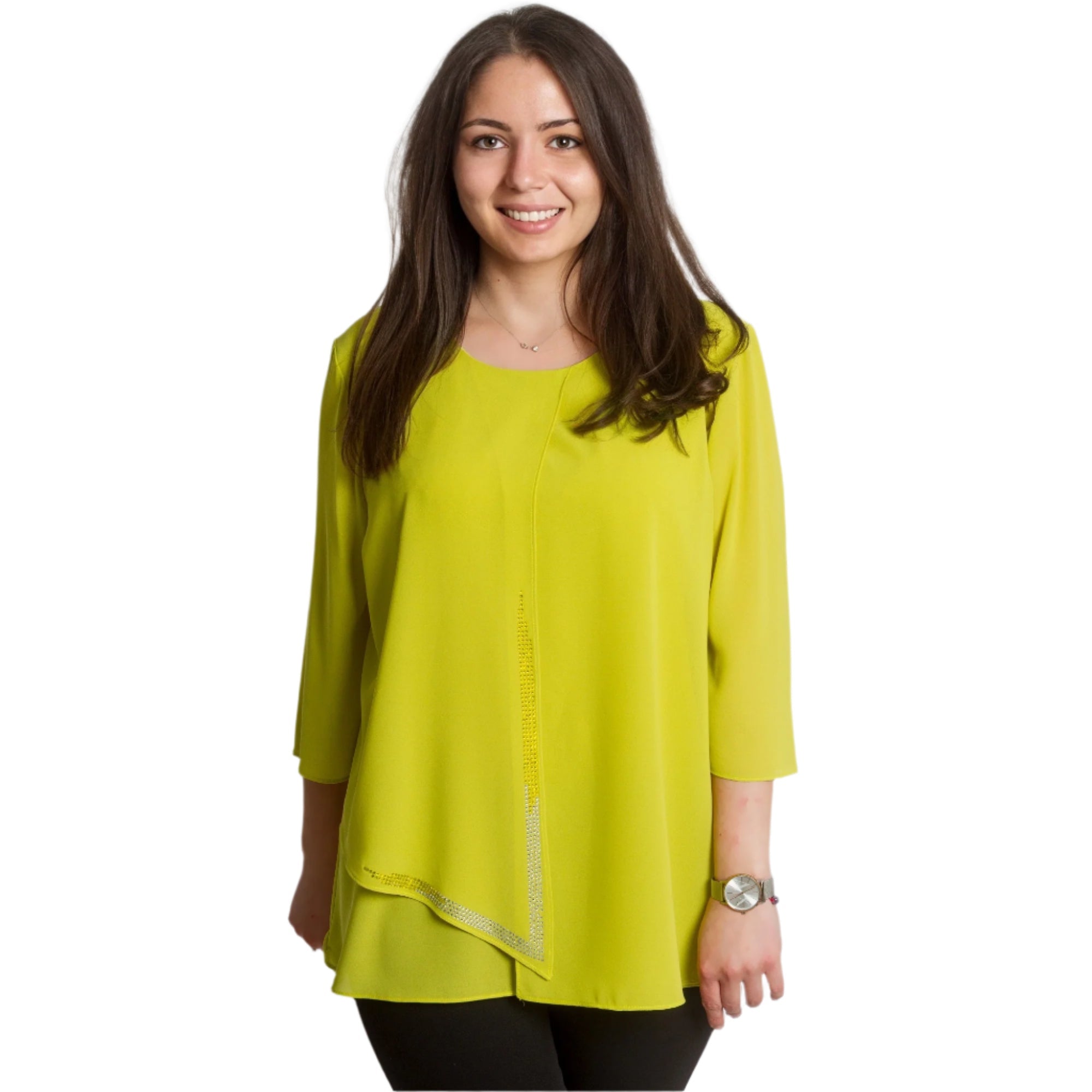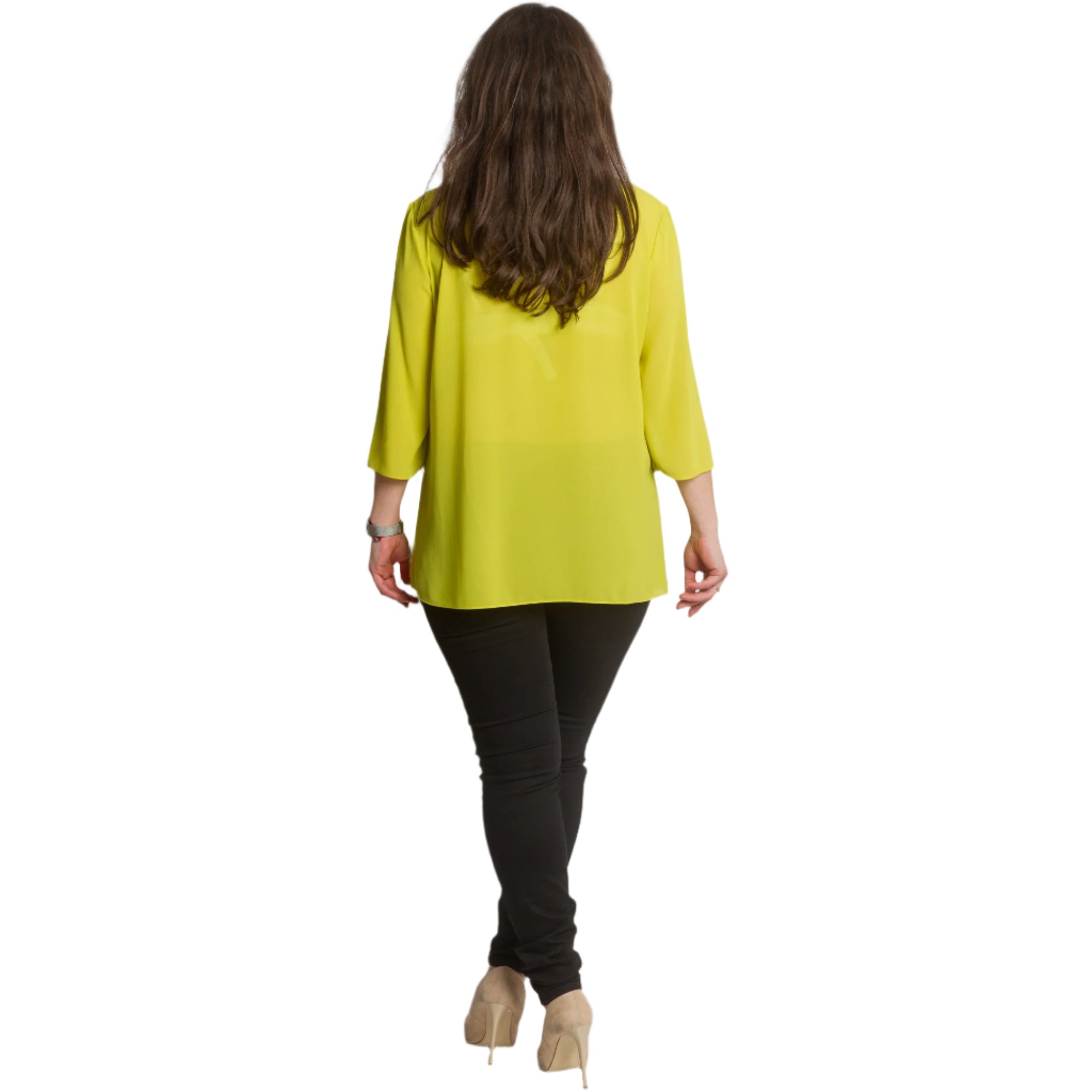 Adaugă o notă de rafinament garderobei tale cu această elegantă tunică galbenă, confecționată din viscoză și poliester de înaltă calitate. Materialul ușor și vaporos oferă confort, iar croiul elegant cu design asimetric adaugă un finisaj stilat. Modelul are mâneci 3/4, ideal pentru ocazii speciale, evenimente de primăvară și vară.