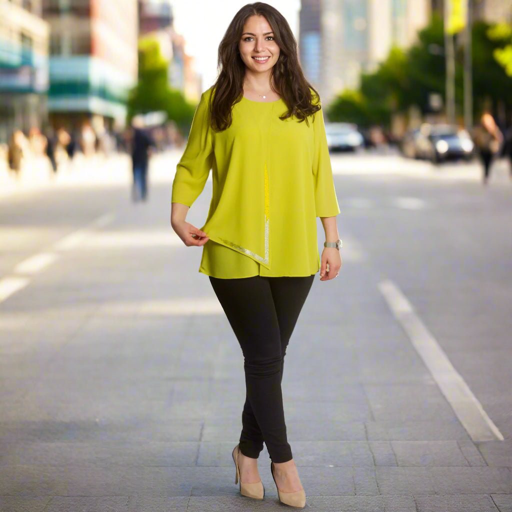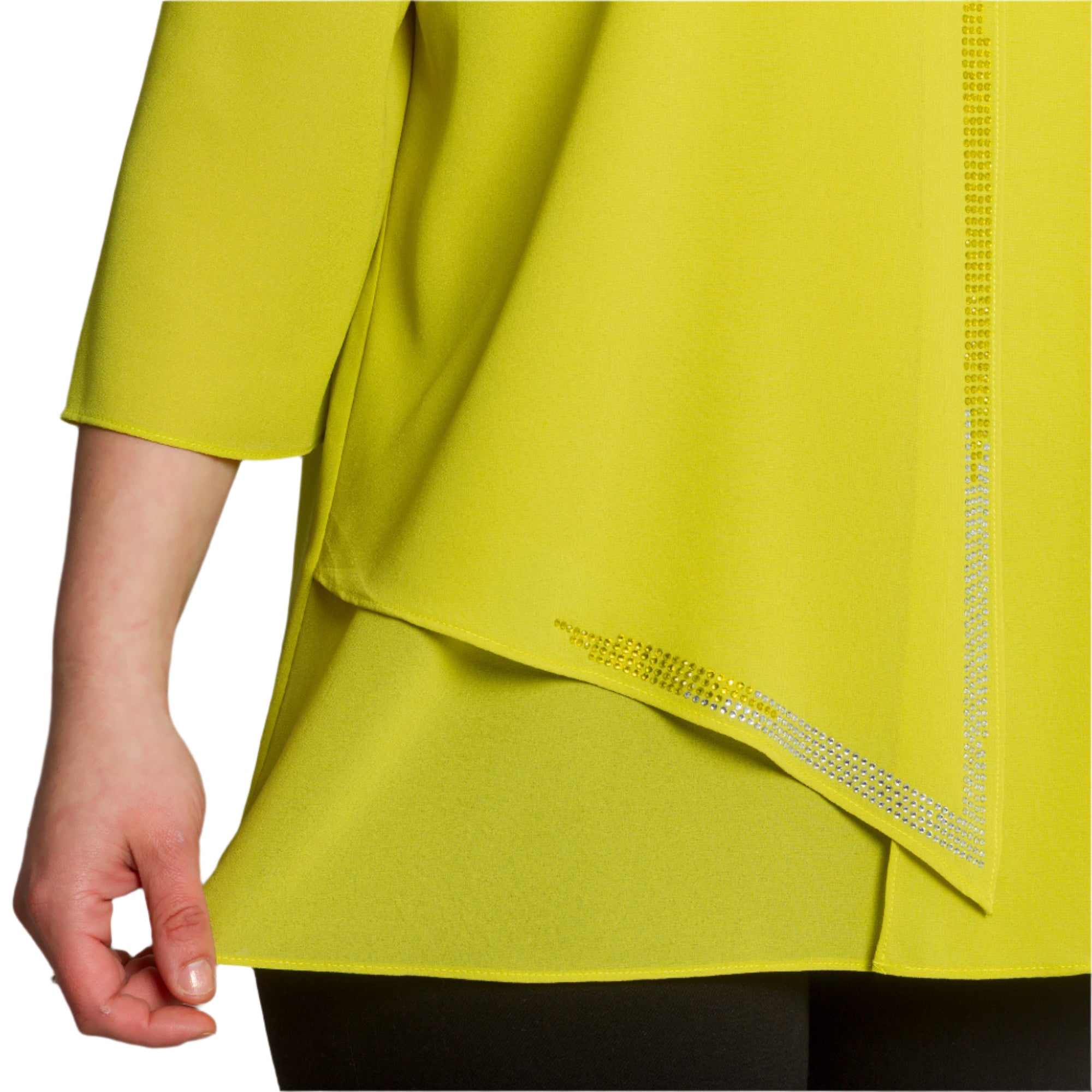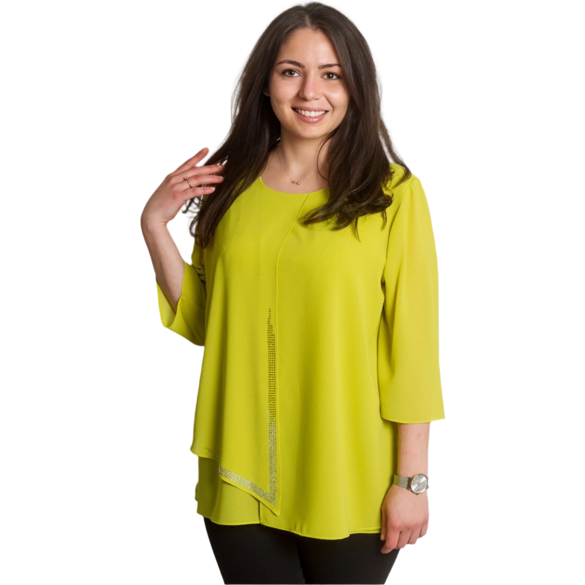 Adaugă o notă de rafinament garderobei tale cu această elegantă tunică galbenă, confecționată din viscoză și poliester de înaltă calitate. Materialul ușor și vaporos oferă confort, iar croiul elegant cu design asimetric adaugă un finisaj stilat. Modelul are mâneci 3/4, ideal pentru ocazii speciale, evenimente de primăvară și vară.