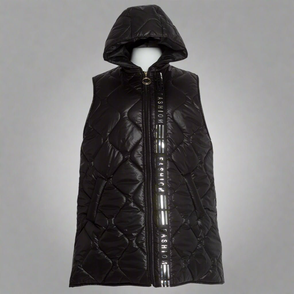 Vestă de damă în mărimi maxi, confecționată din 100% poliester. Model lejer cu fermoar lateral spectaculos, buzunare practice și glugă. Potrivită pentru sezonul primăvară-toamnă, vesta oferă stil și confort pentru viața de zi cu zi.