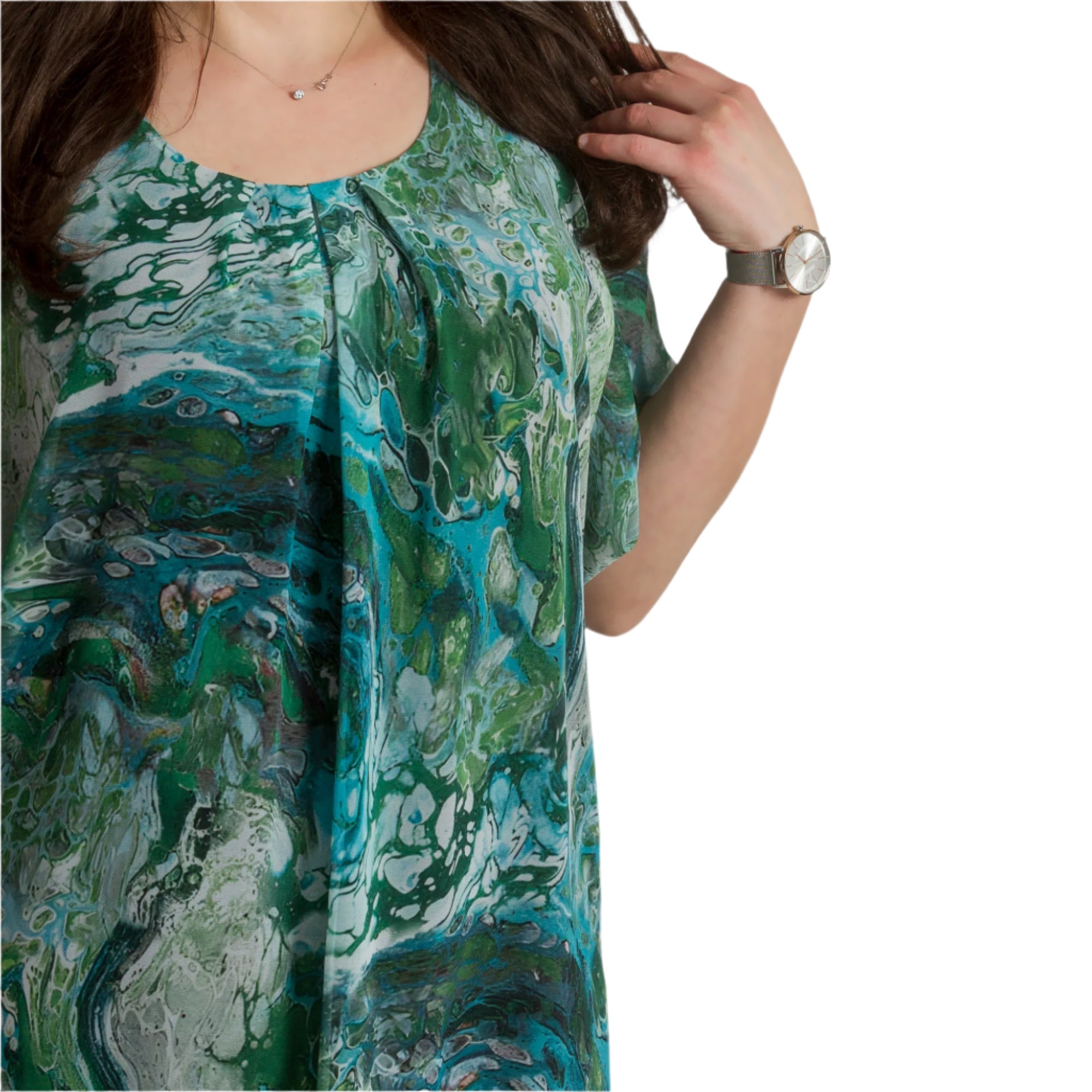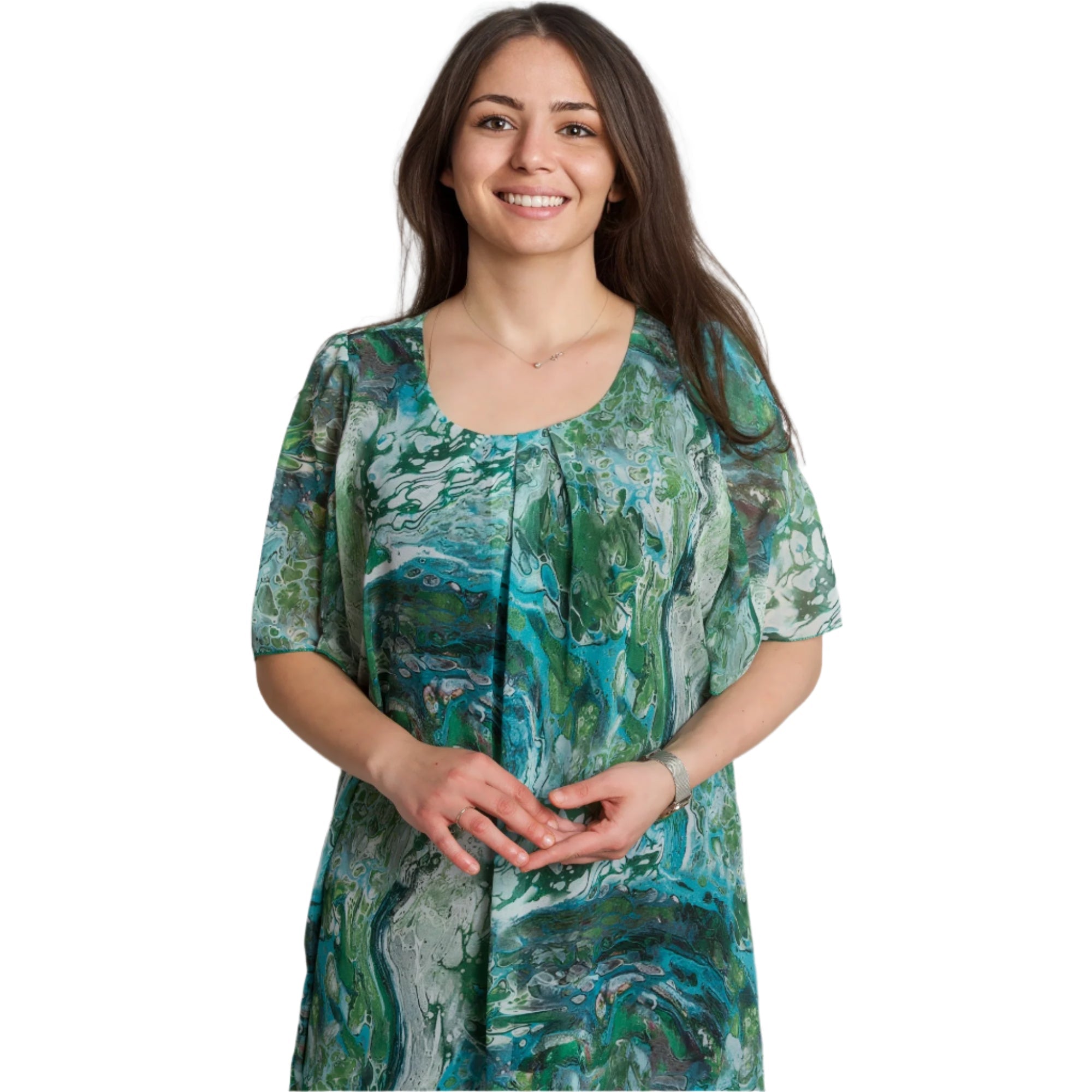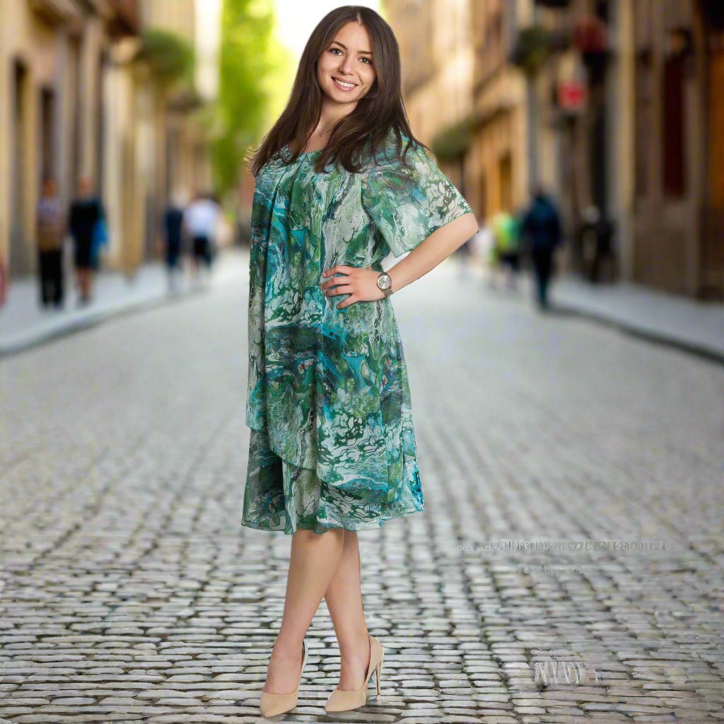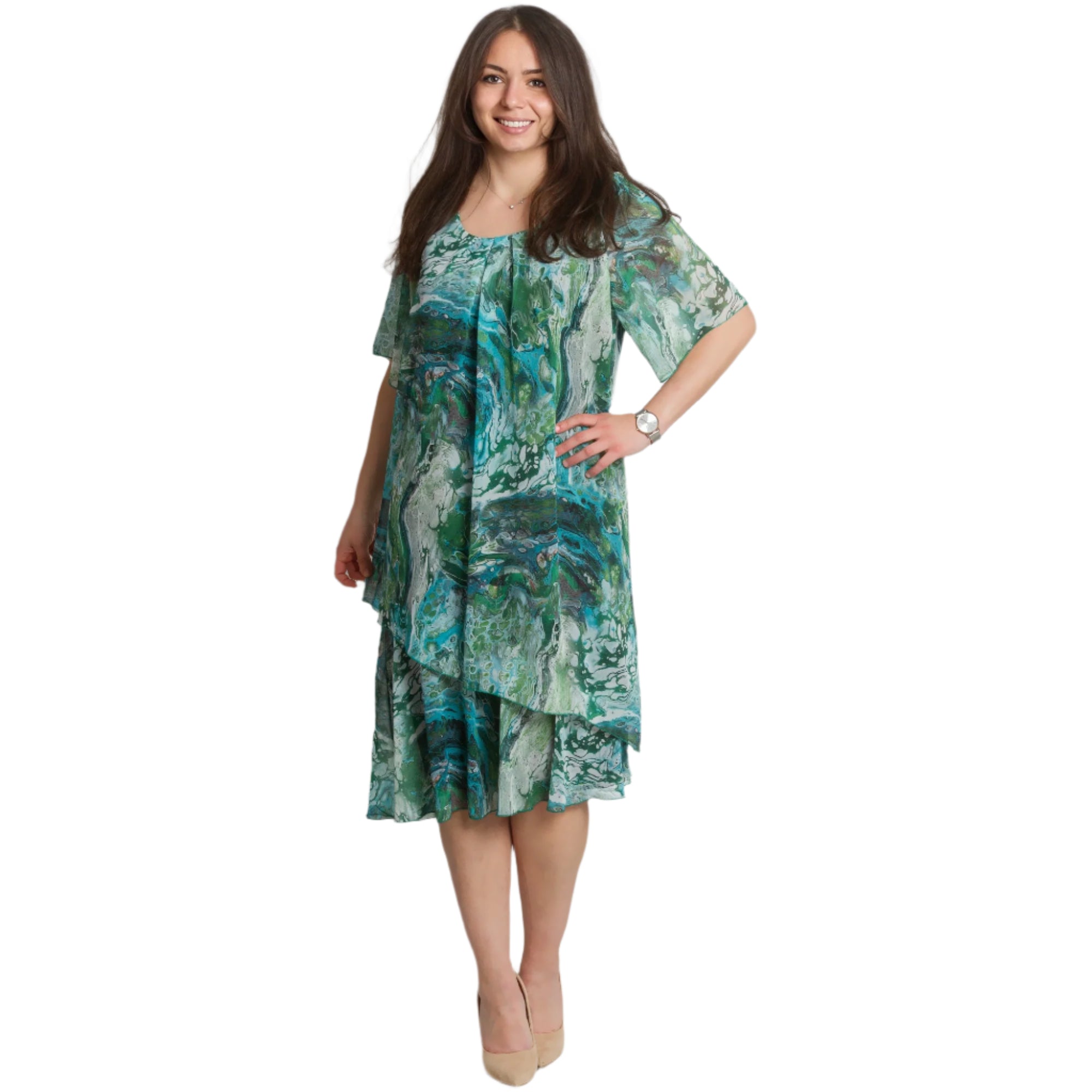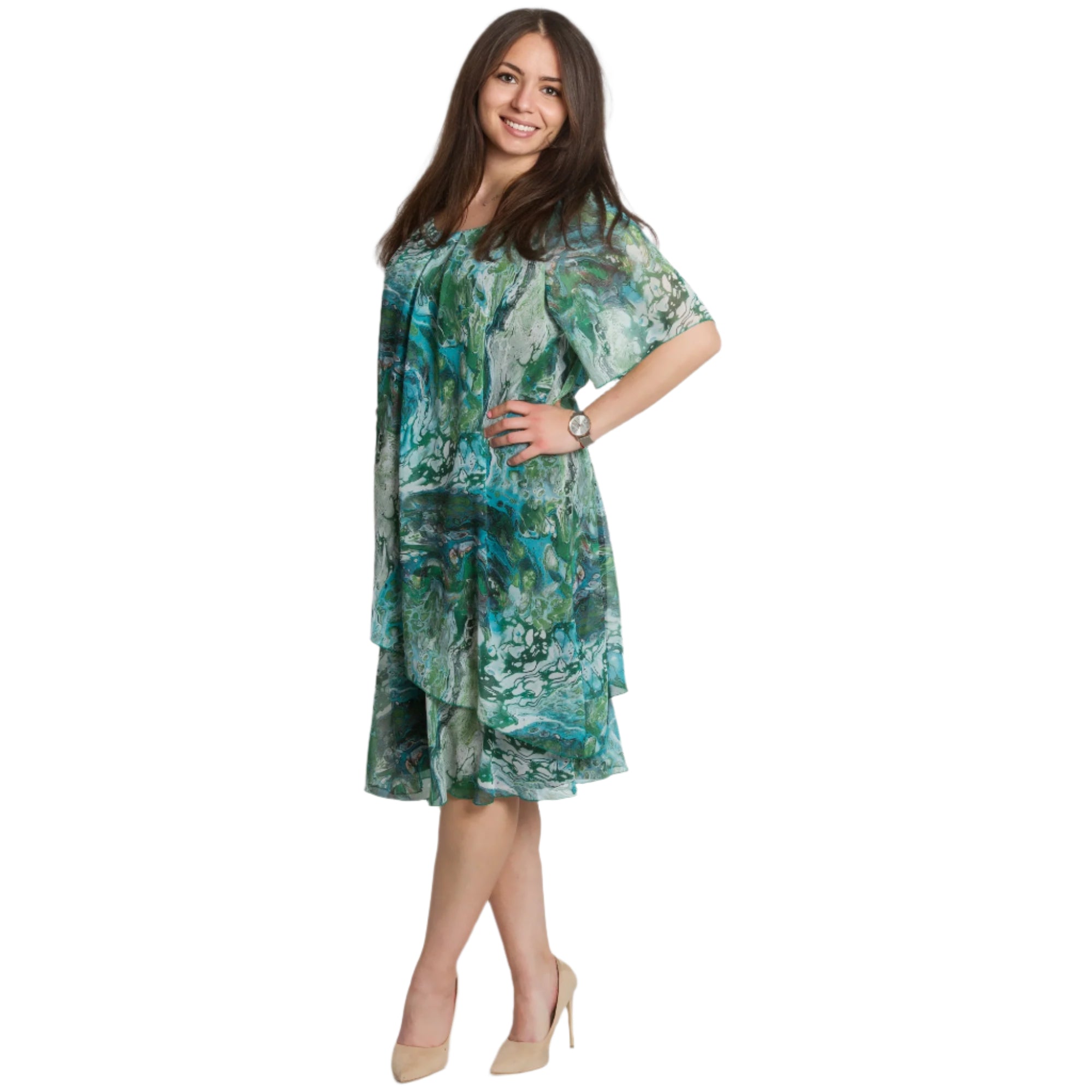 Rochie elegantă cu imprimeu floral, confecționată din șifon floral. Modelul prezintă un decolteu rotund, o croială lejeră și o lungime sub genunchi. Cu căptușeală elastică pentru confort sporit. Ideală atât pentru ocazii formale, cât și pentru evenimente elegante.
