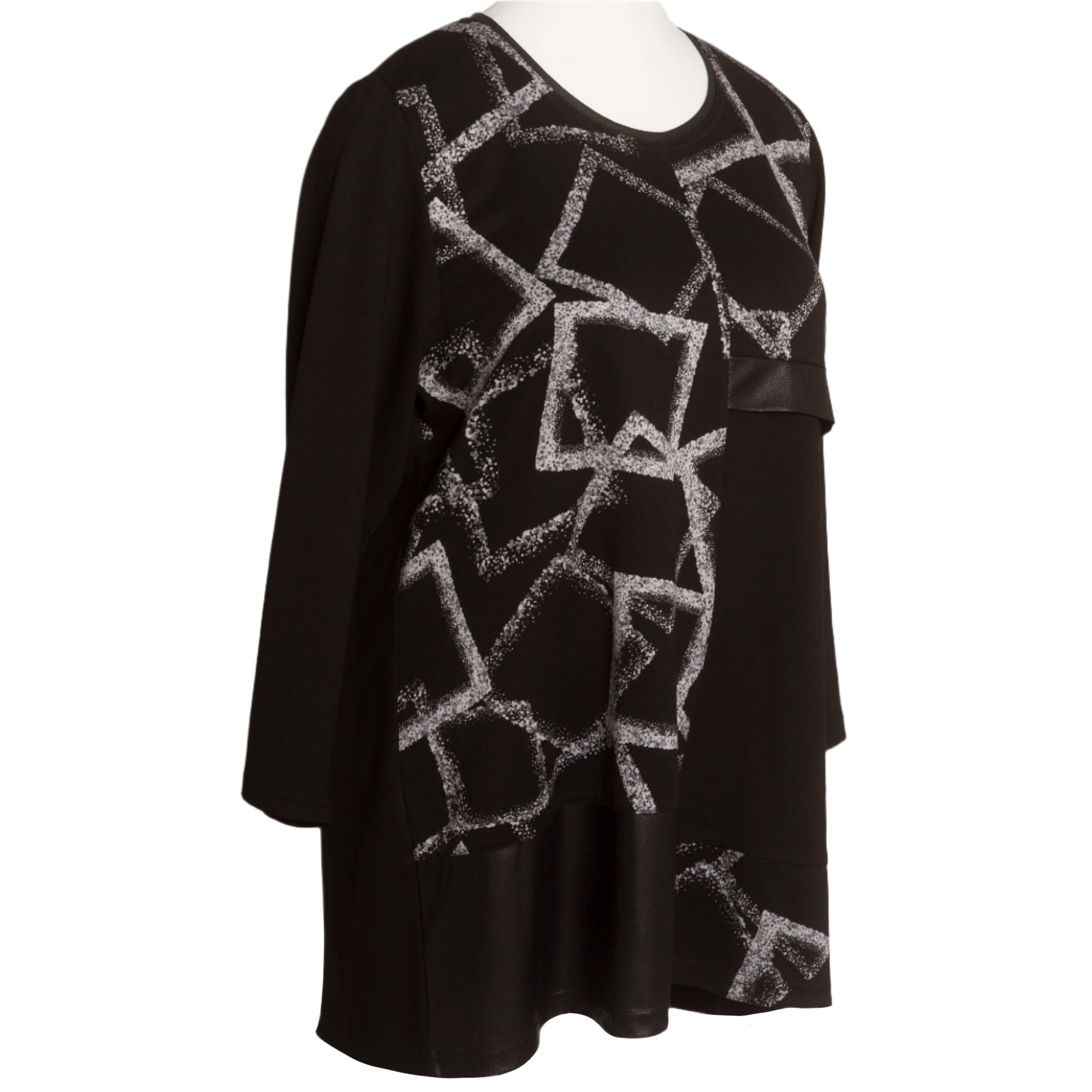 Tunică neagră cu model geometric și croială lejeră