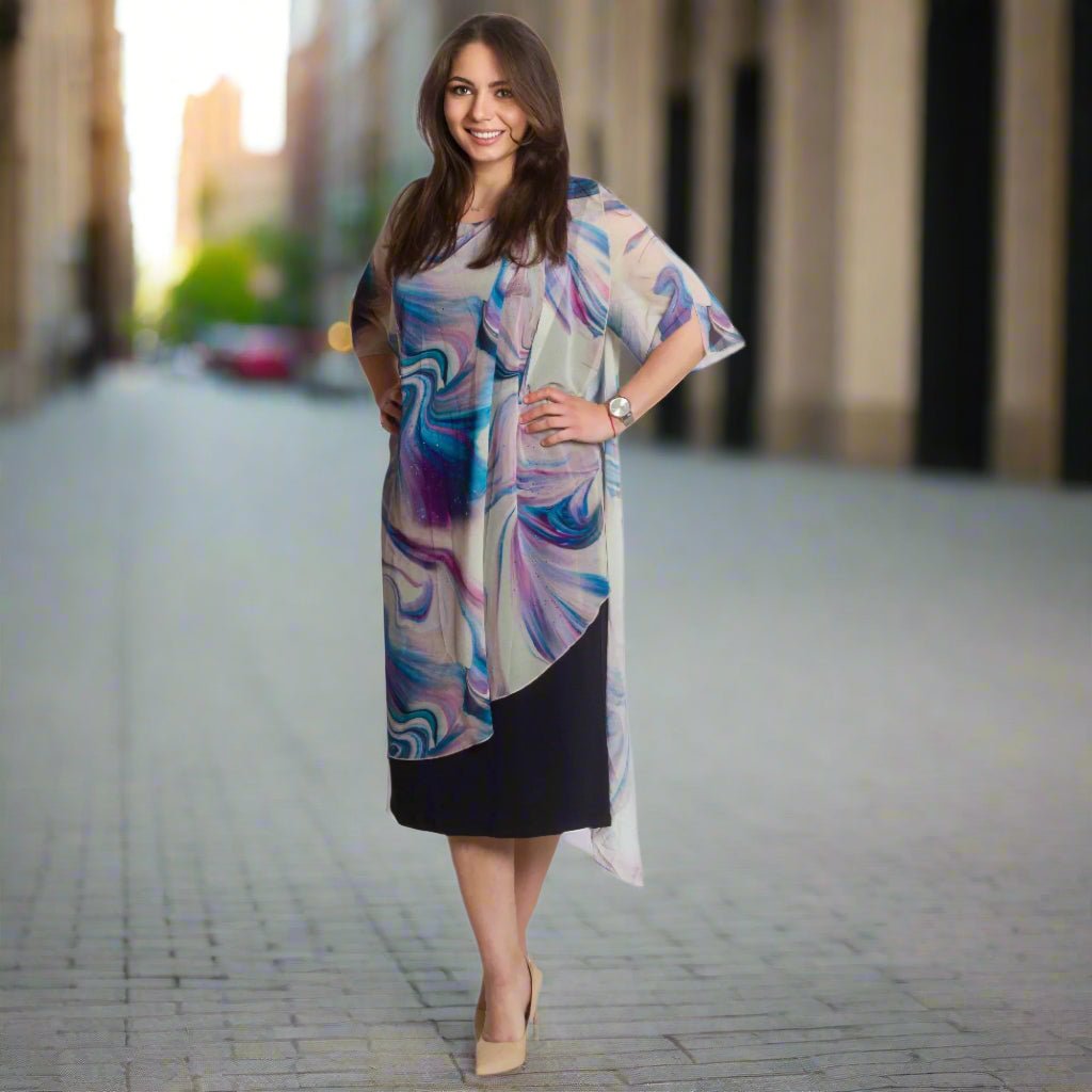 Rochie elegantă din șifon cu croială dreaptă, mărimi mari