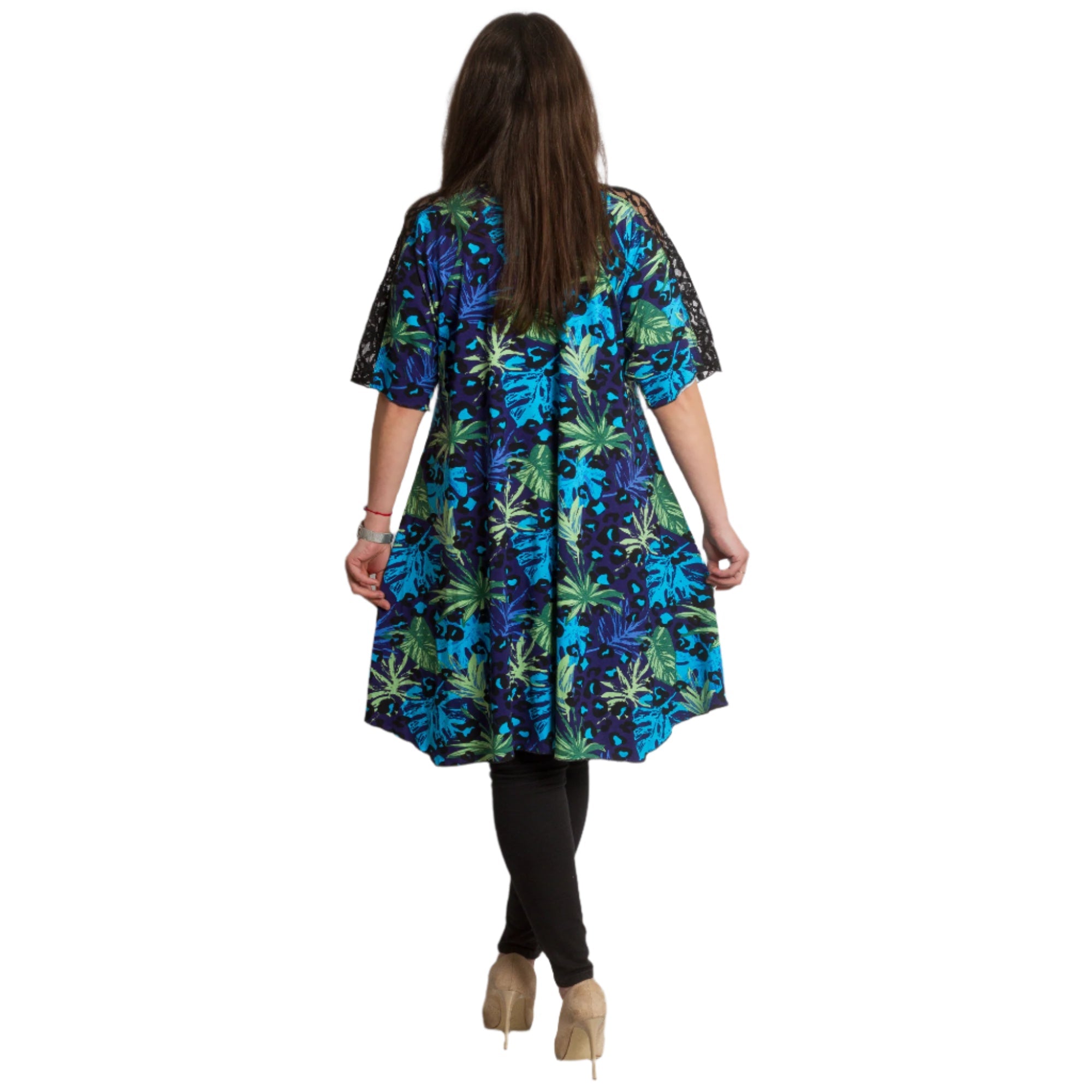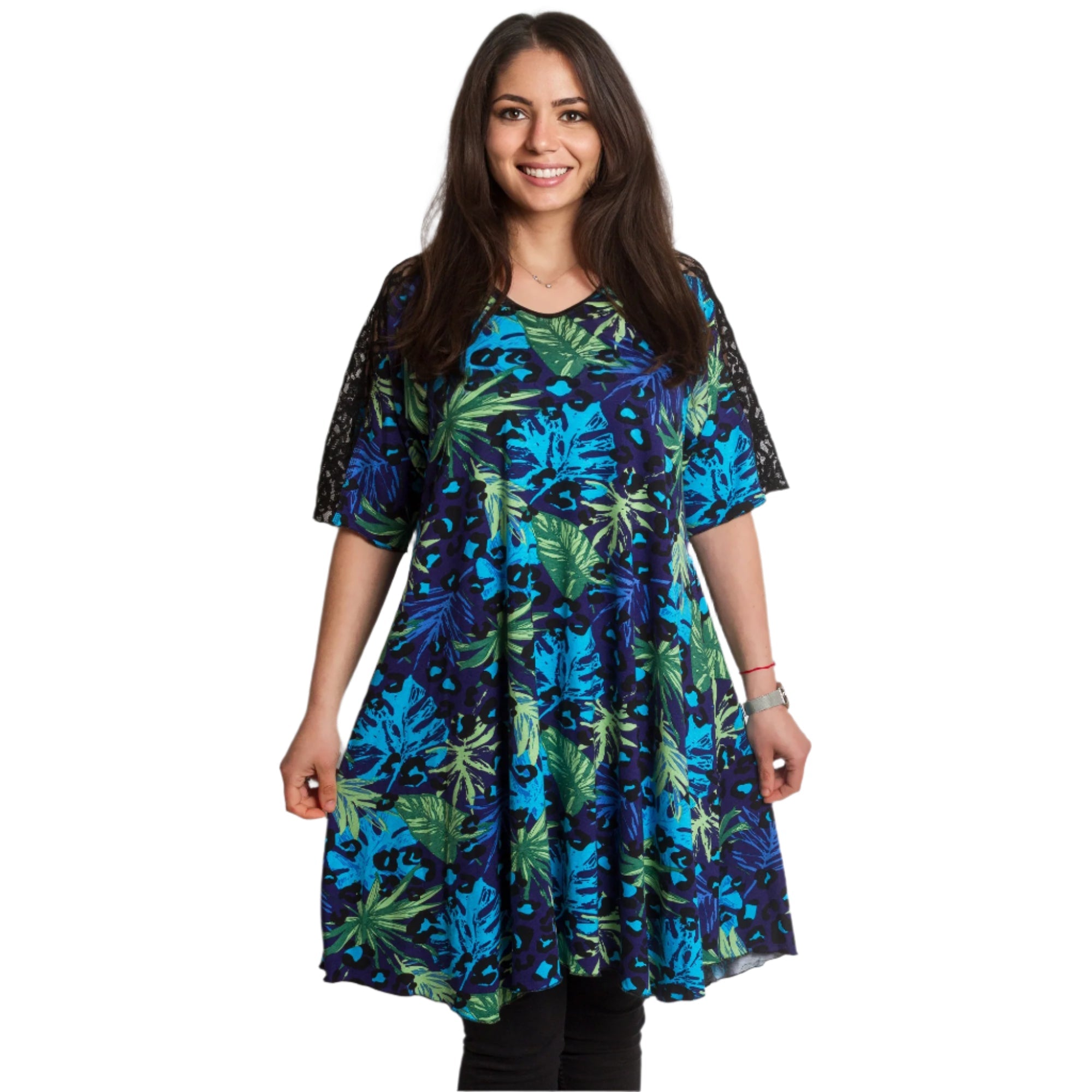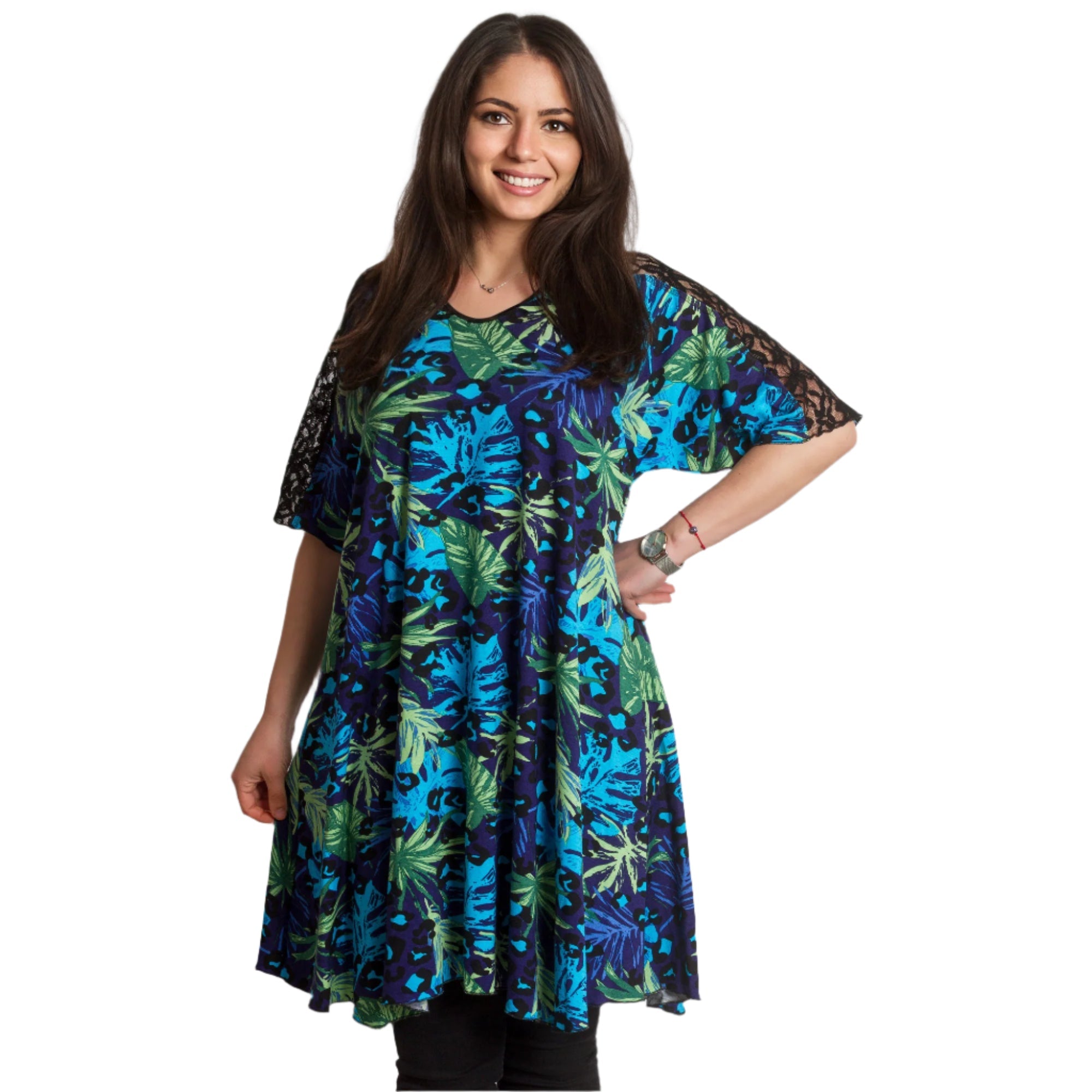 Tunică colorată, decupată, cu dantelă, mărimi mari