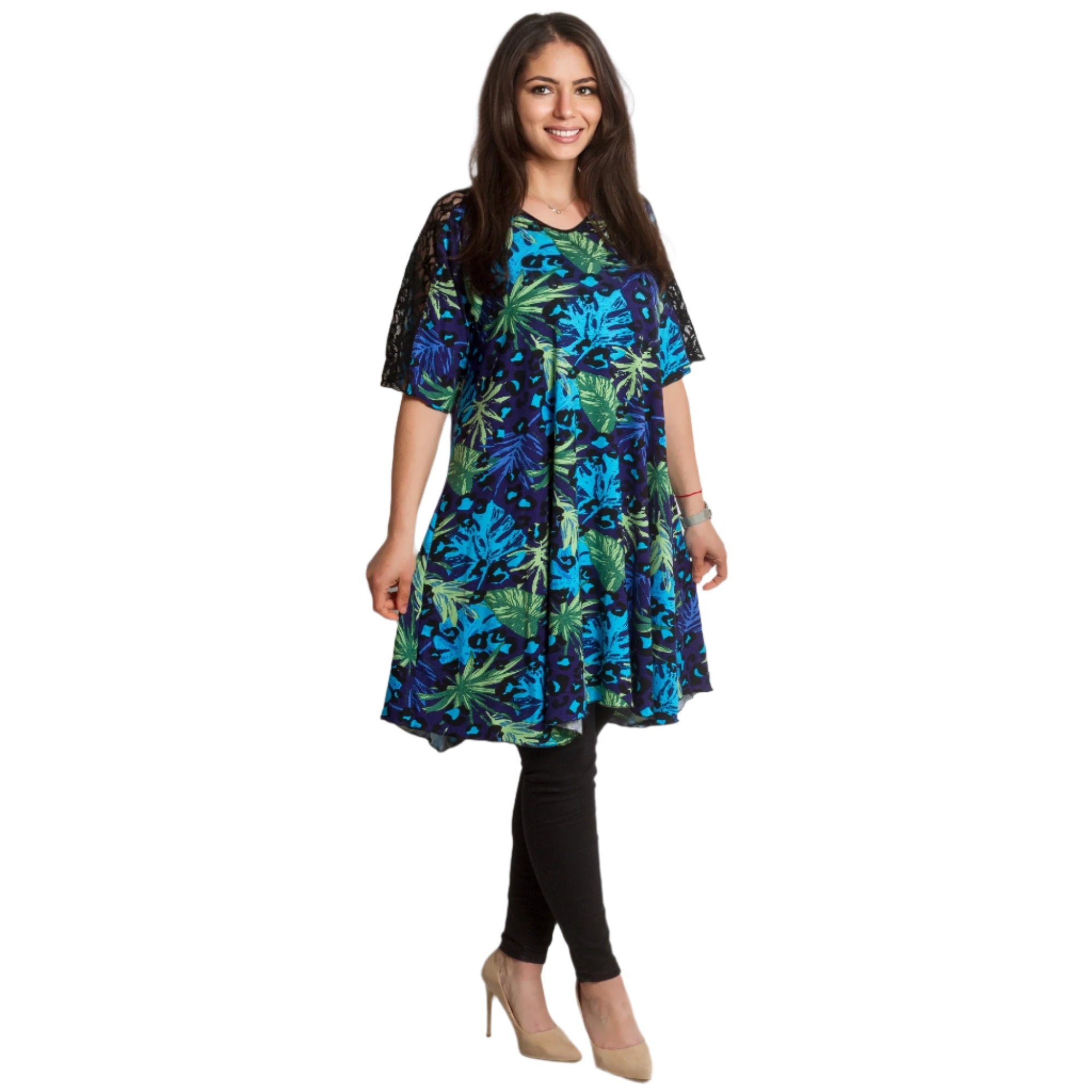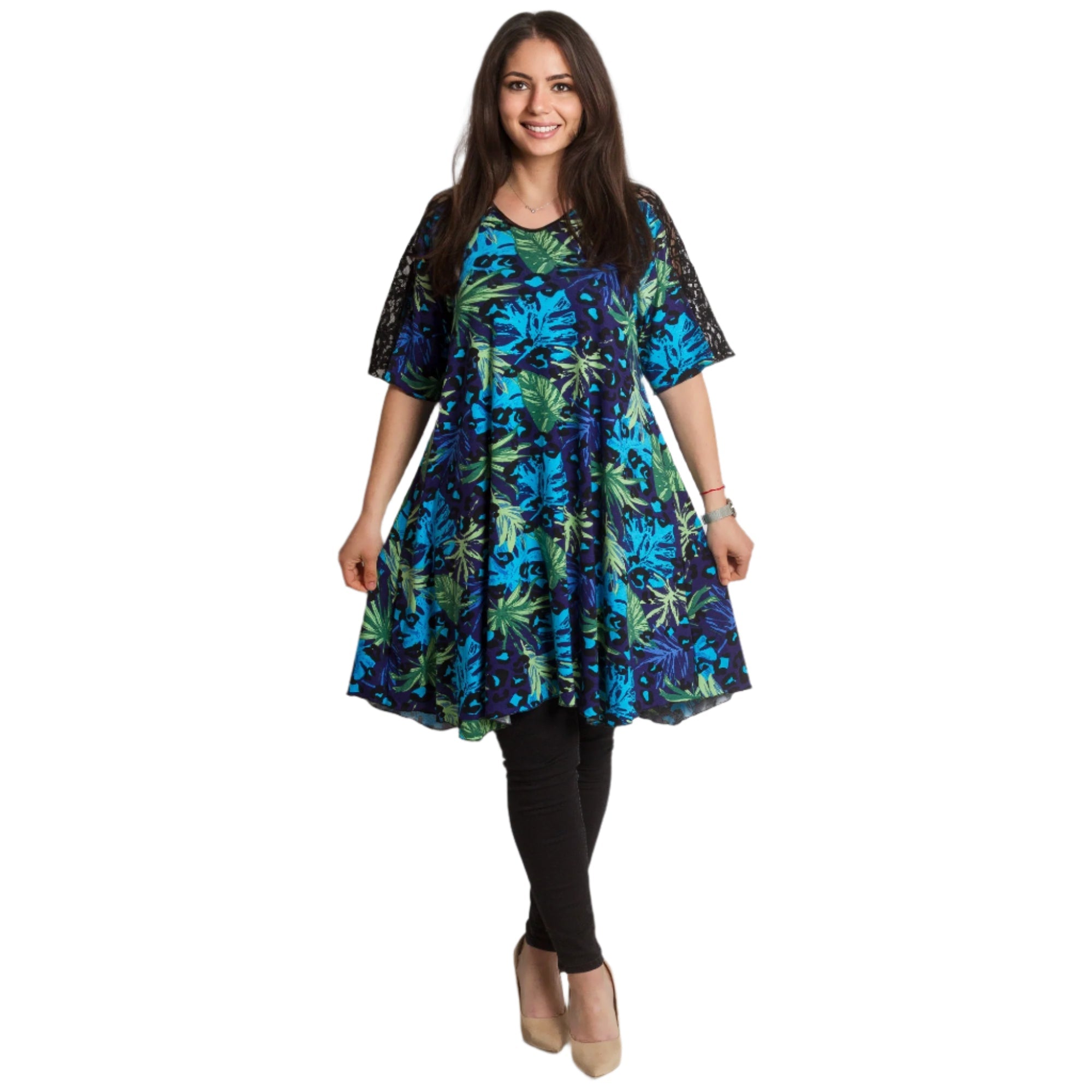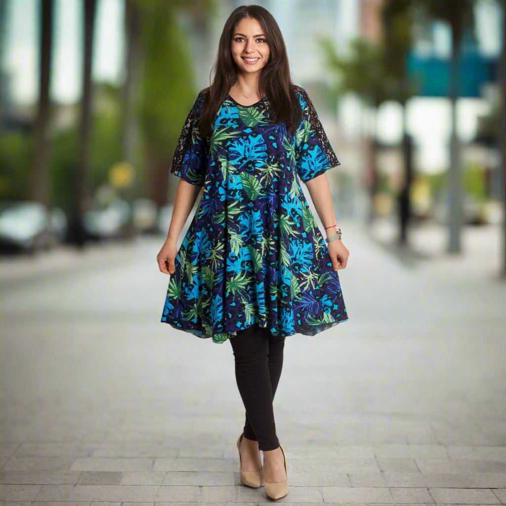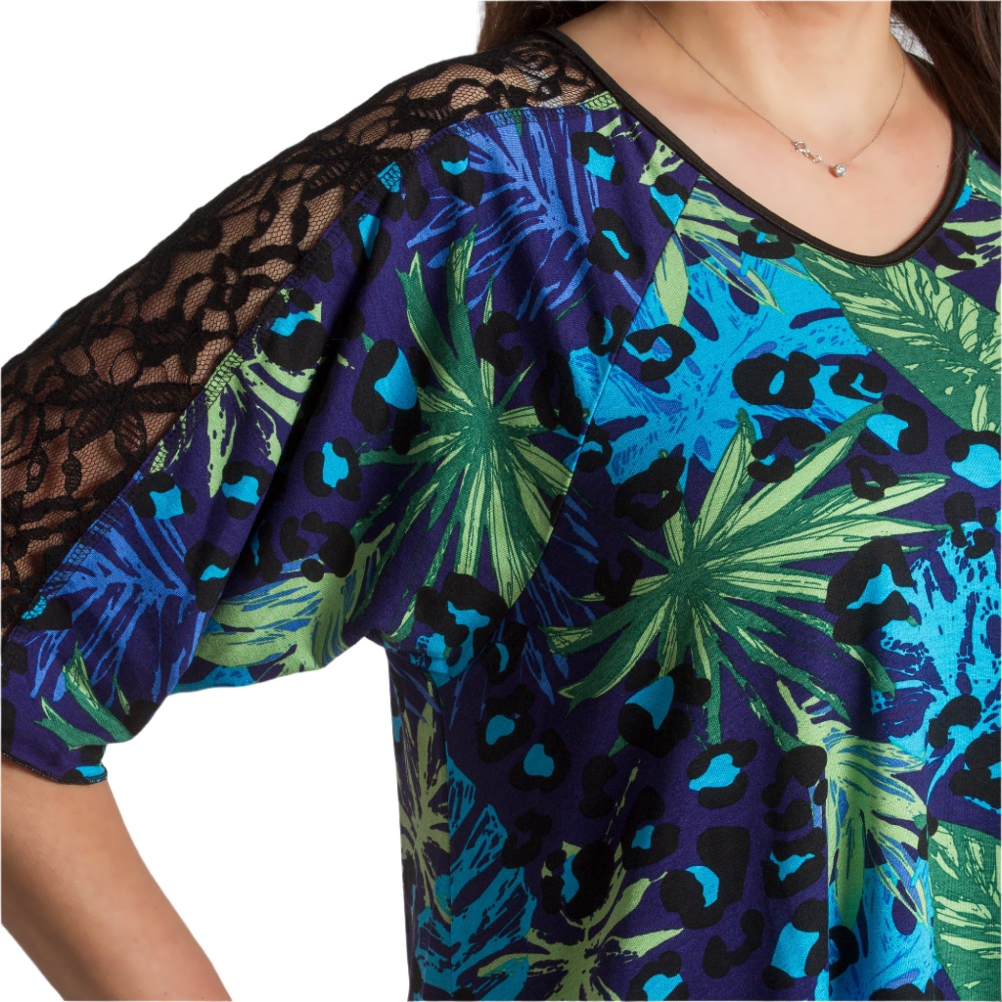 Tunică colorată, decupată, cu dantelă, mărimi mari