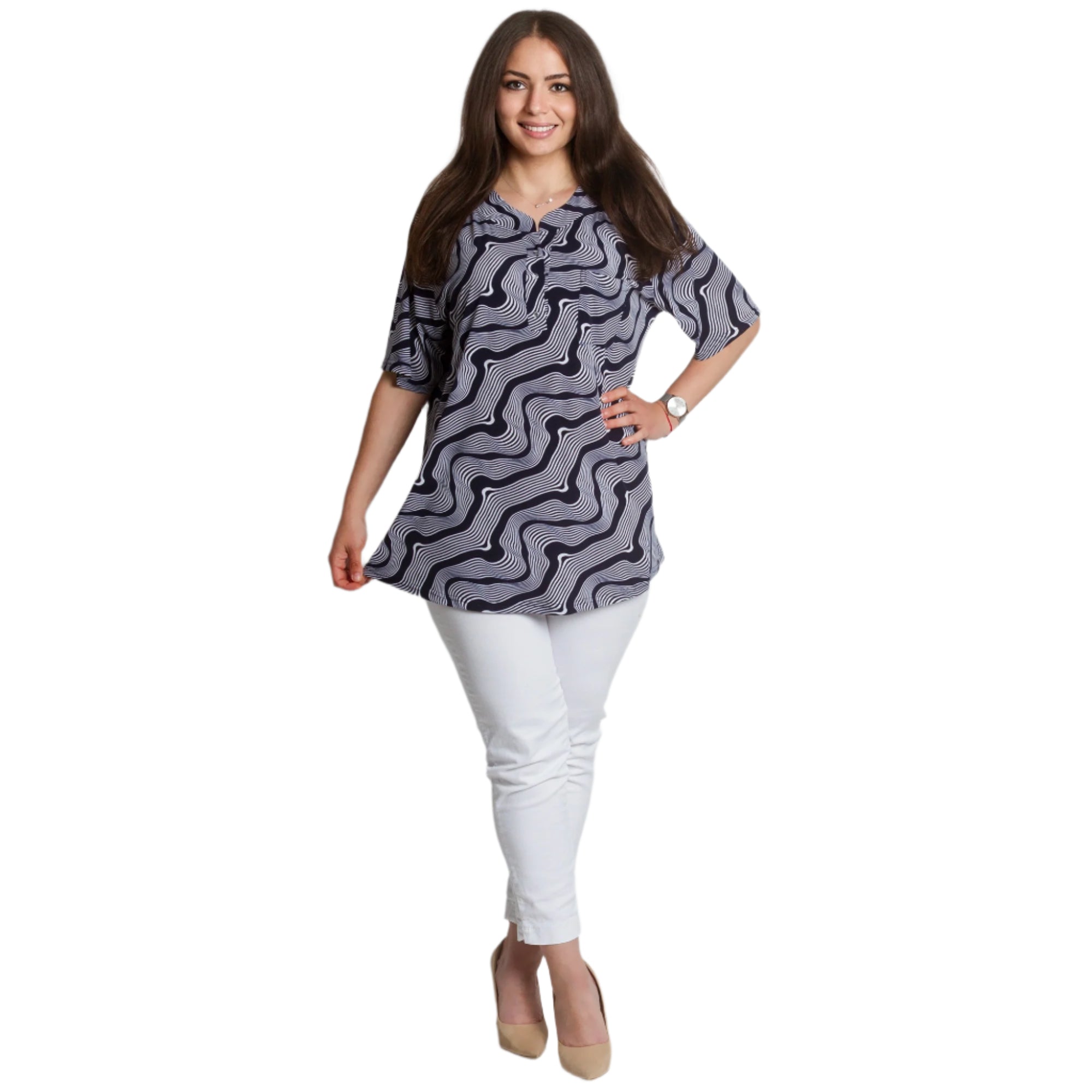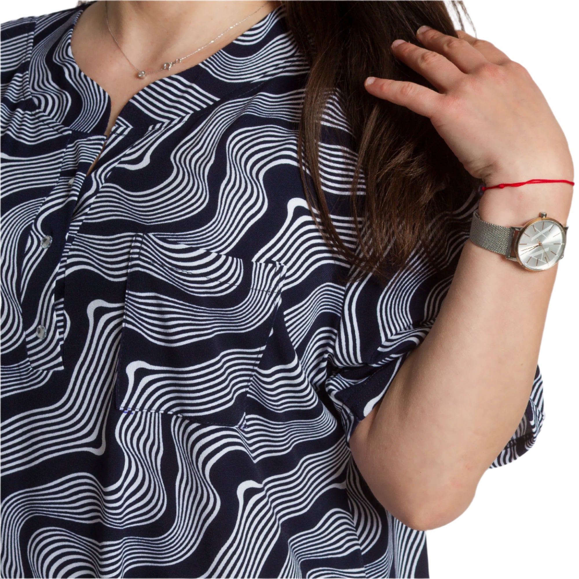Descoperă confortul și stilul cu această tunică spectaculoasă cu un buzunar practic. Confecționată din material moale și elastic din viscoză, oferă confort complet pe tot parcursul zilei. Croiul lejer accentuează feminitatea fără a fi strâmtă. Micul buzunar din partea de sus adaugă o notă de practicitate, iar imprimeul modern - un sentiment de individualitate. Este potrivită pentru purtare zilnică, plimbări, întâlniri cu prietenii sau chiar pentru ocazii mai elegante, combinată cu pantaloni sau colanți potriviți.