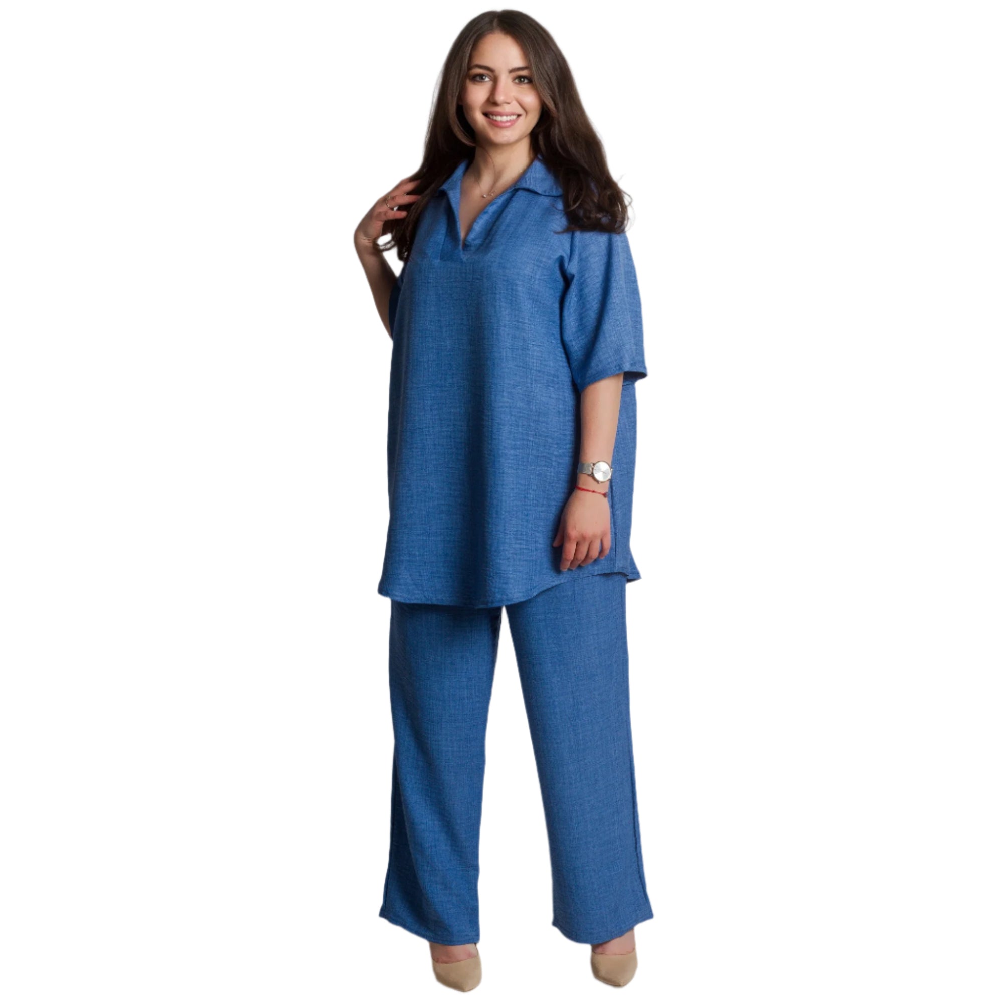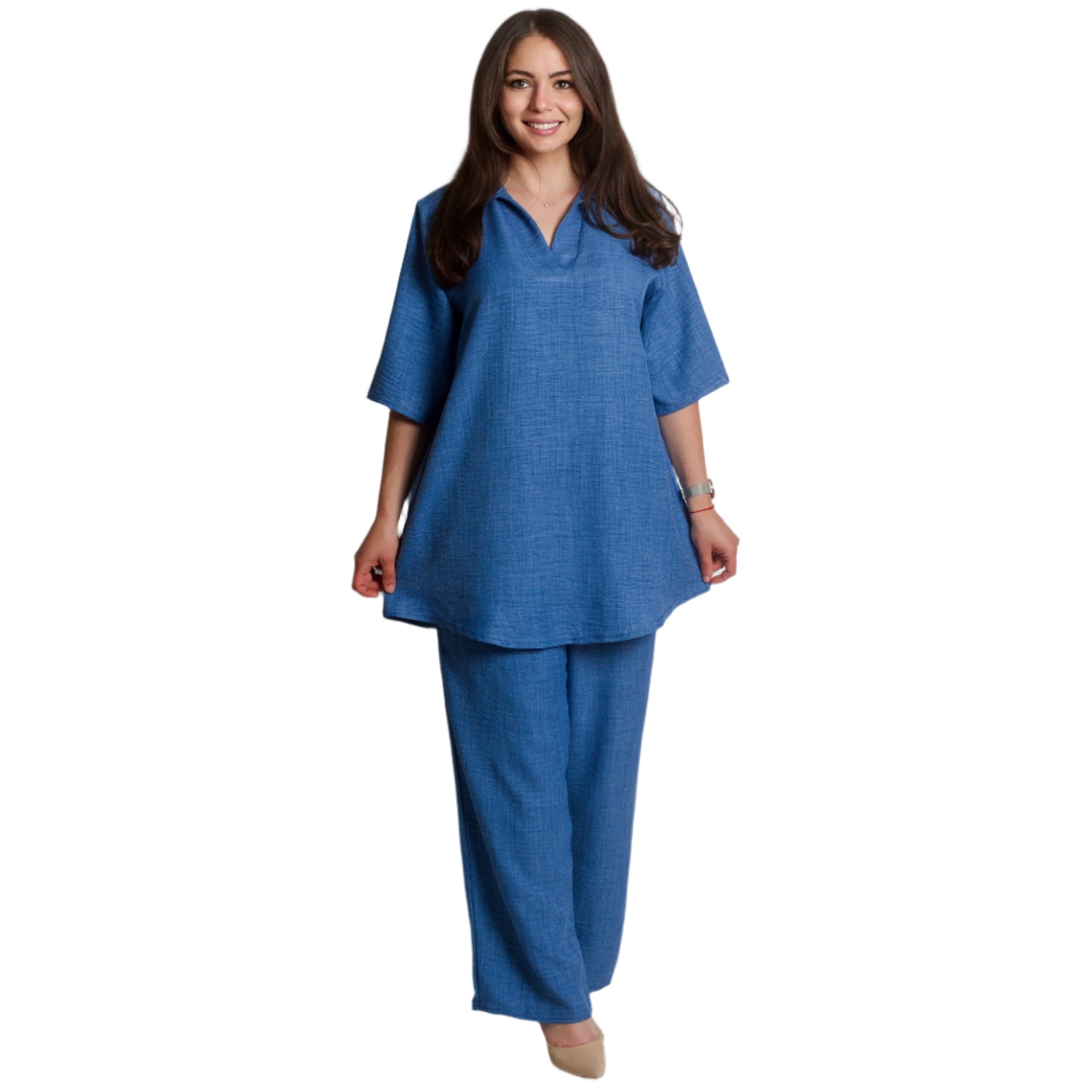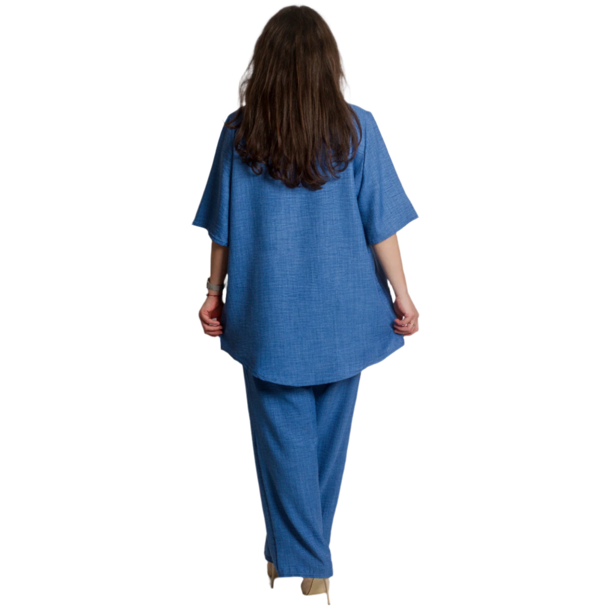 Costum albastru cu tunică și pantaloni în mărimi mari