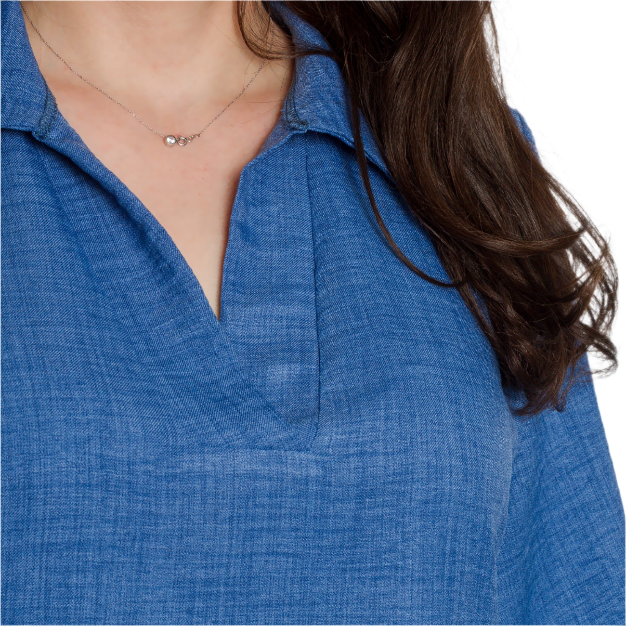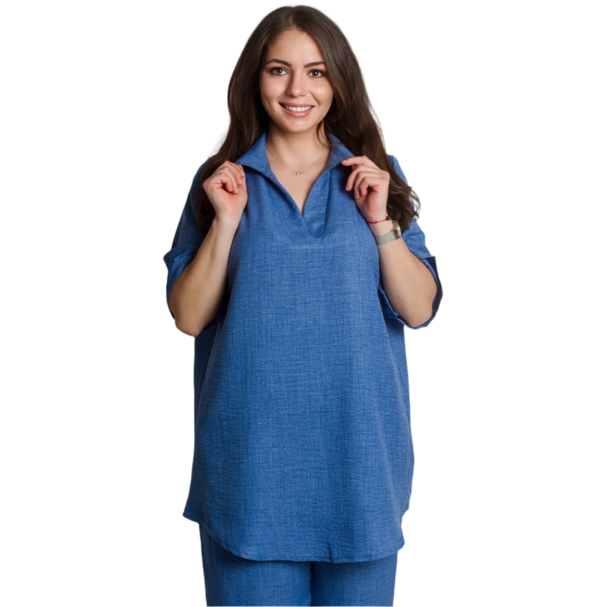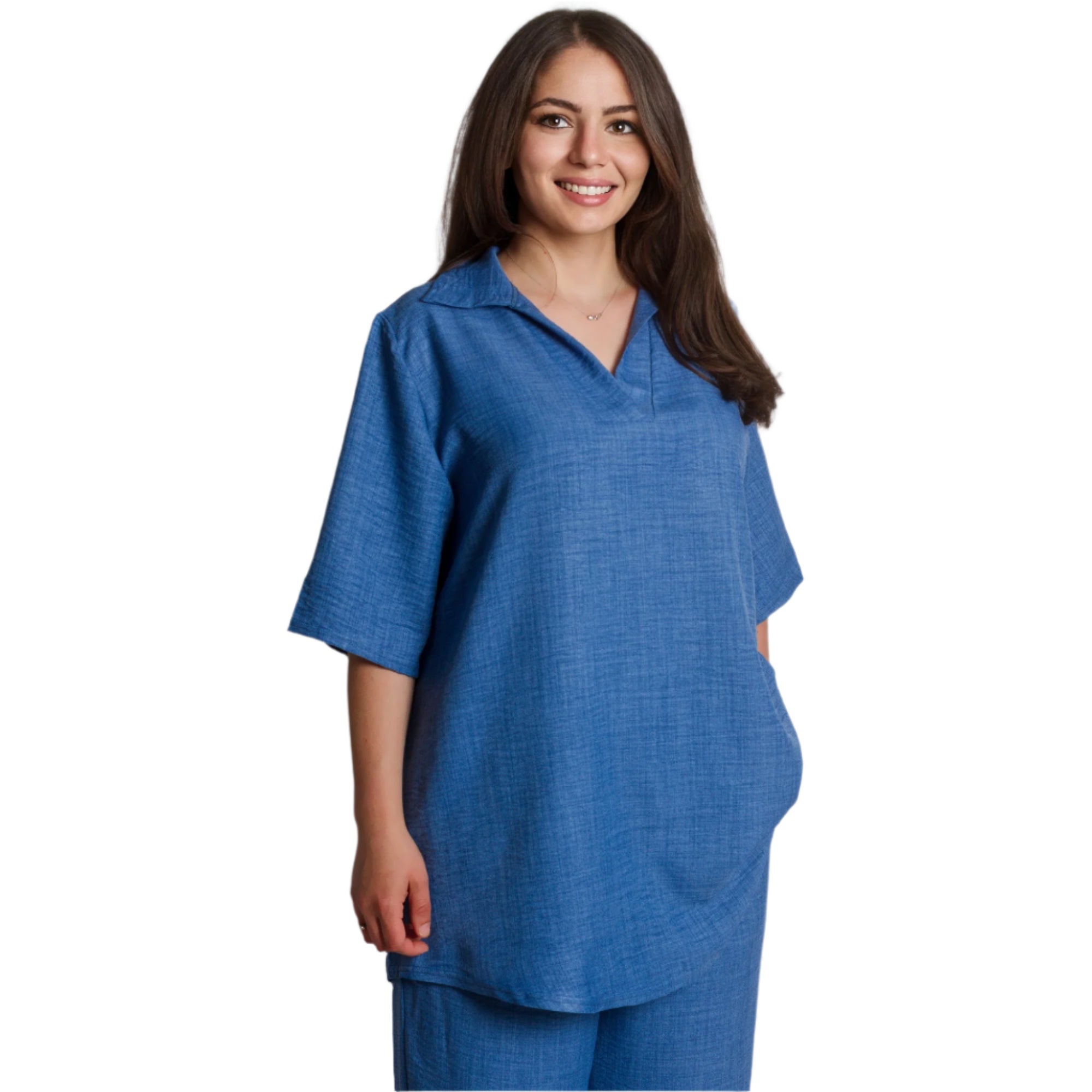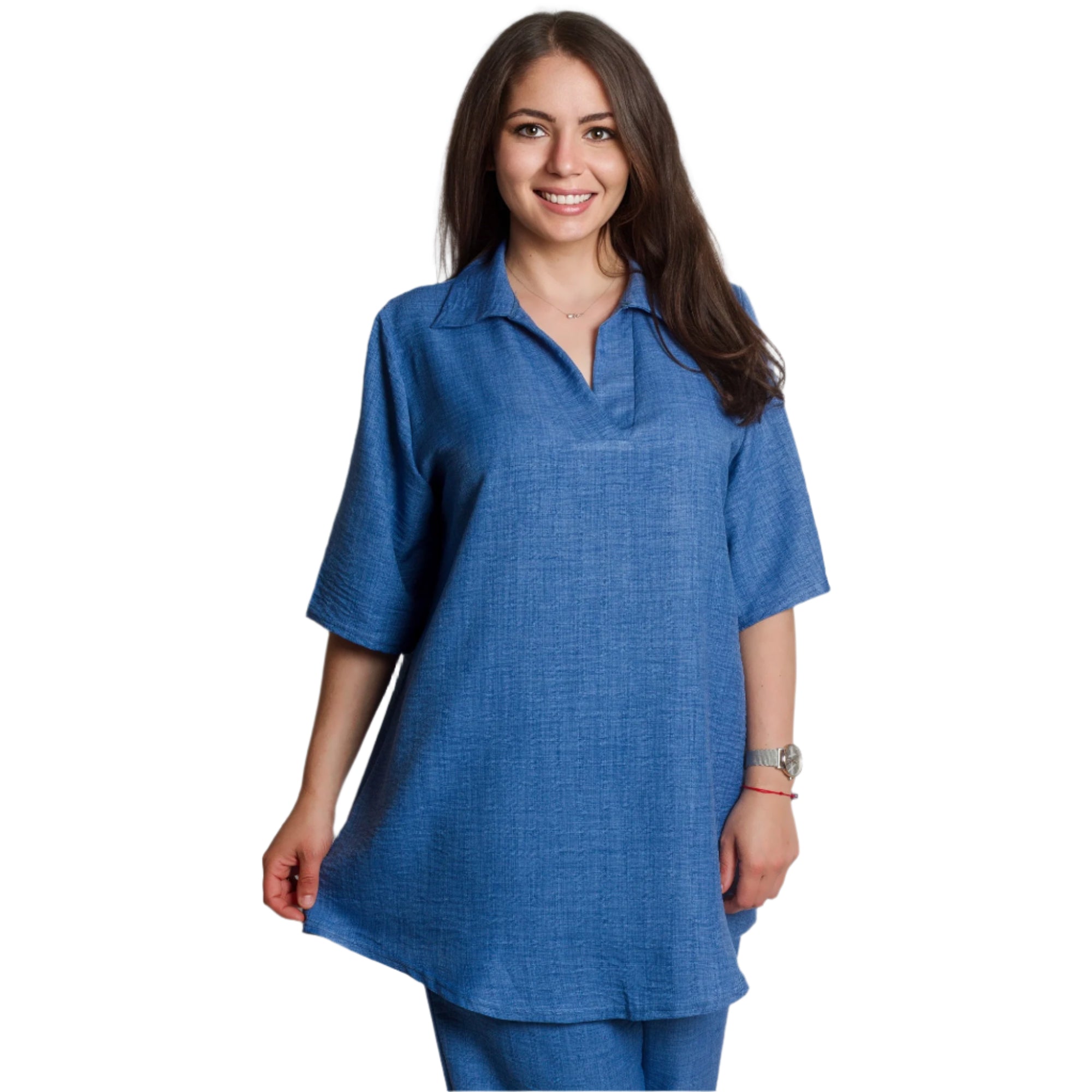 Costum albastru cu tunică și pantaloni în mărimi mari