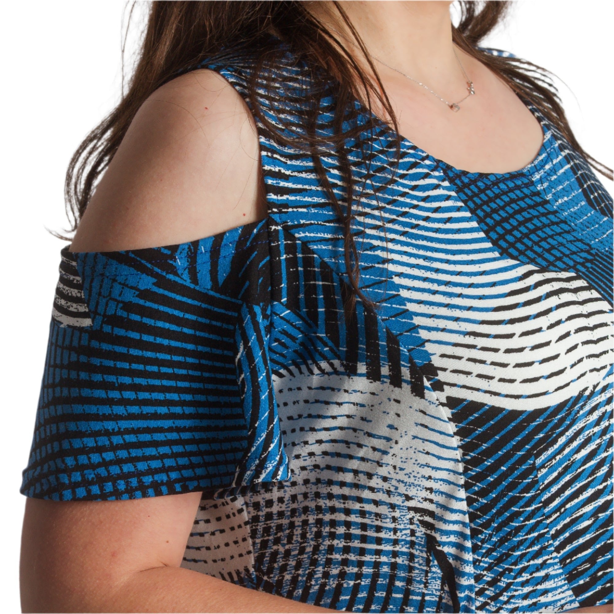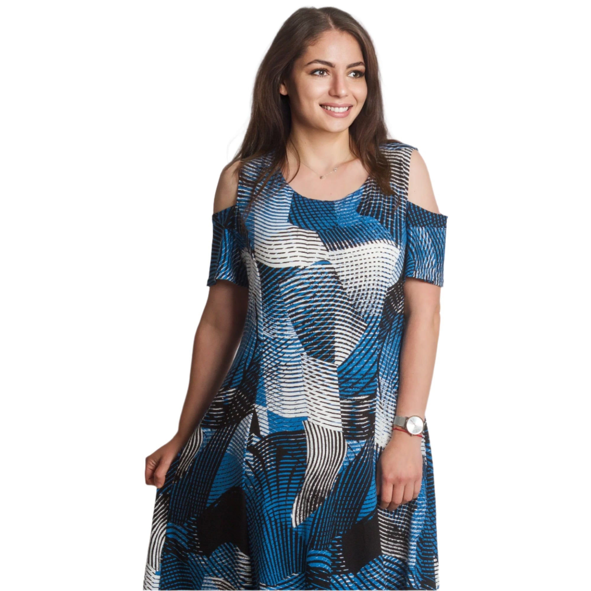 Rochie maxi elegantă, evazată, cu umerii descuiați