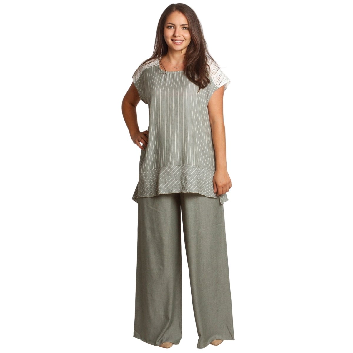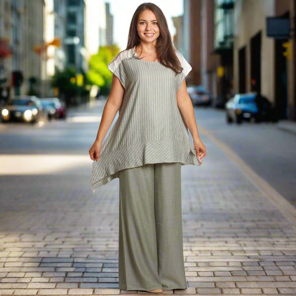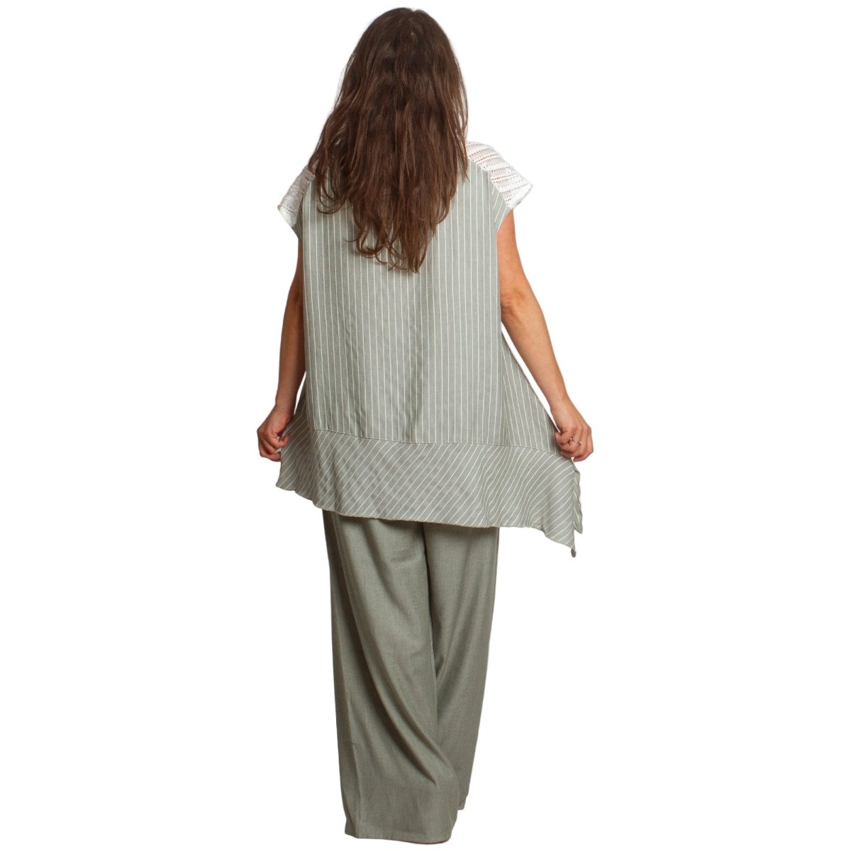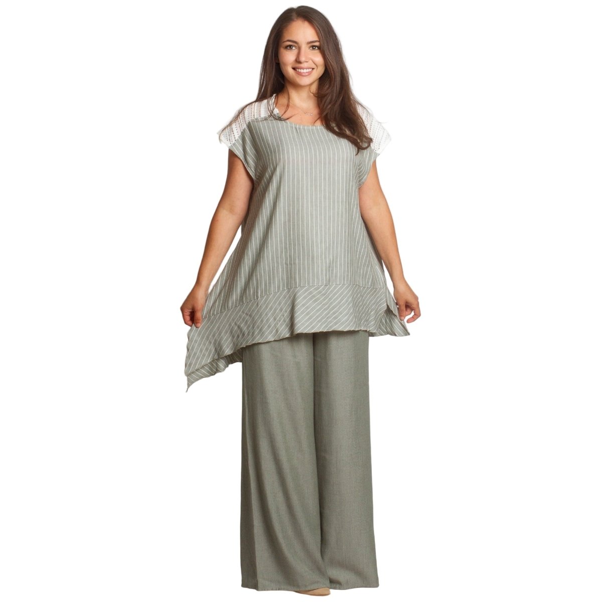 Costum de damă din in, cu croială lejeră, în mărimi maxi