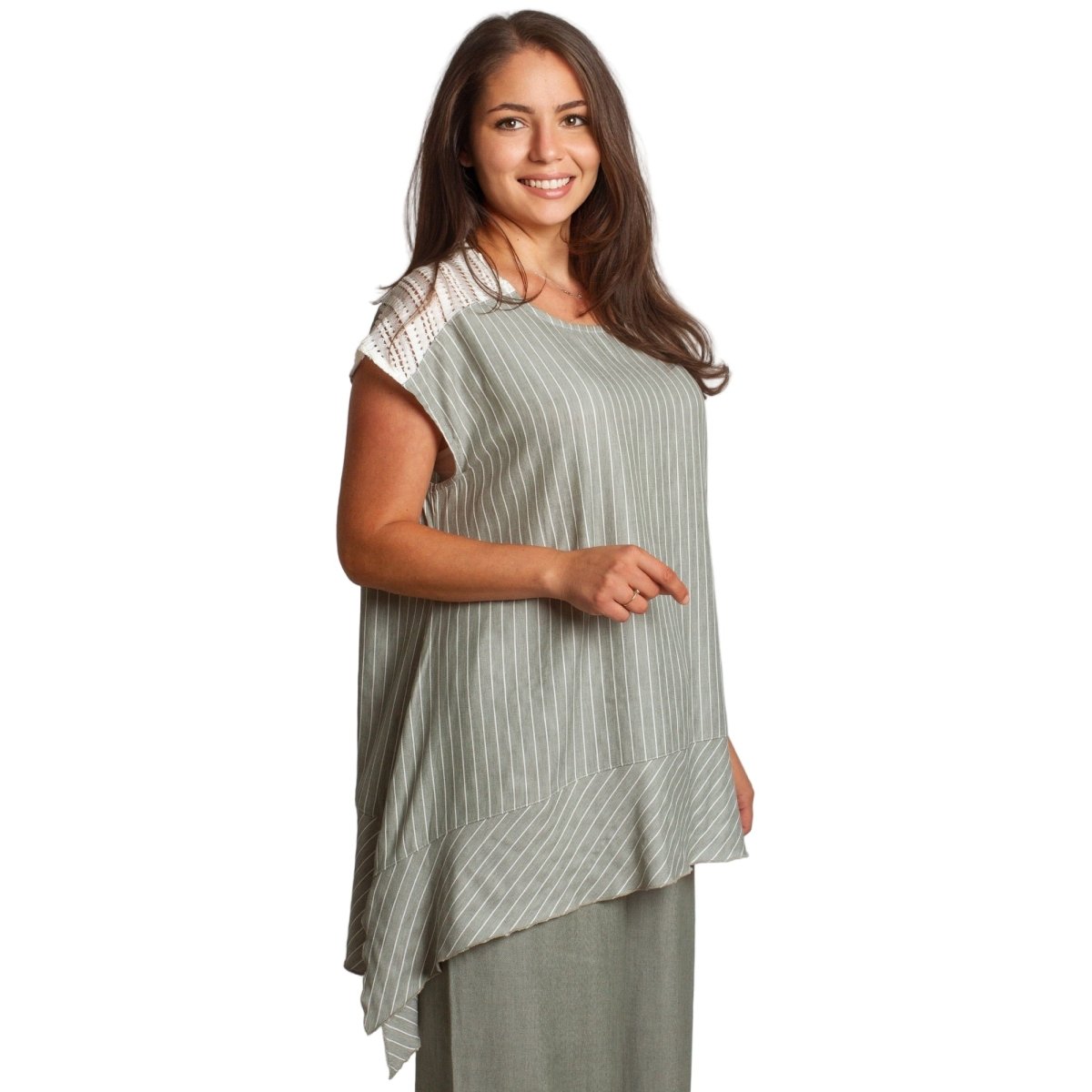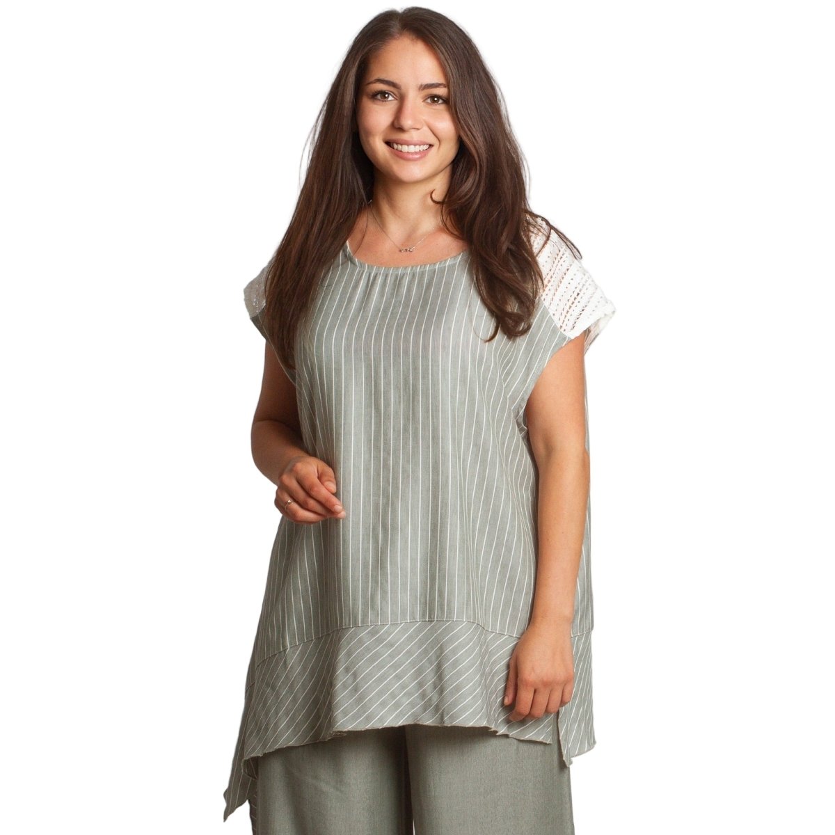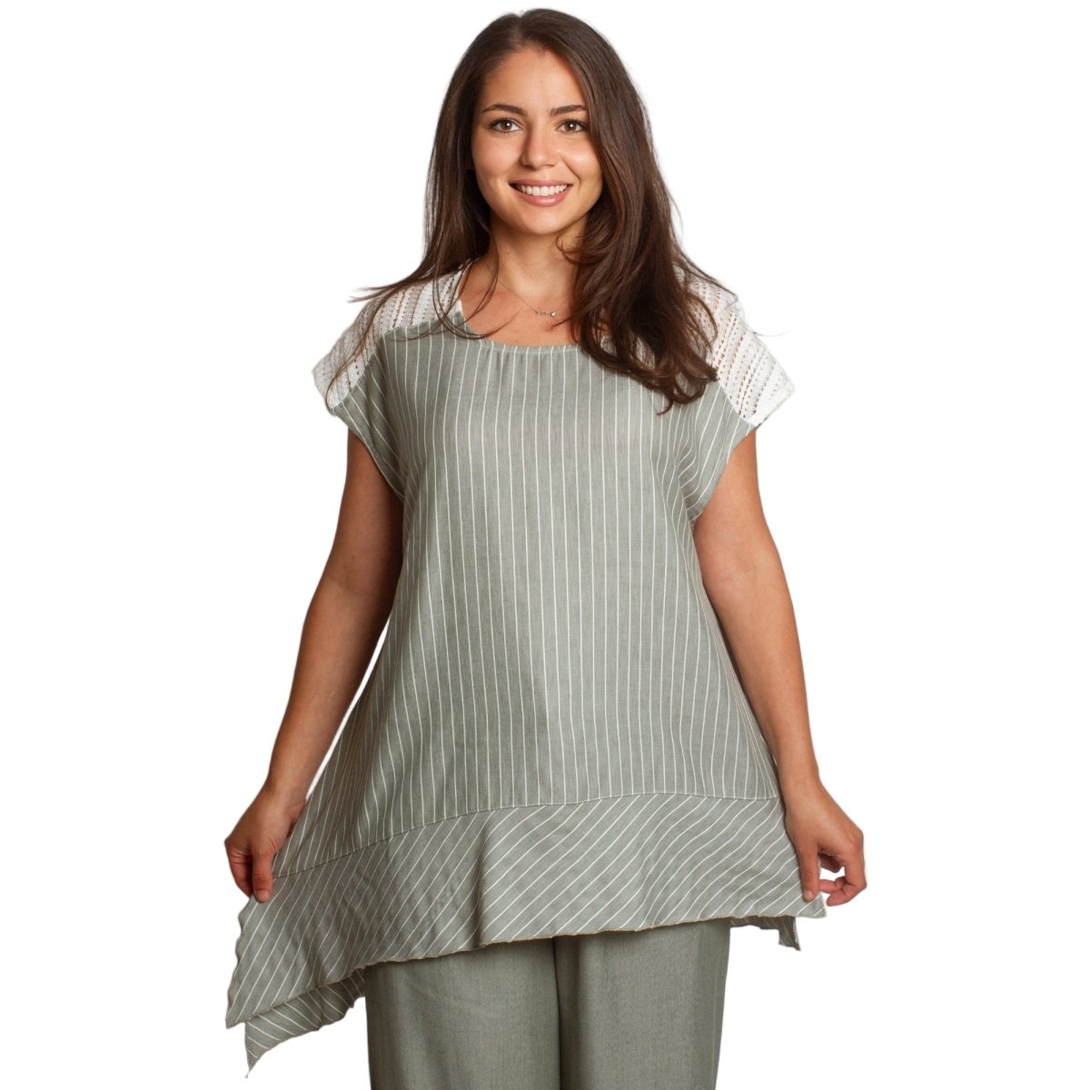Costum de damă din in, cu croială lejeră, în mărimi maxi