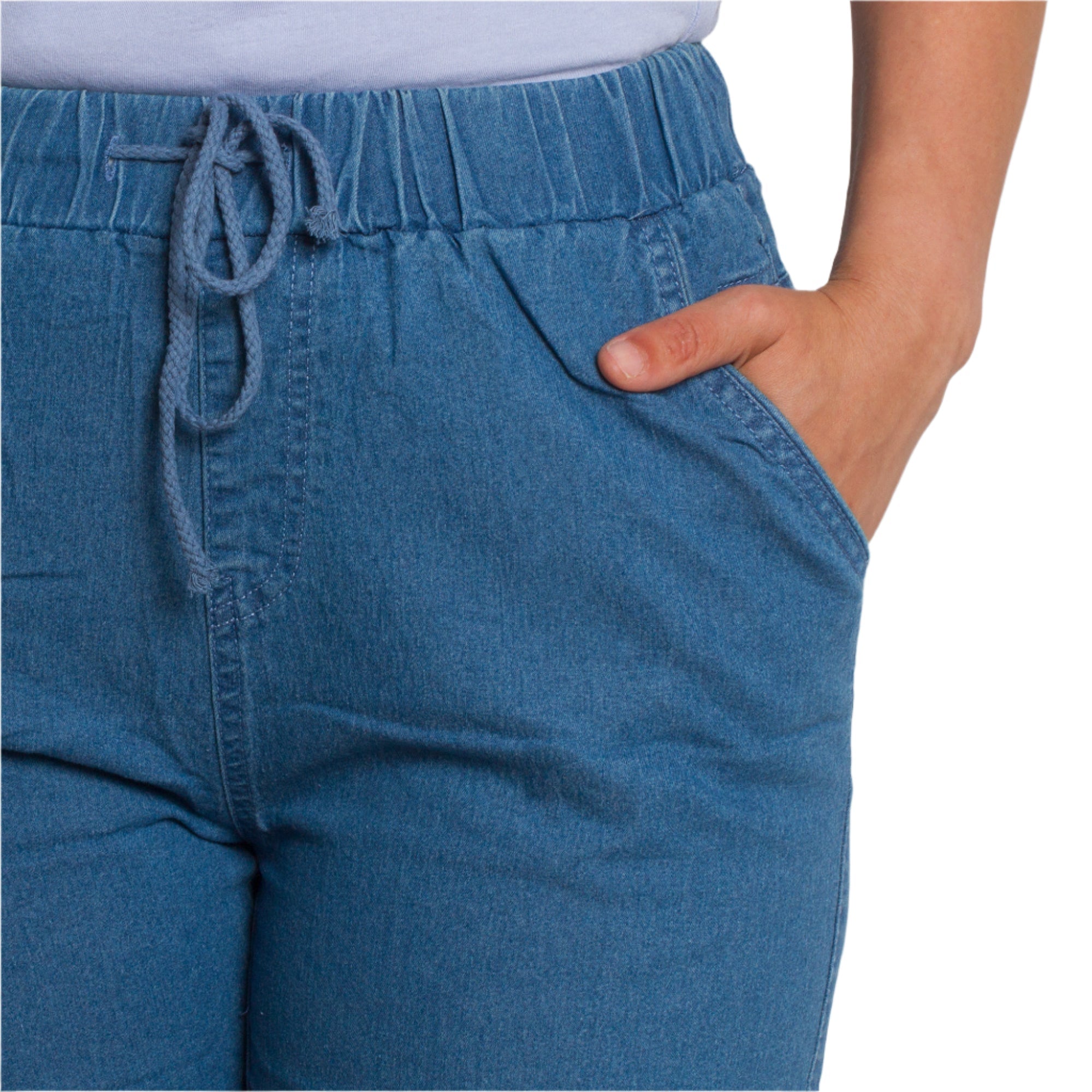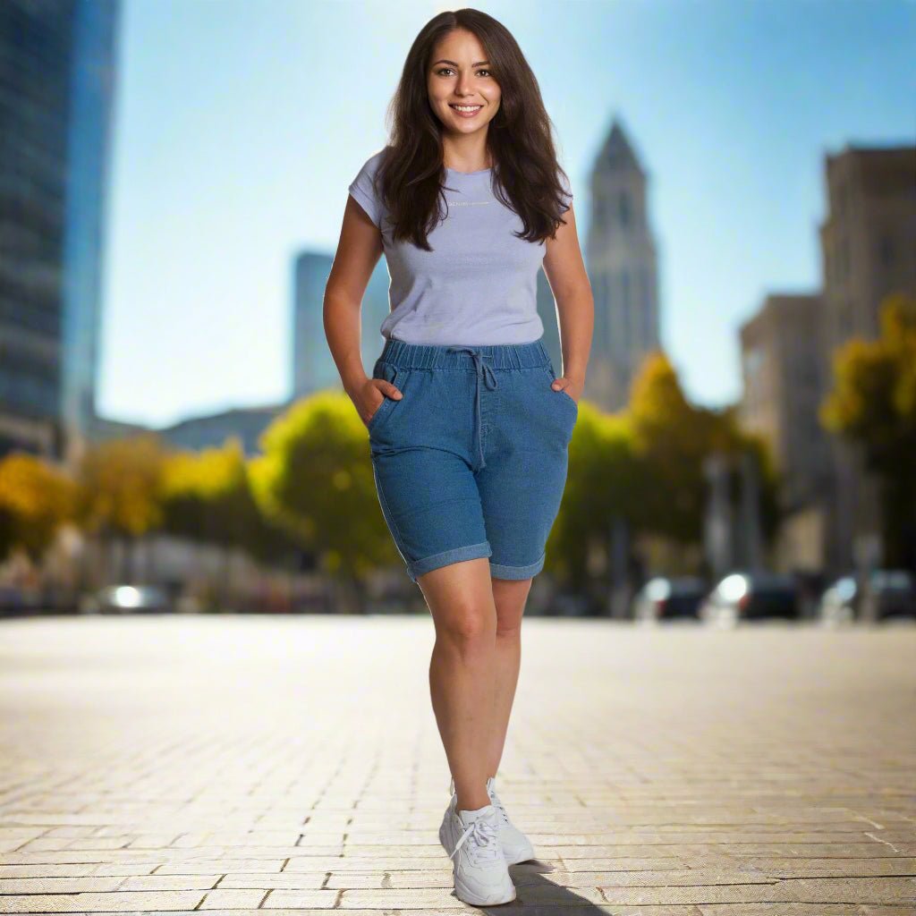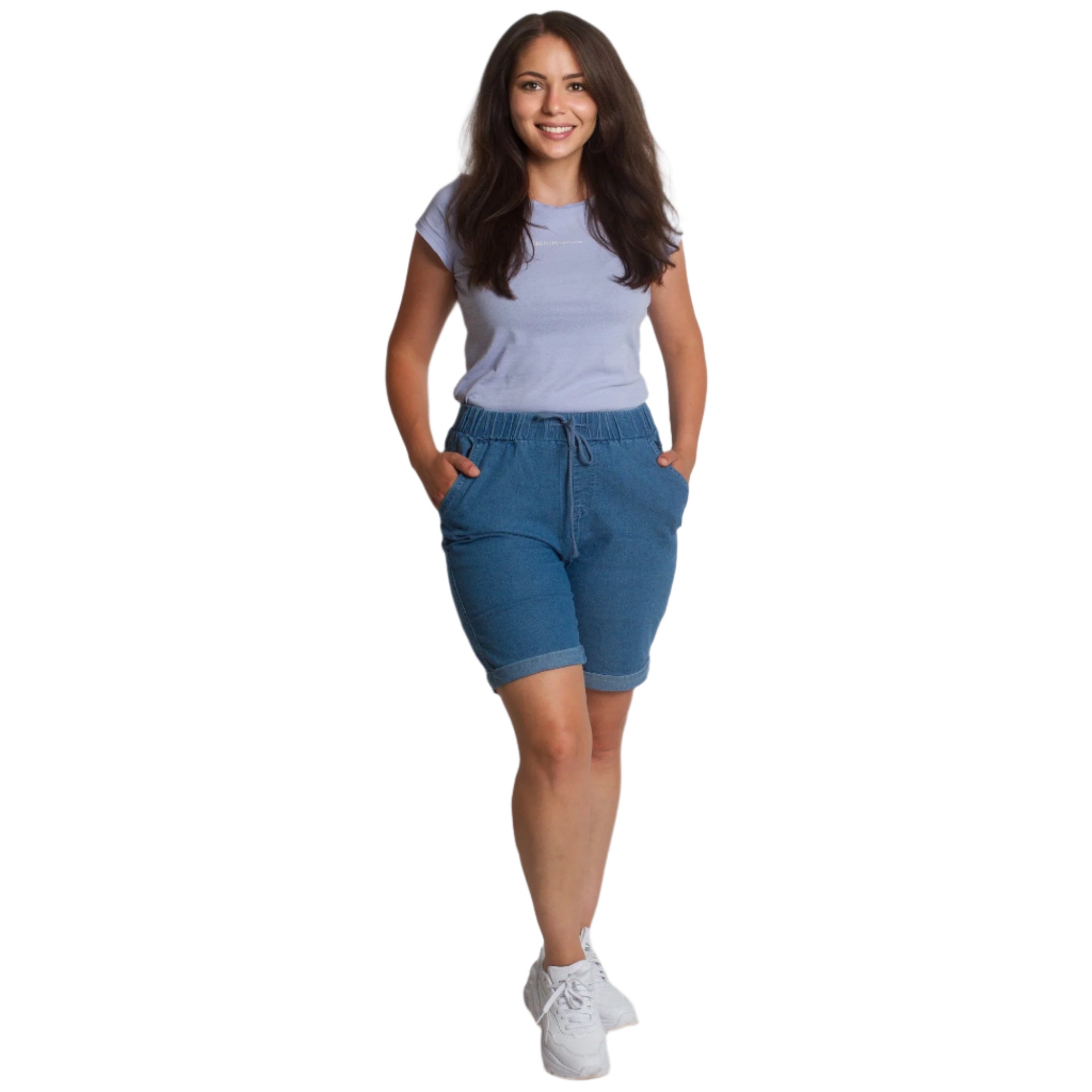 Confortabili și eleganți – acești pantaloni scurți din denim albastru, în mărimi mari, sunt alegerea perfectă pentru sezonul primăvară-vară. Fabricați din material moale și elastic, cu un conținut ridicat de bumbac, oferă confort pe tot parcursul zilei. Talia înaltă cu elastic și șnururi asigură o potrivire perfectă, în timp ce buzunarele practice adaugă funcționalitate. Croiul lejer creează o senzație de lejeritate și libertate de mișcare – ideali pentru plimbări, călătorii sau activități de zi cu zi.